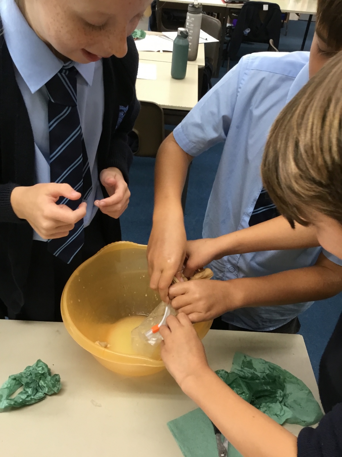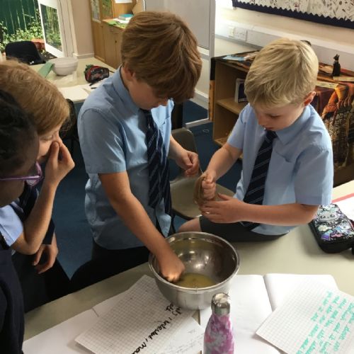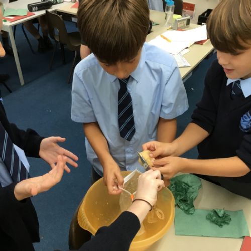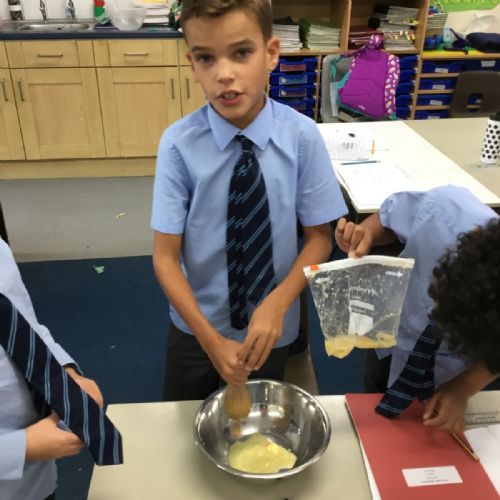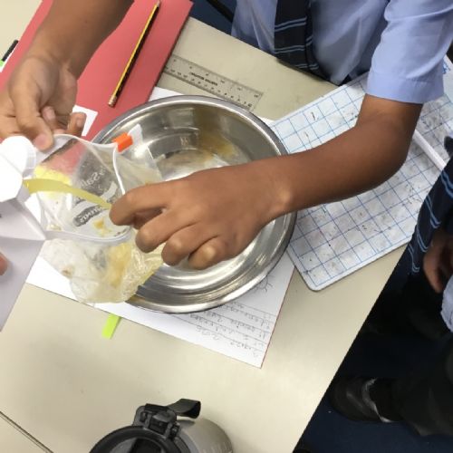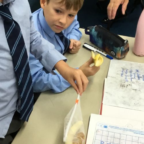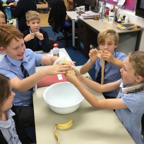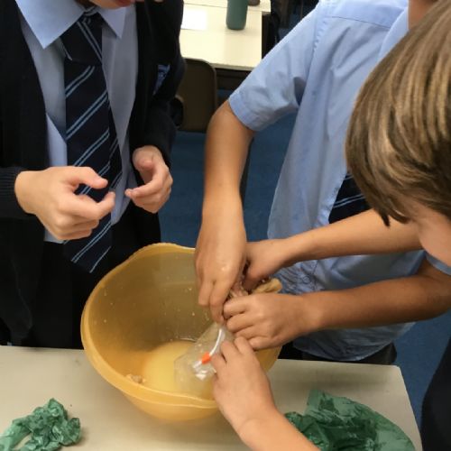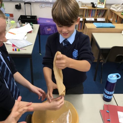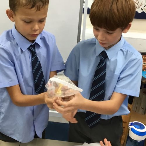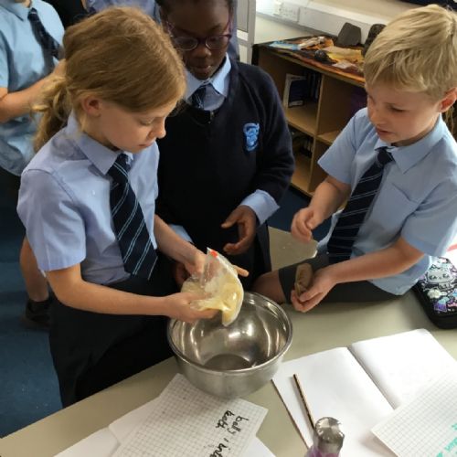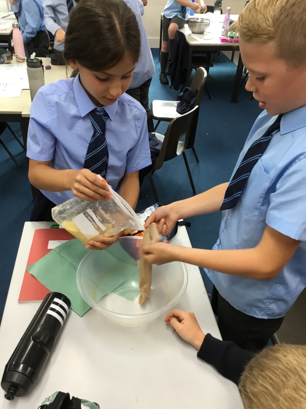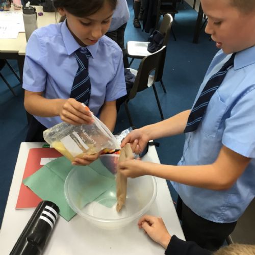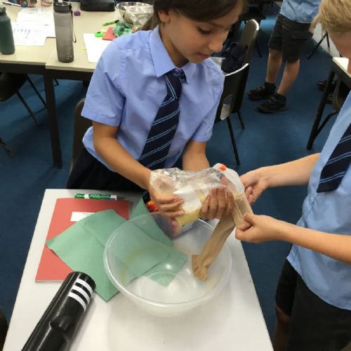 Today we created our own model of the digestive system. We used a plastic bag for our stomach, tights for the intestines and orange juice for stomach acid! We were able to see what happens to our food from the point of being eaten all the way through to when we get rid of it as poo!