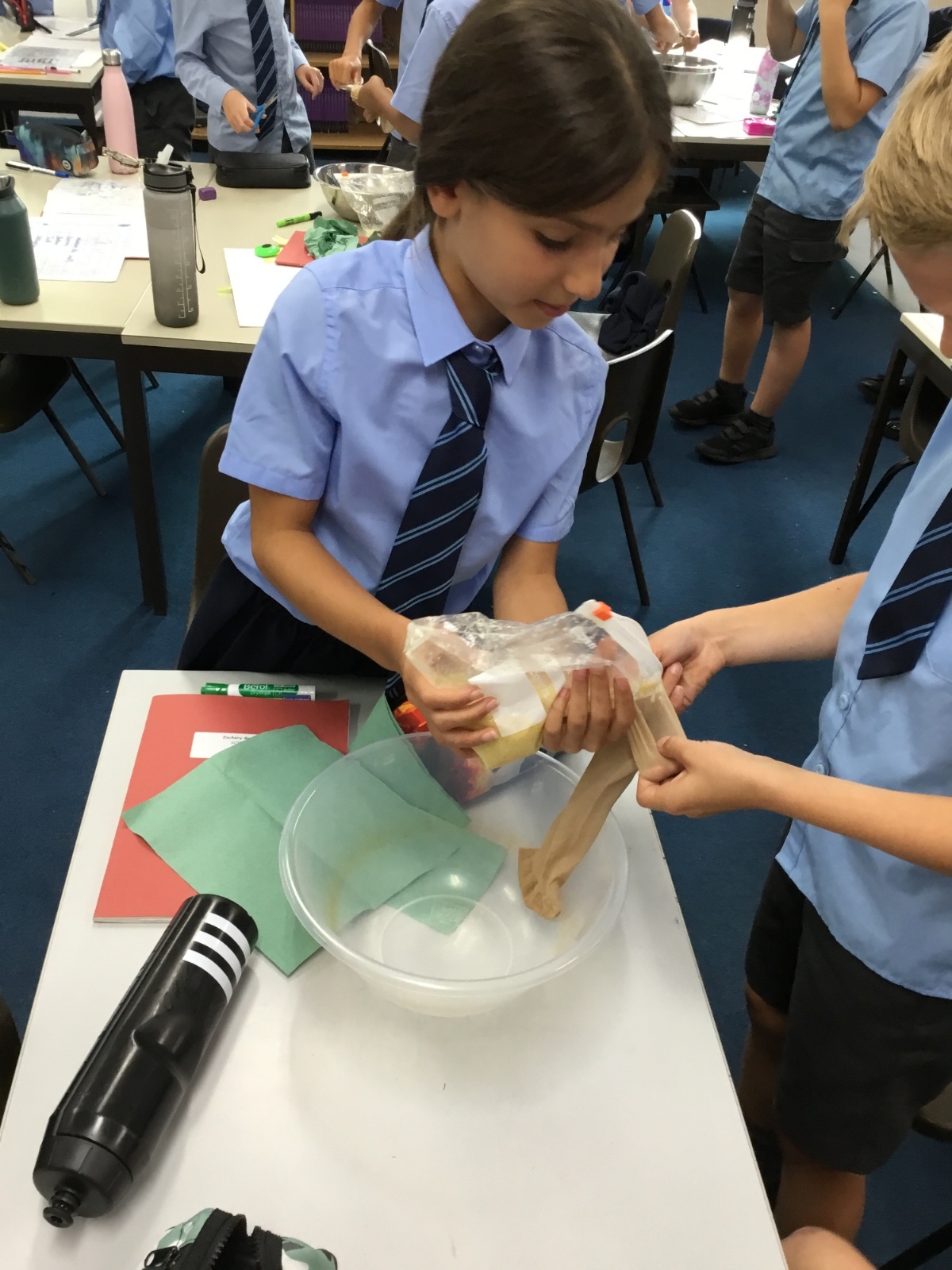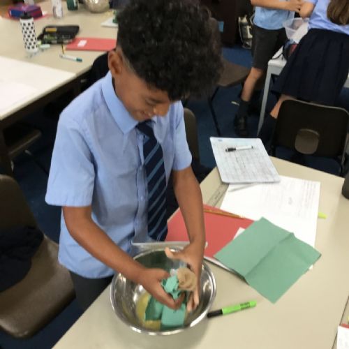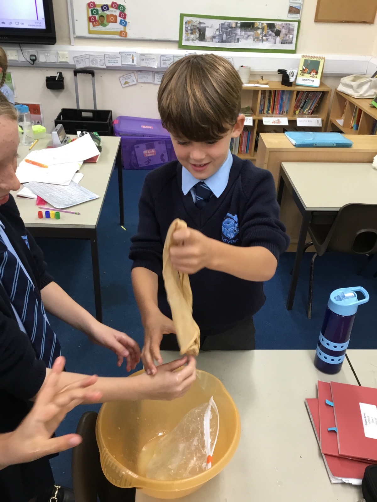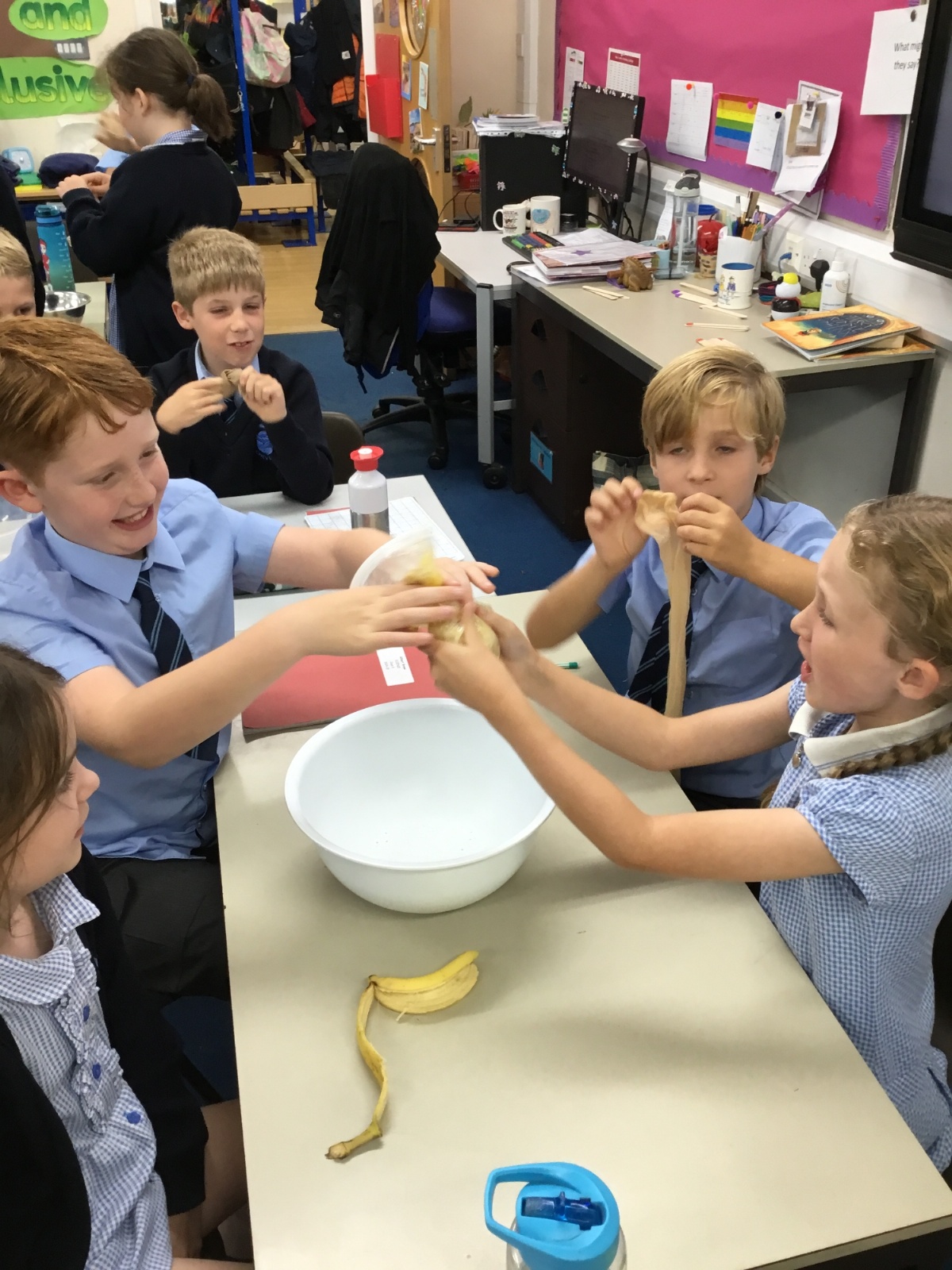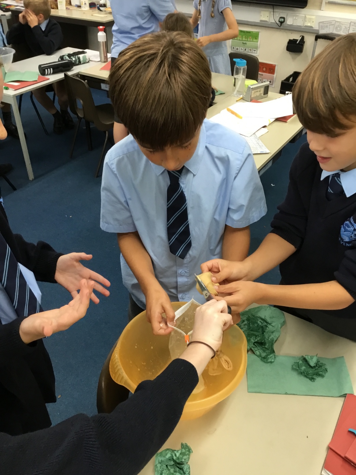 Today we created our own model of the digestive system. We used a plastic bag for our stomach, tights for the intestines and orange juice for stomach acid! We were able to see what happens to our food from the point of being eaten all the way through to when we get rid of it as poo!