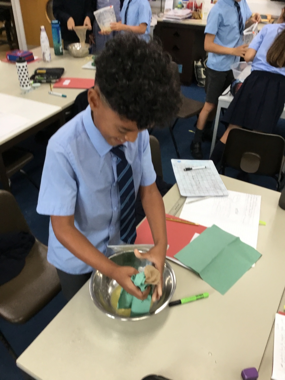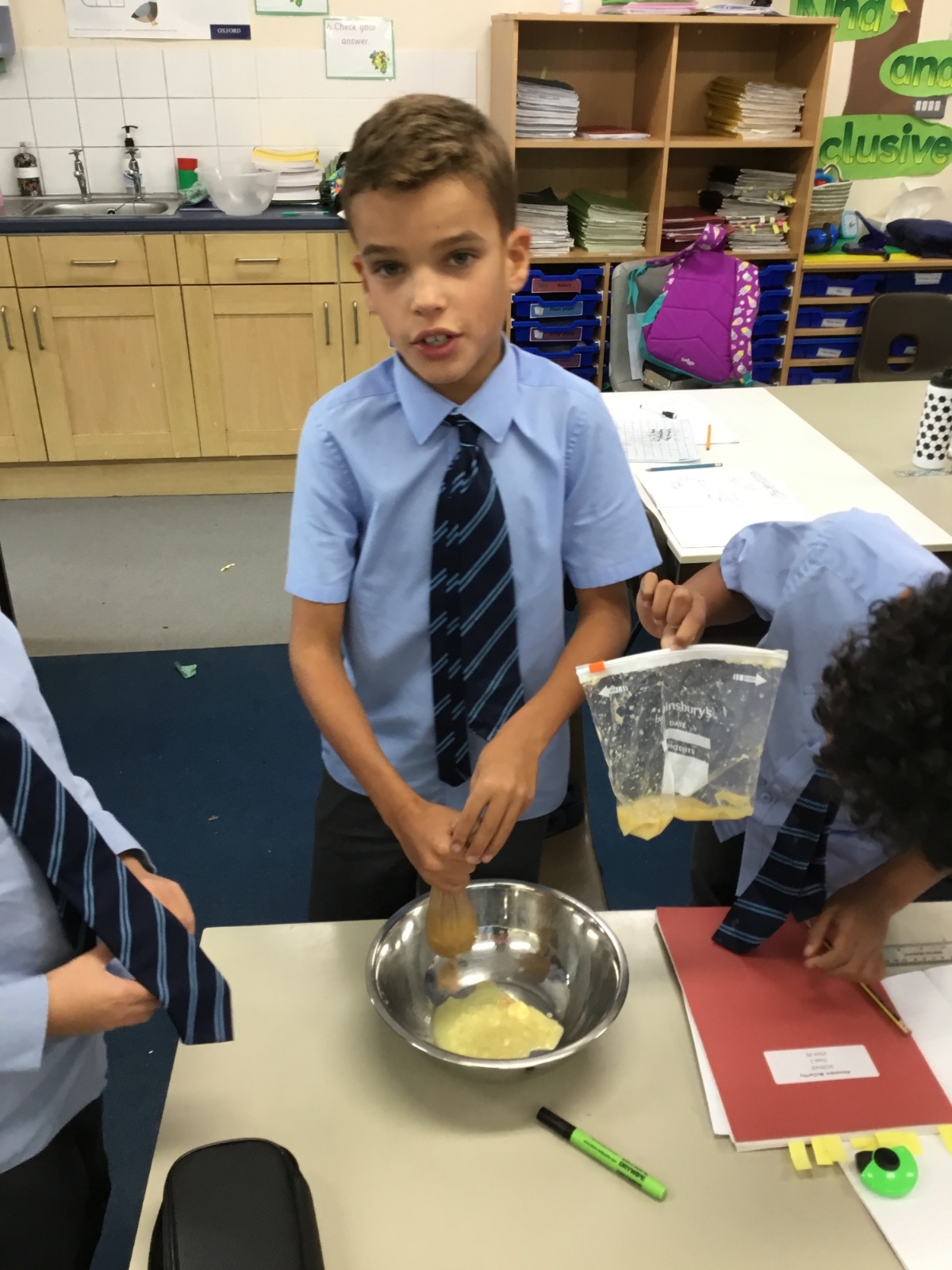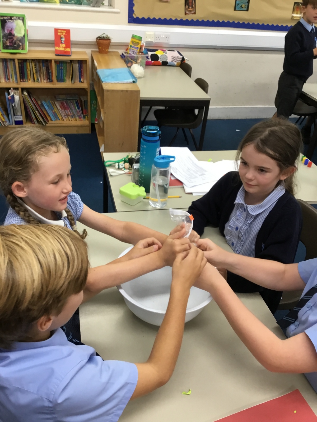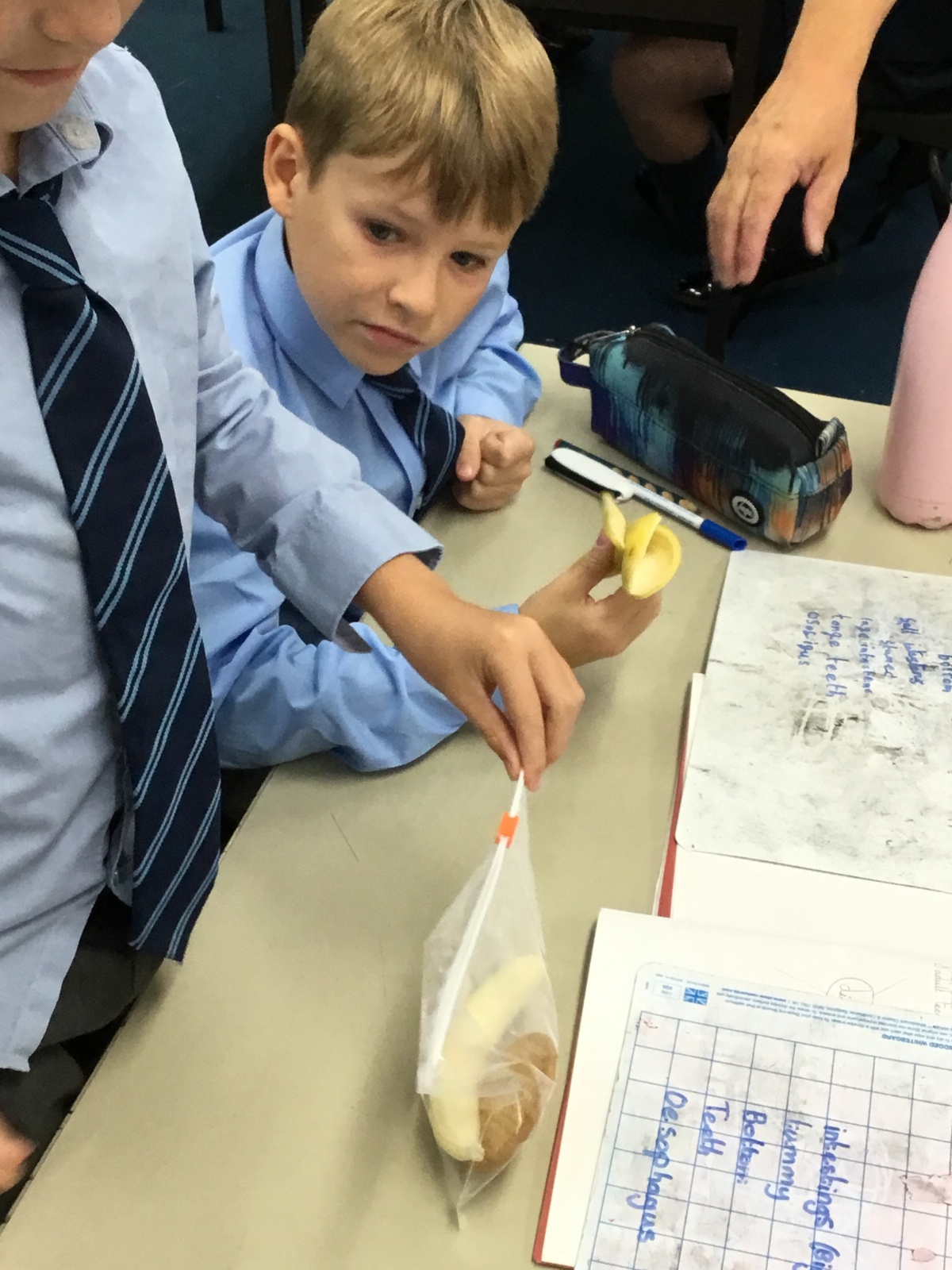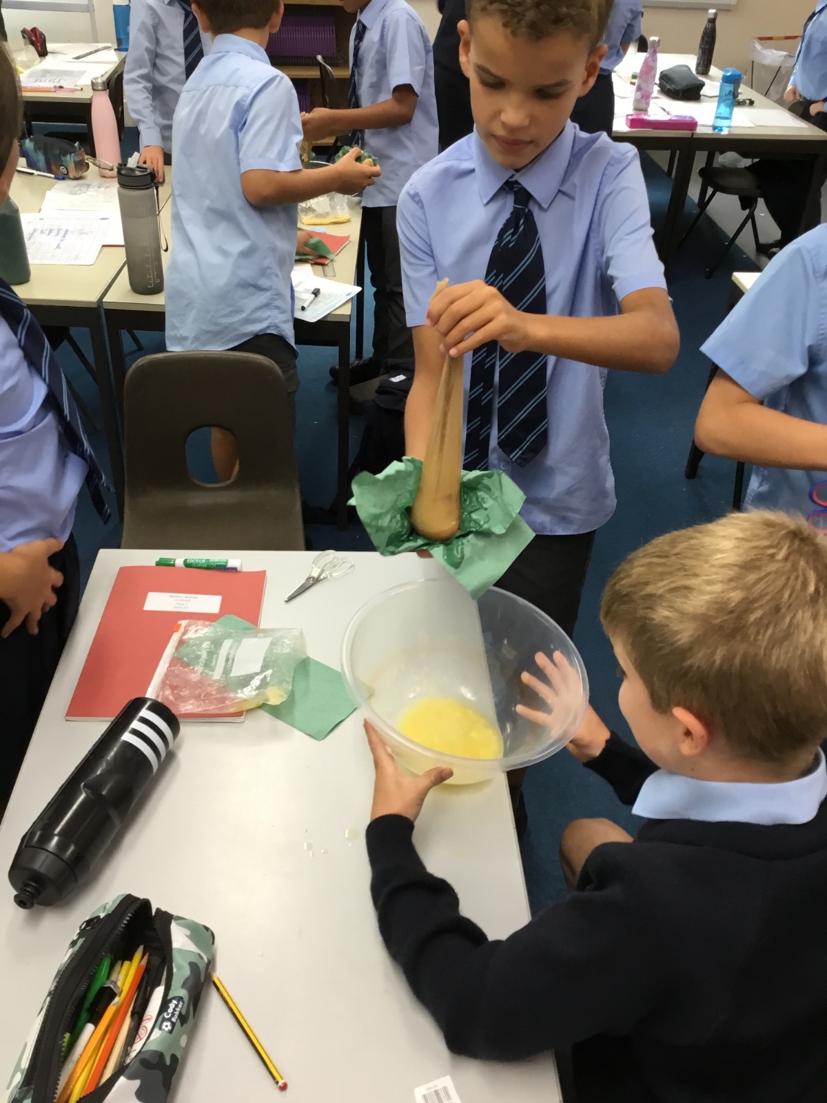 Today we created our own model of the digestive system. We used a plastic bag for our stomach, tights for the intestines and orange juice for stomach acid! We were able to see what happens to our food from the point of being eaten all the way through to when we get rid of it as poo!