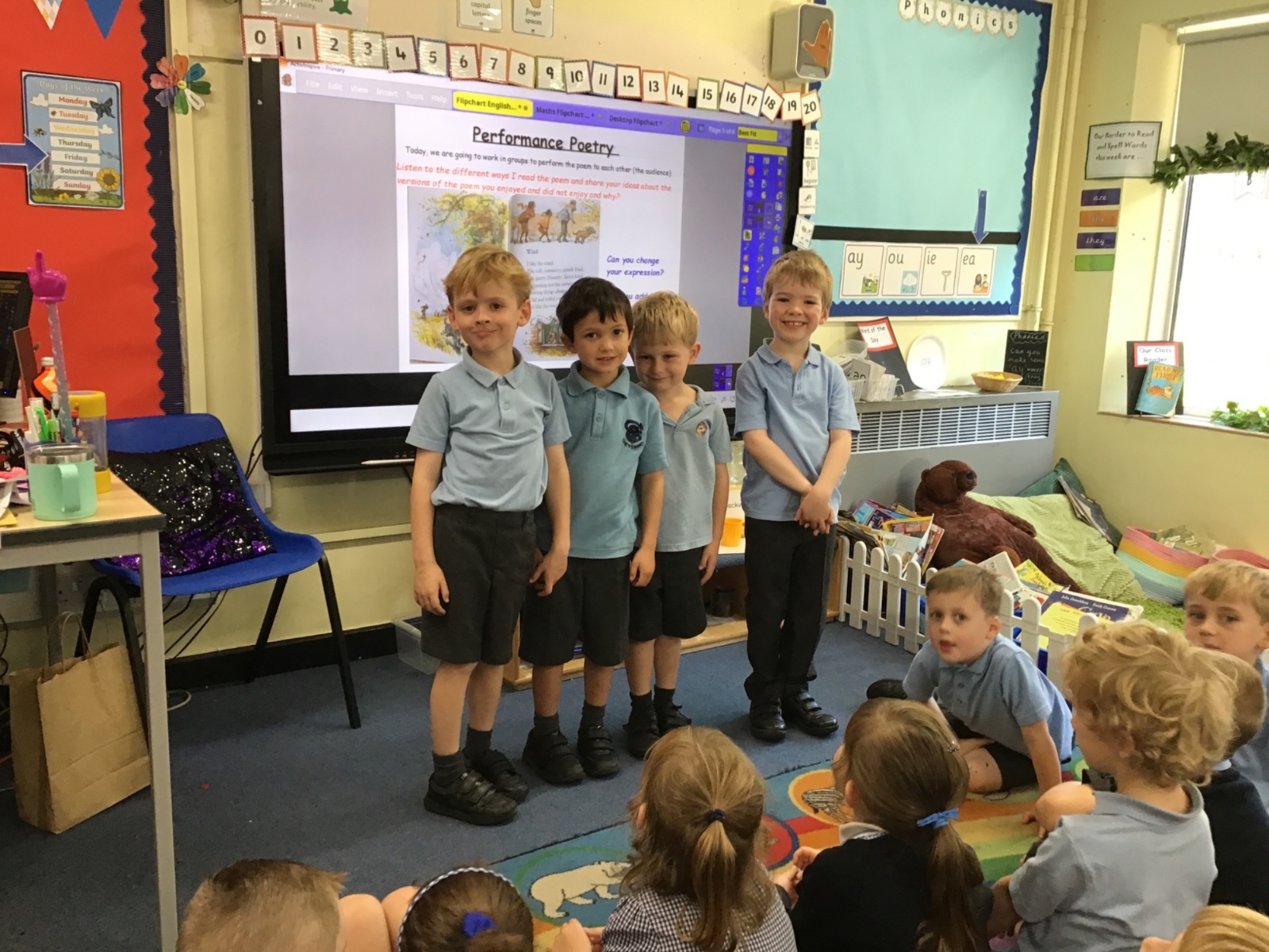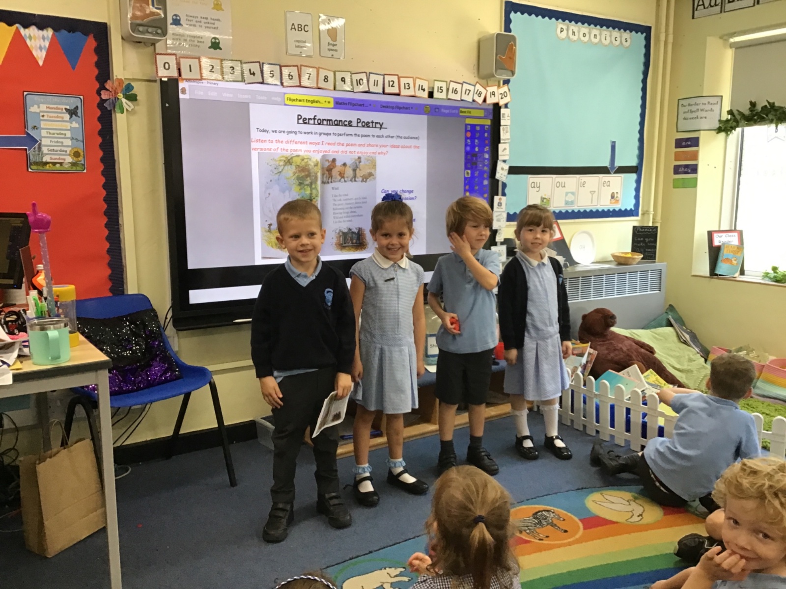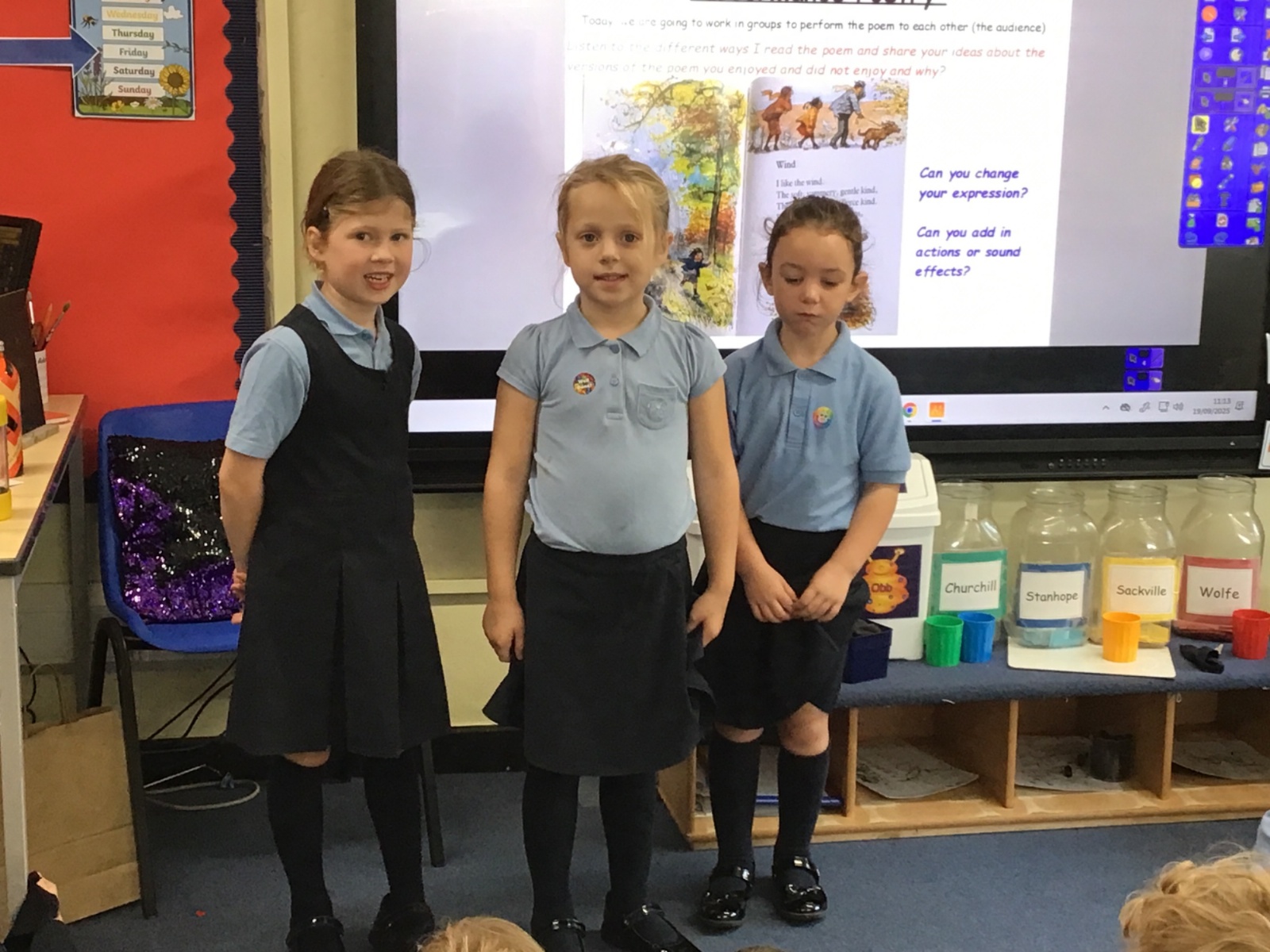 We had so much fun exploring the blustery poem 'Wind' by Shirley Hughes. We made kites and flew them outside! In groups, we practised performing the poem in front of a very familiar audience!