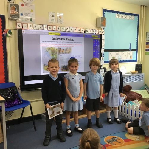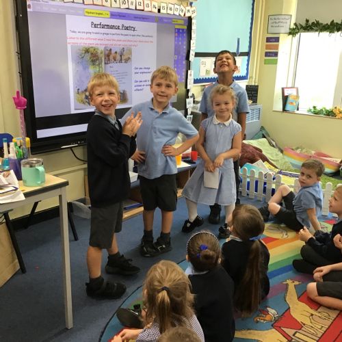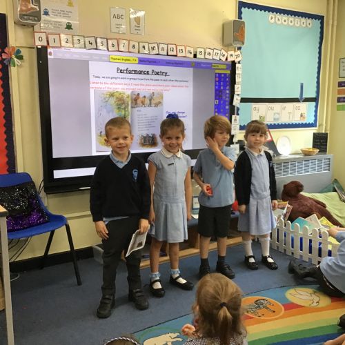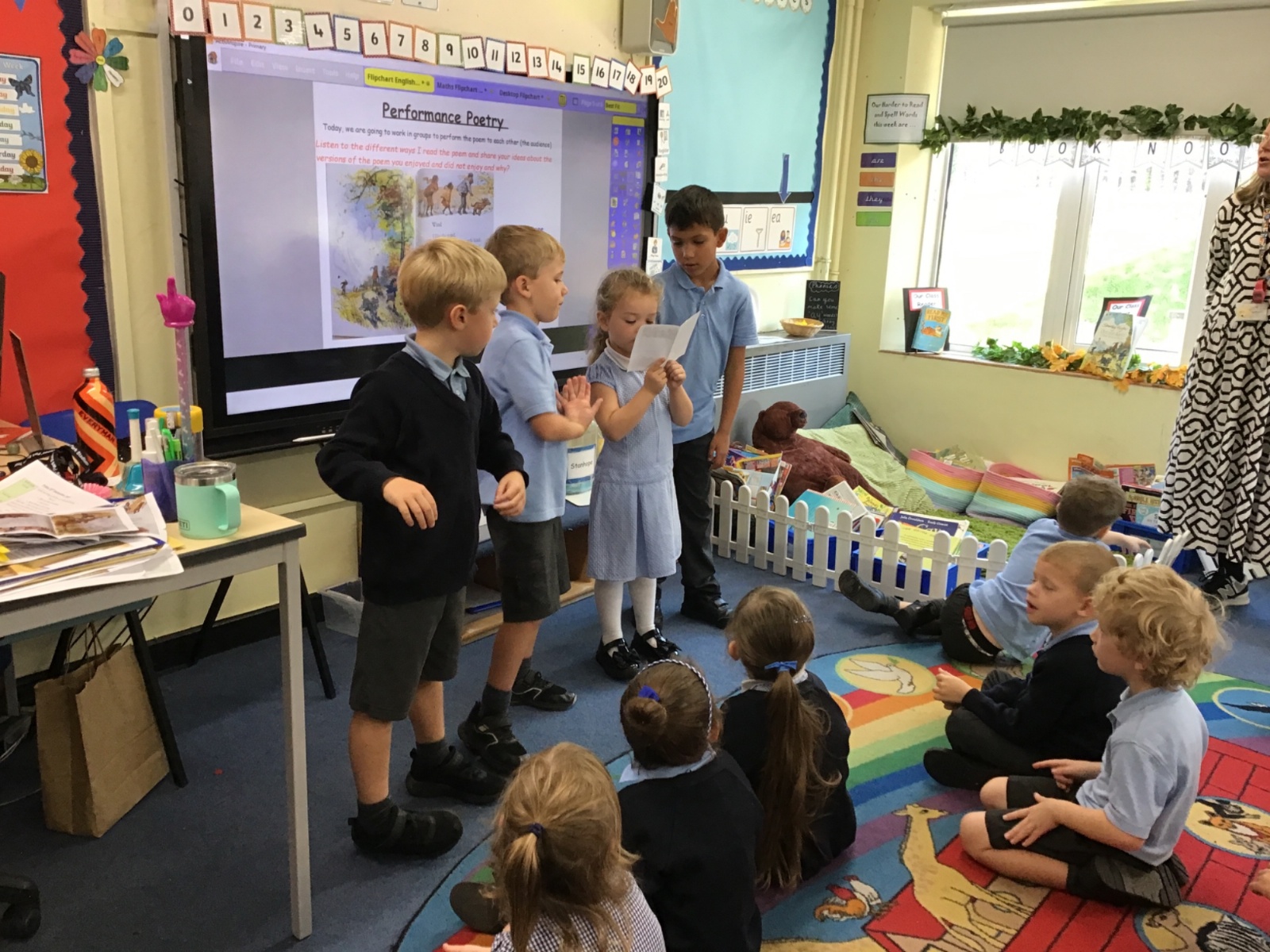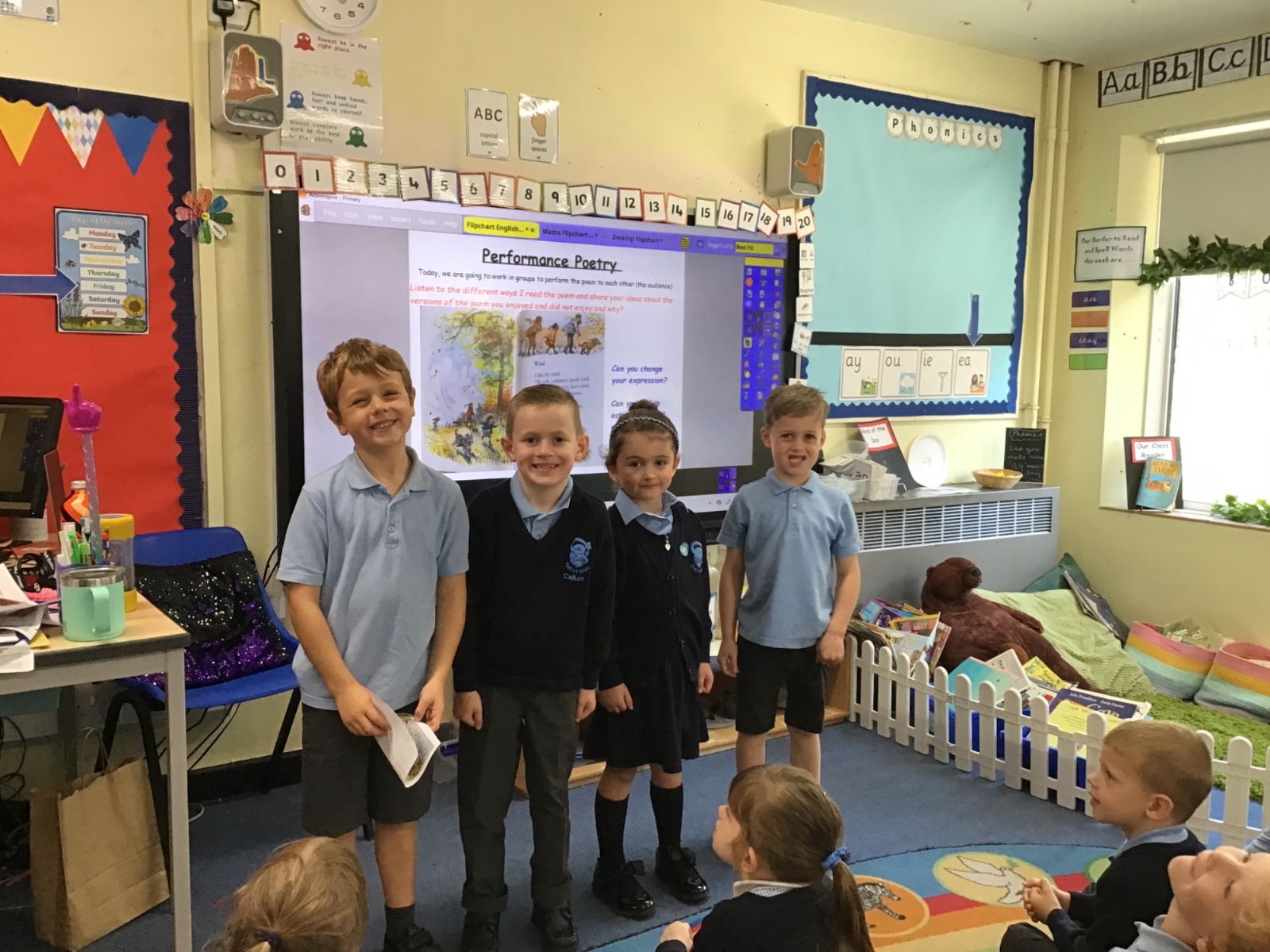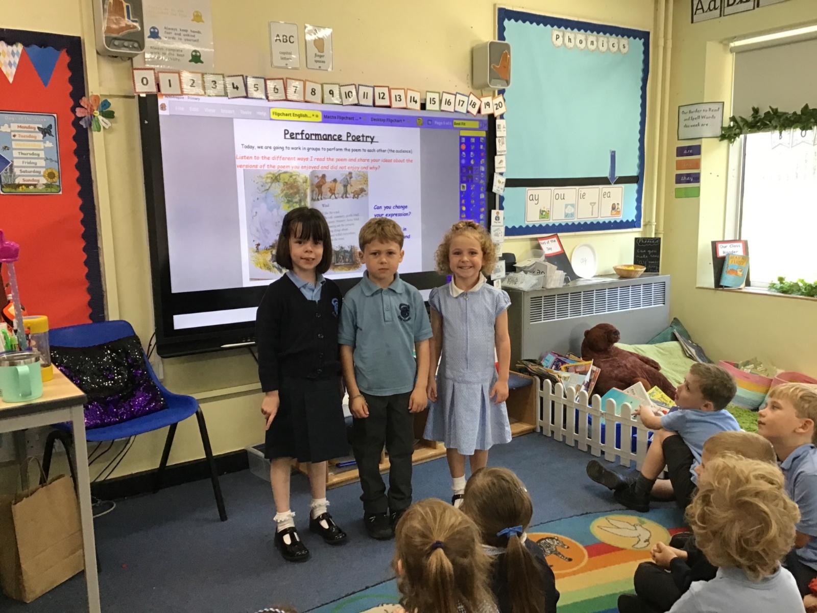 We had so much fun exploring the blustery poem 'Wind' by Shirley Hughes. We made kites and flew them outside! In groups, we practised performing the poem in front of a very familiar audience!