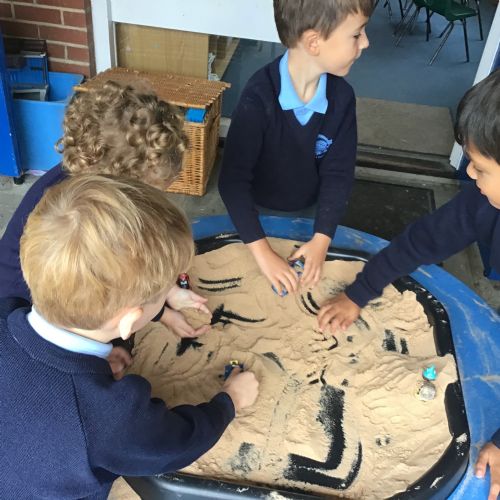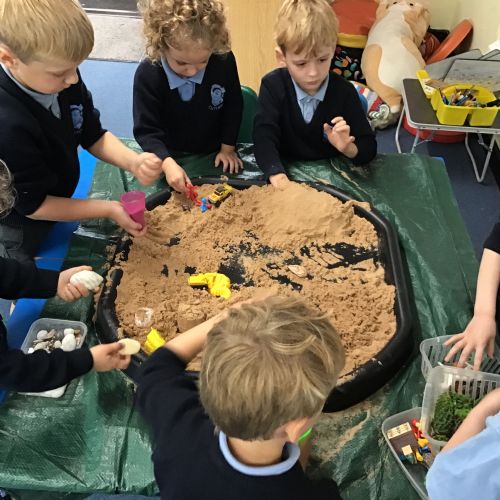 We loved listening and responding to three more exciting poems found in the wonderful poetry book 'Out and About' by Shirley Hughes. We used our senses when playing in sand, water and mud and created word banks which we used to inspire our own poems.