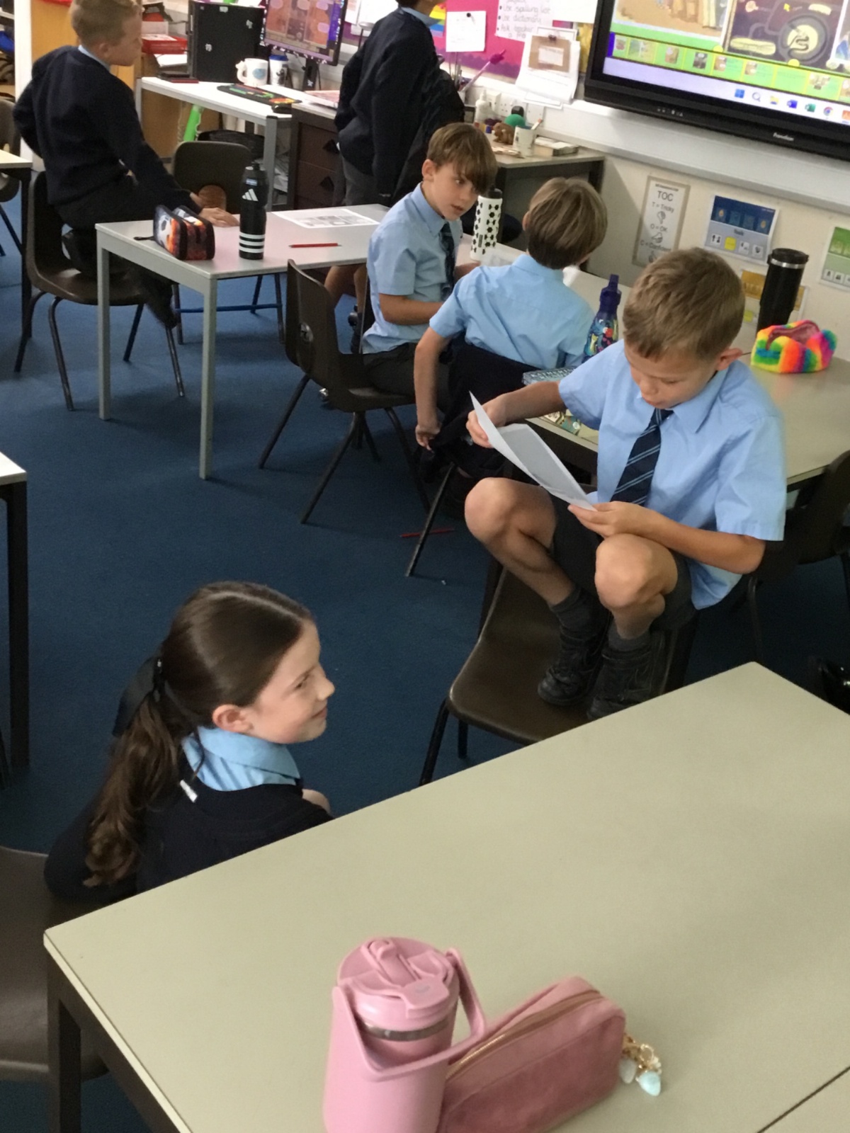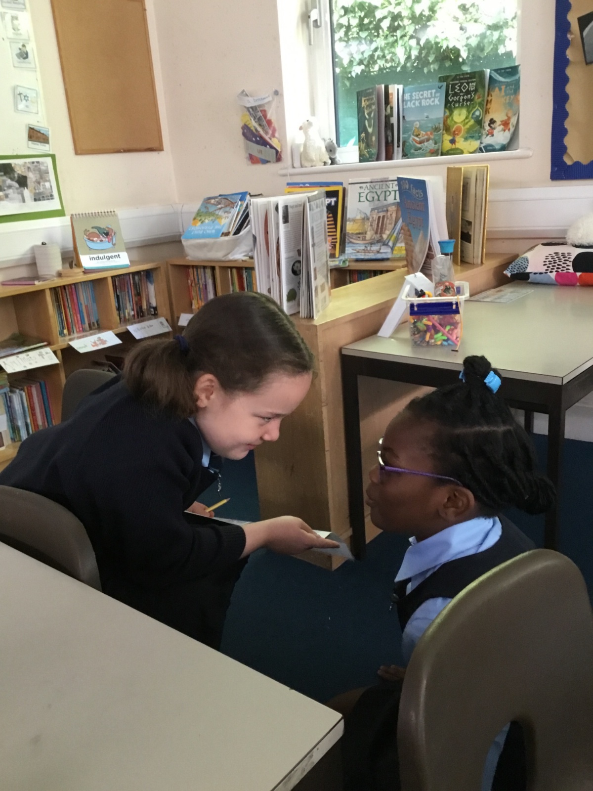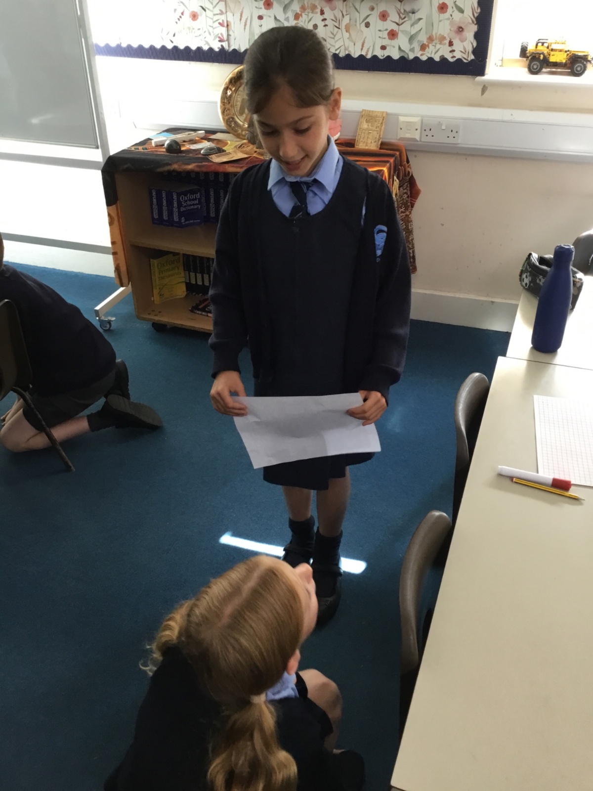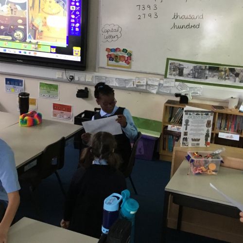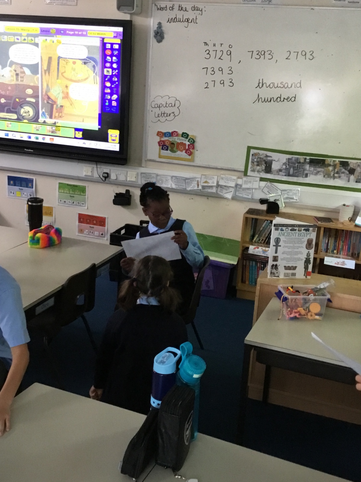 Today we have used drama and role play to think about what a character is like. We had a go at the conversation between Marcy and Thoth, adding in our own ideas for what Marcy might say and also thinking about how Thoth would say his dialogue in the book. After the dialogue, we moved on to think about facial expressions and body movement as forms of communication too.