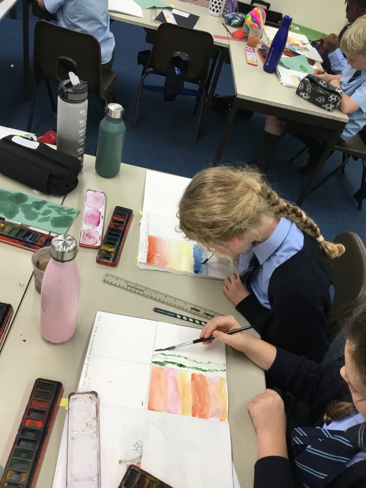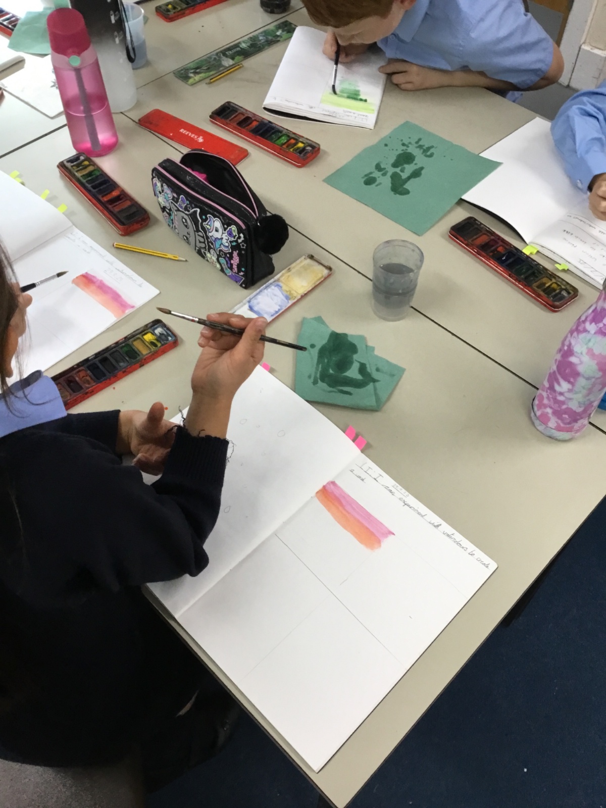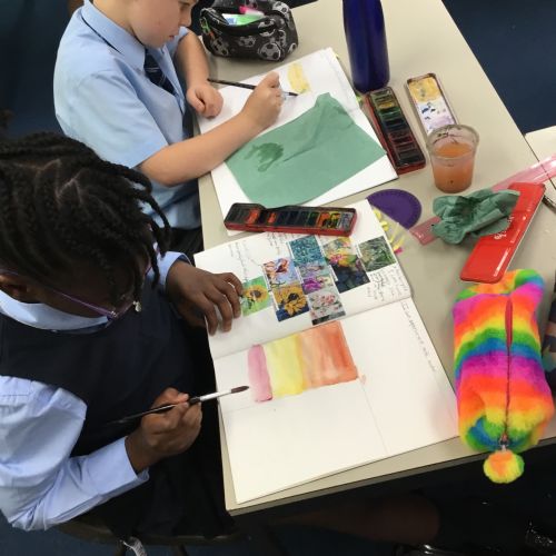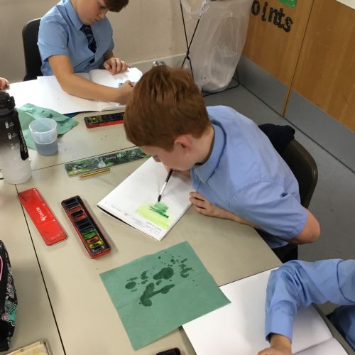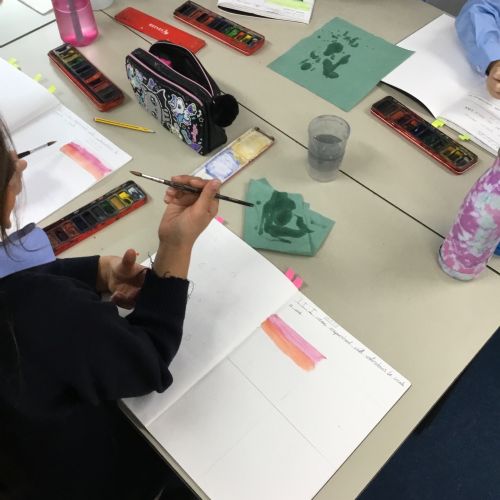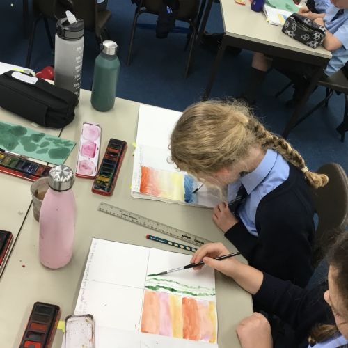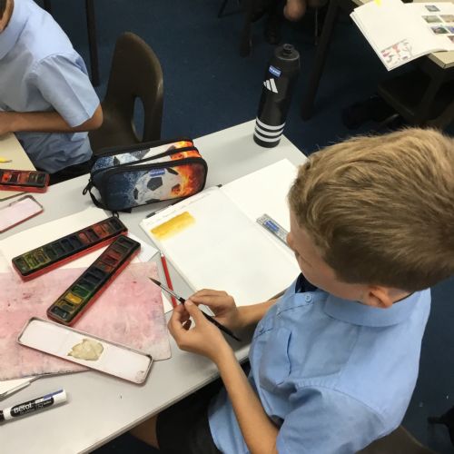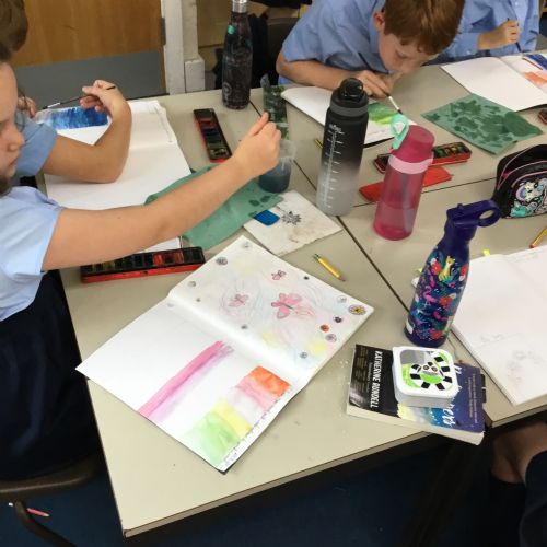 We created our own watercolour washes. We experimented with blending complementary colours and also using different amounts of water to create different shades. We will use this new-found knowledge later this week to create our own landscapes inspired by the work of Augustus Osborne Lamplough.