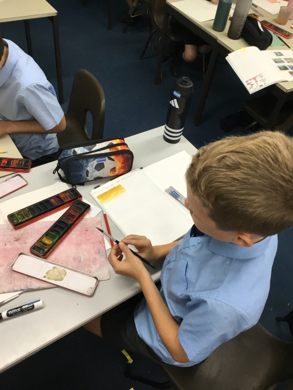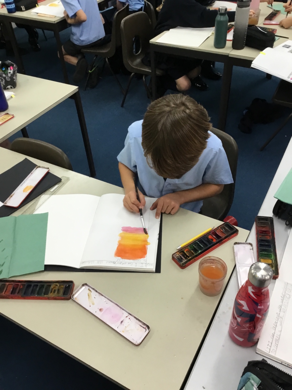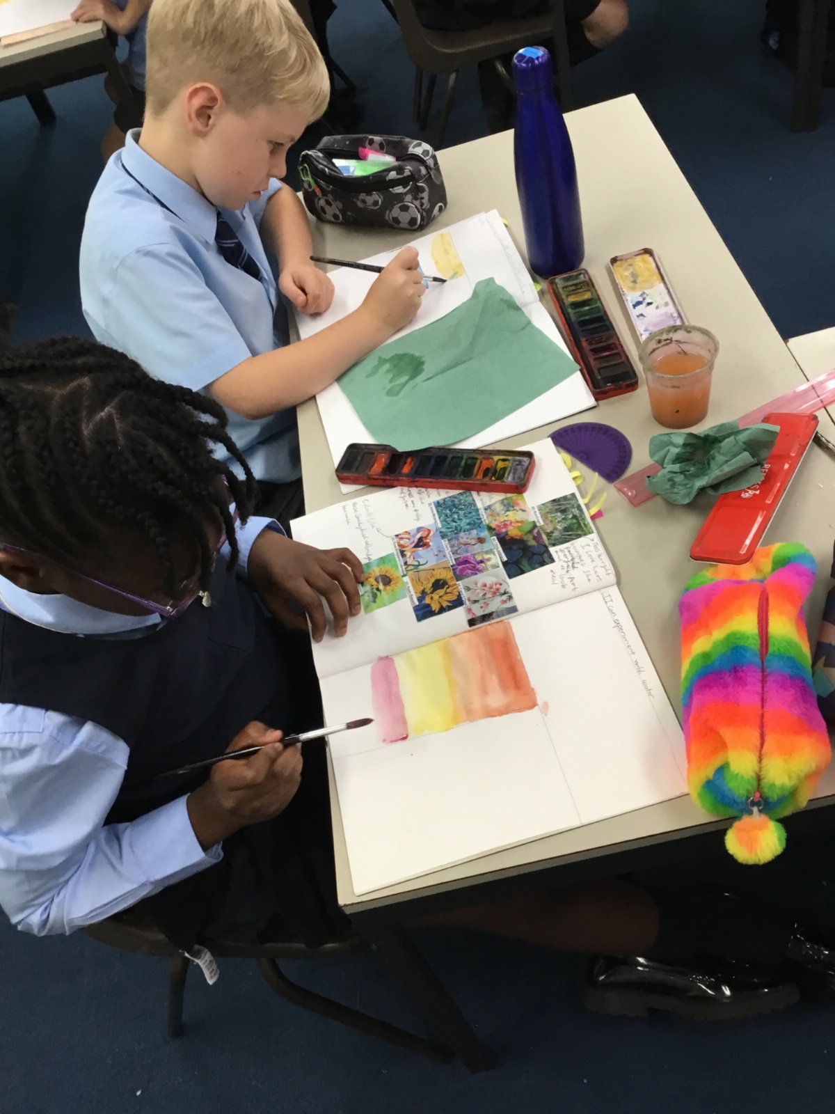 We created our own watercolour washes. We experimented with blending complementary colours and also using different amounts of water to create different shades. We will use this new-found knowledge later this week to create our own landscapes inspired by the work of Augustus Osborne Lamplough.