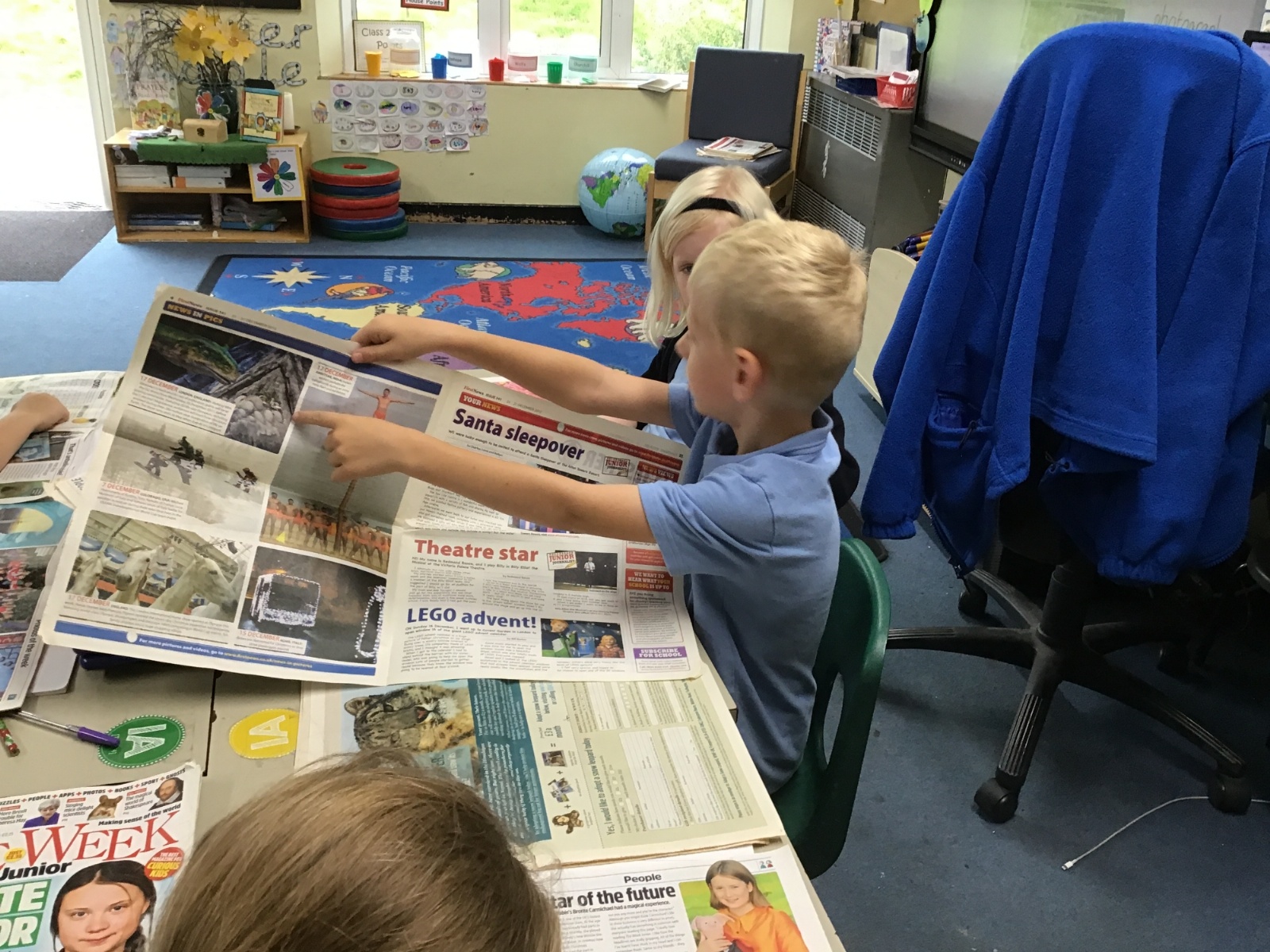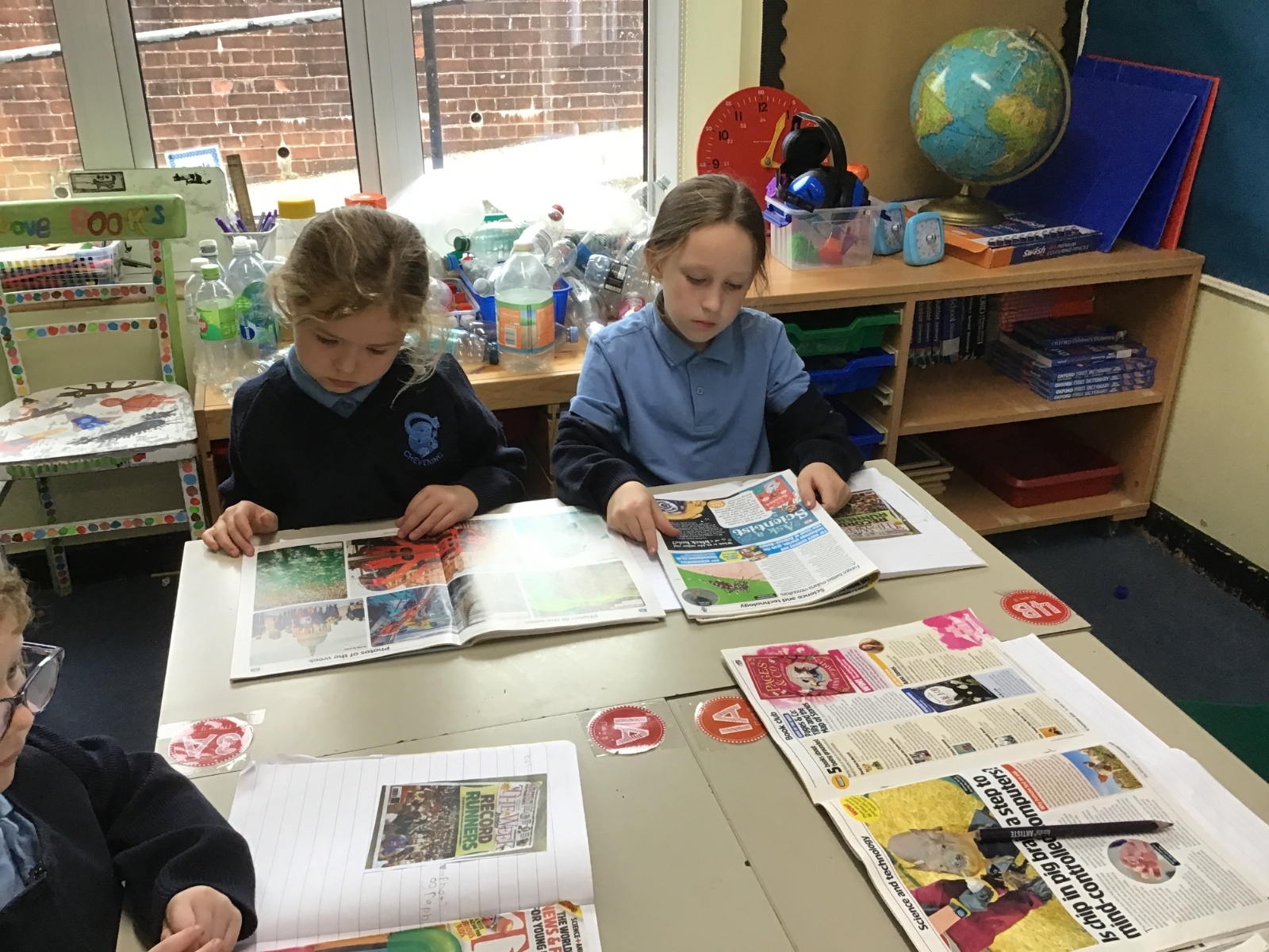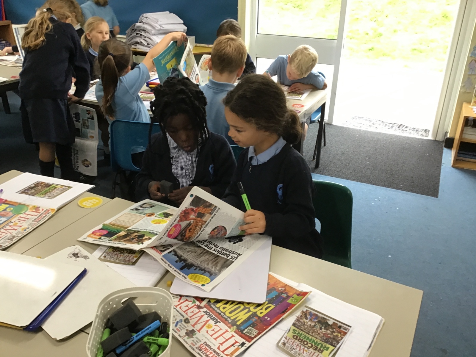 Before embarking on the challenge of writing news reports, recounting Claude's heroic adventure in the city (we're giving no spoilers!), Class 2 have been exploring their features. Mr Q very kindly lent us a very large collection of magazines and newspapers he had, which has allowed us to explore and discover all that this fascinating literary genre has to offer.
