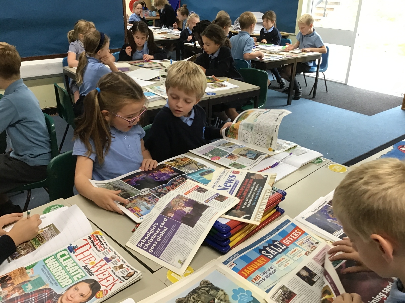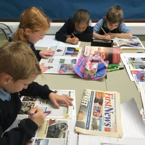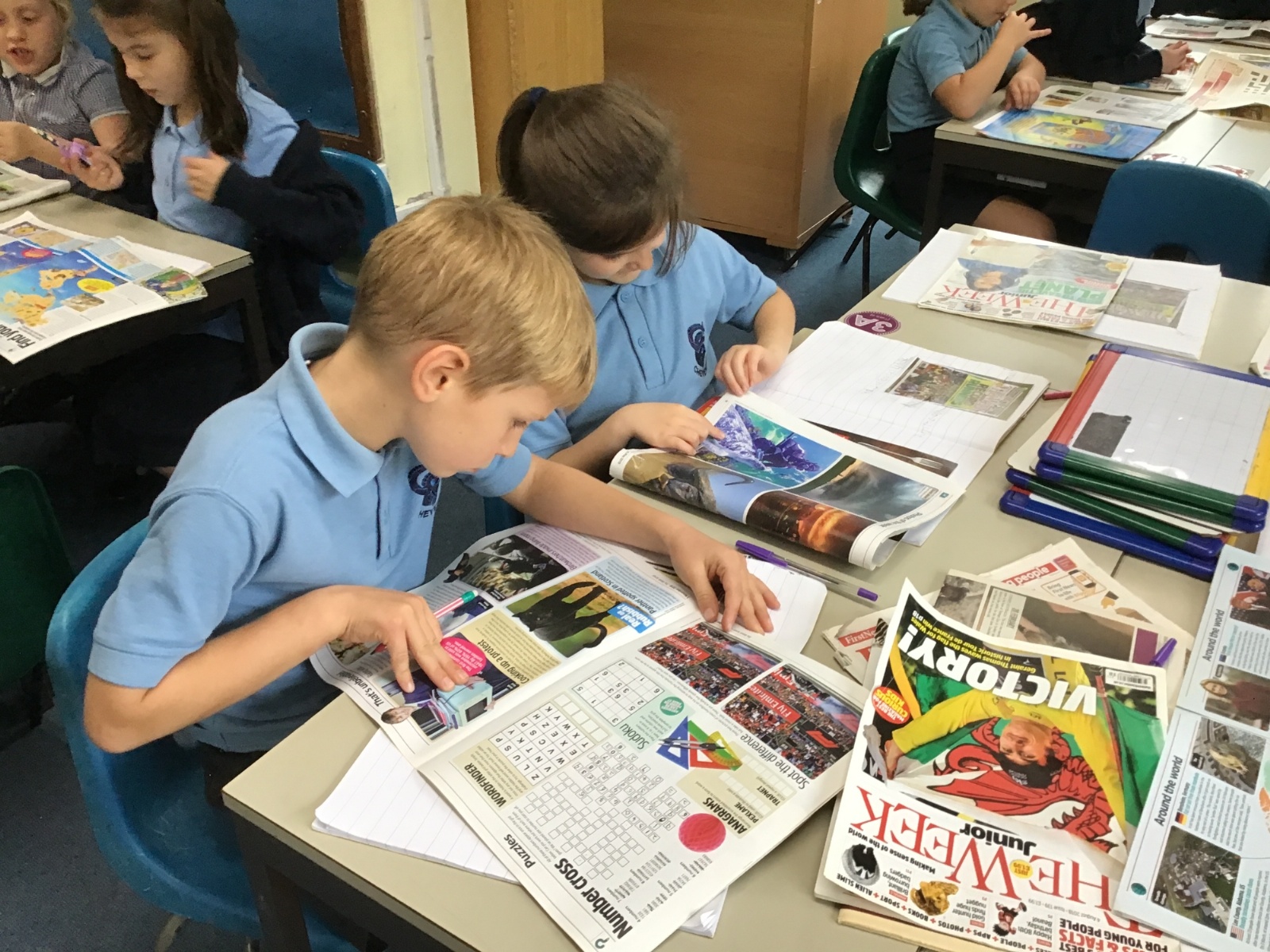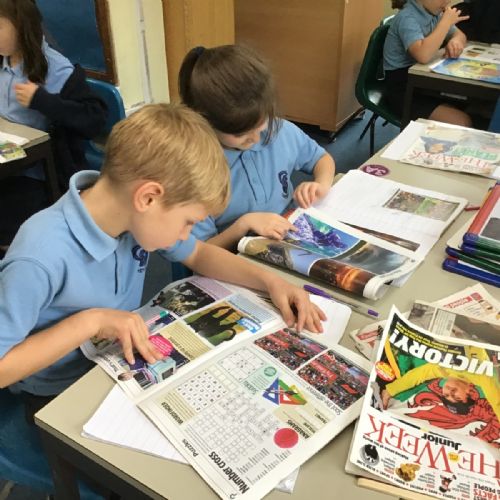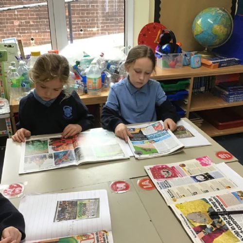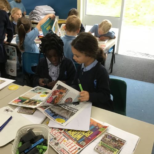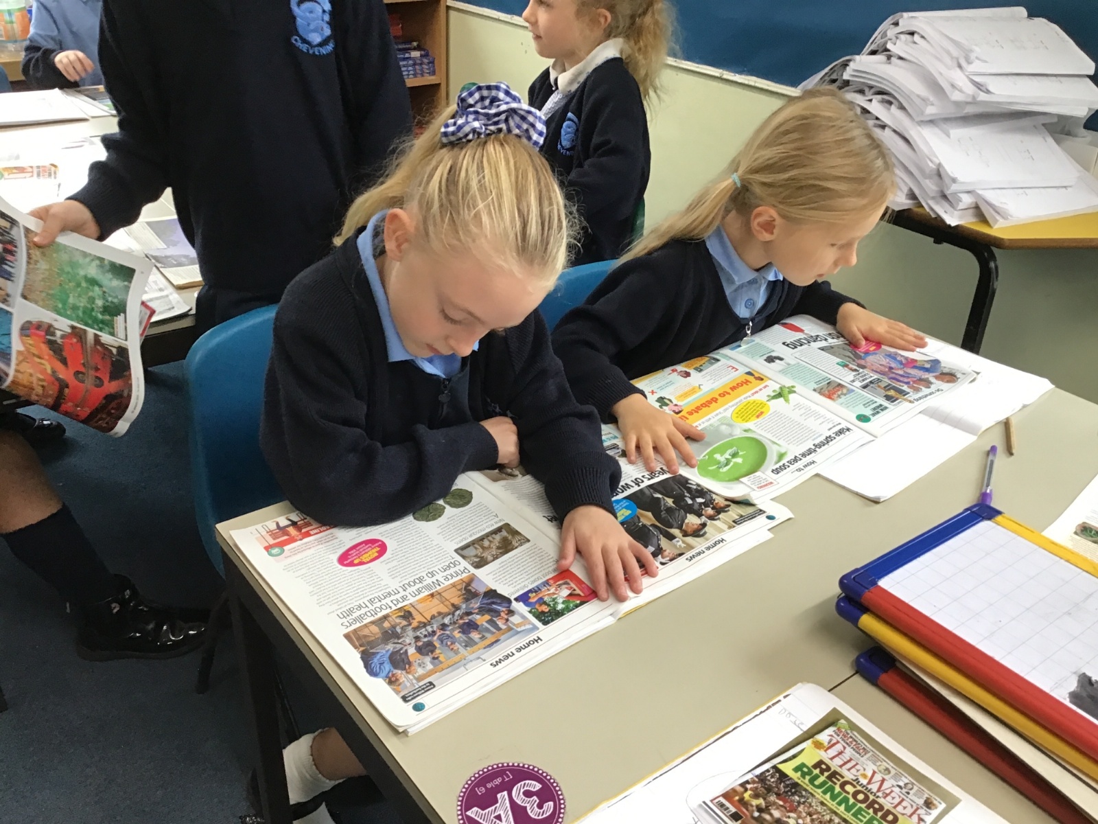Before embarking on the challenge of writing news reports, recounting Claude's heroic adventure in the city (we're giving no spoilers!), Class 2 have been exploring their features. Mr Q very kindly lent us a very large collection of magazines and newspapers he had, which has allowed us to explore and discover all that this fascinating literary genre has to offer.