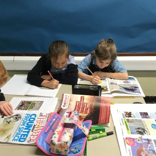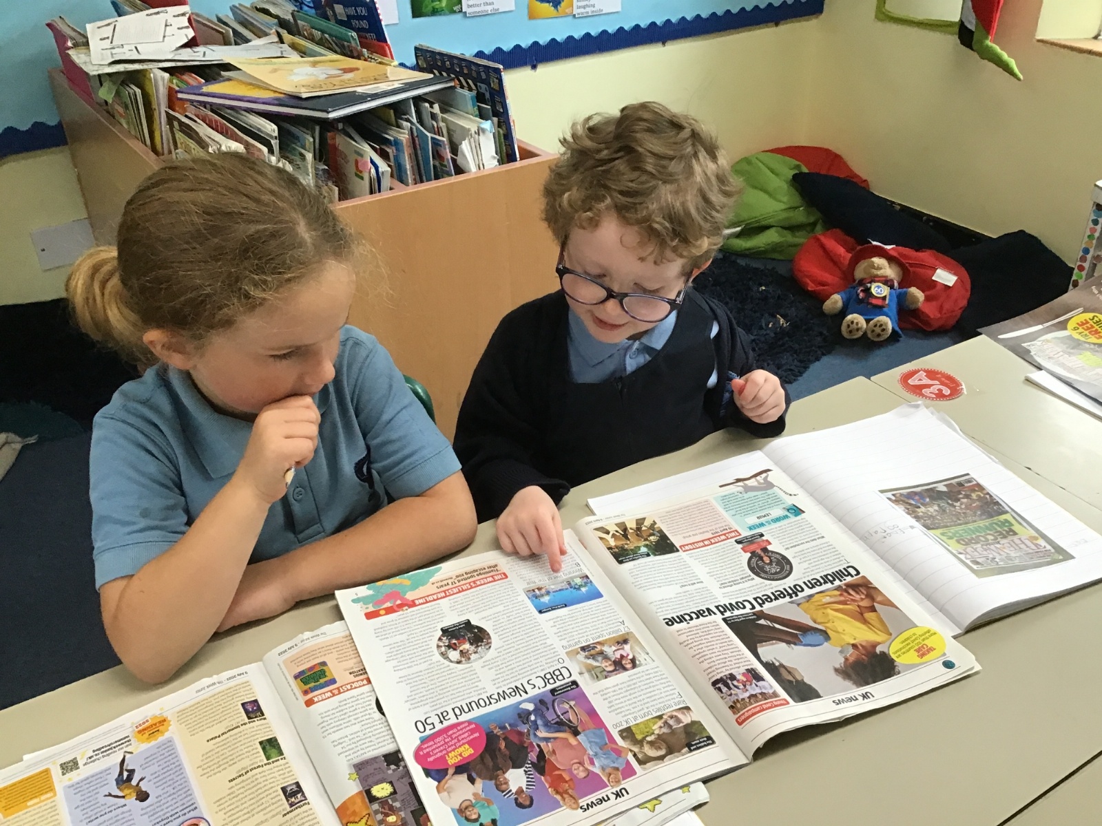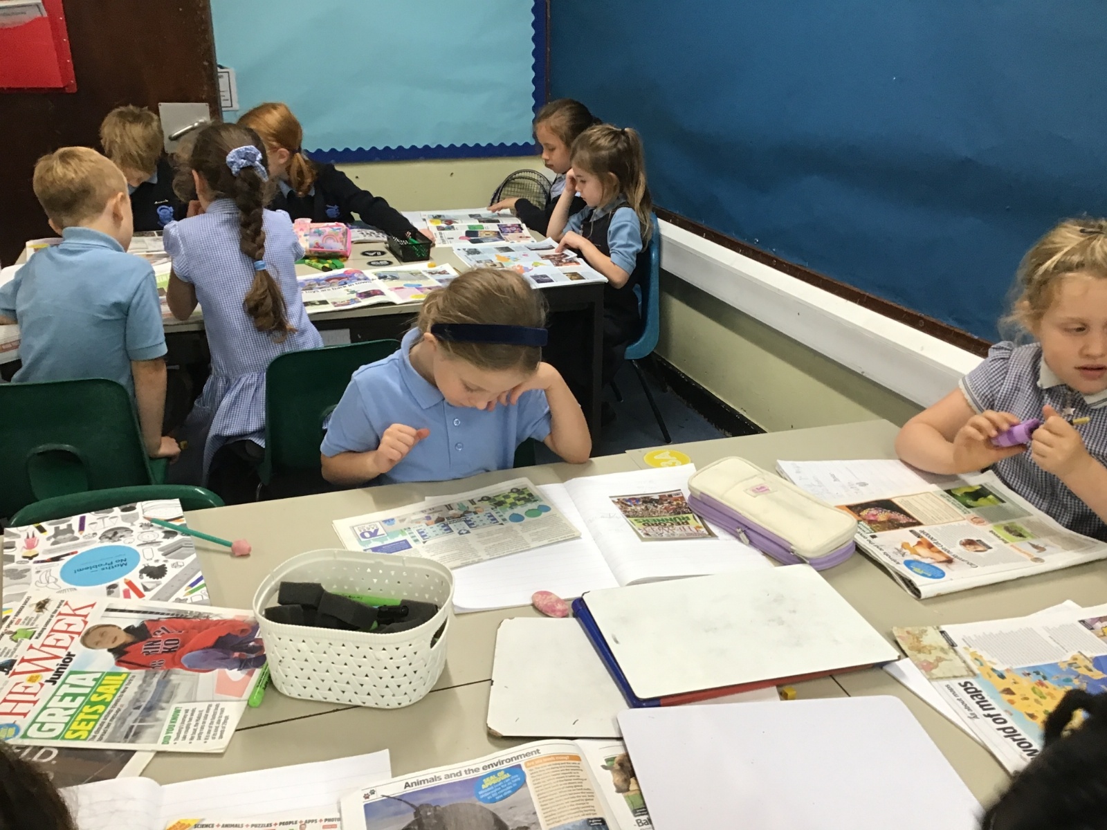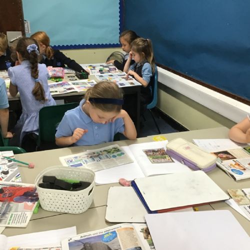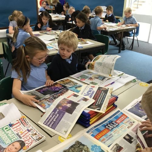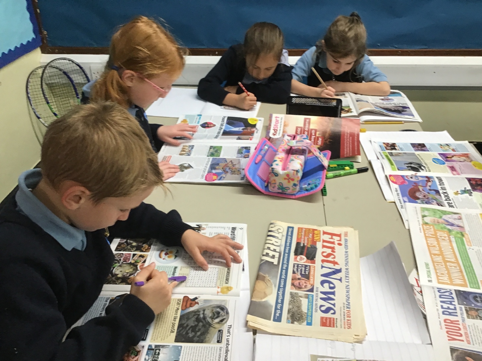 Before embarking on the challenge of writing news reports, recounting Claude's heroic adventure in the city (we're giving no spoilers!), Class 2 have been exploring their features. Mr Q very kindly lent us a very large collection of magazines and newspapers he had, which has allowed us to explore and discover all that this fascinating literary genre has to offer.