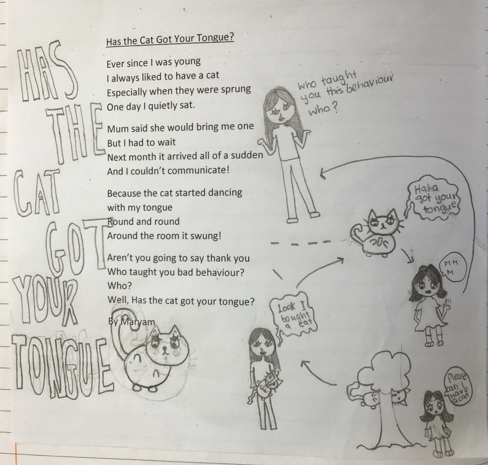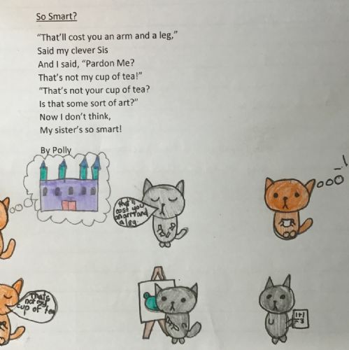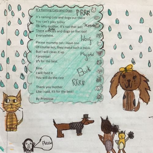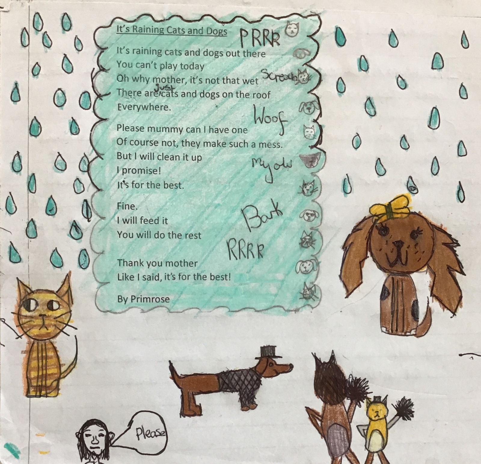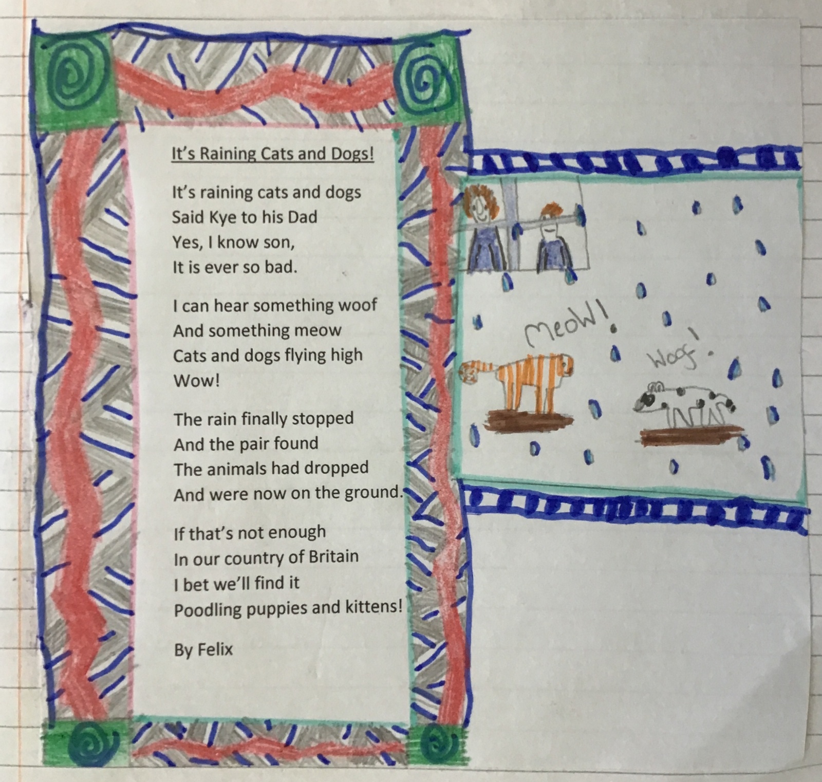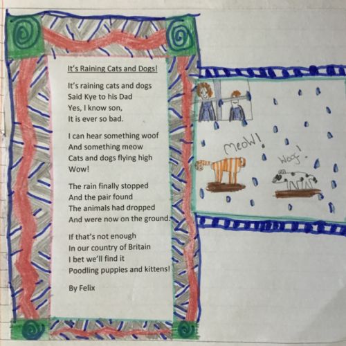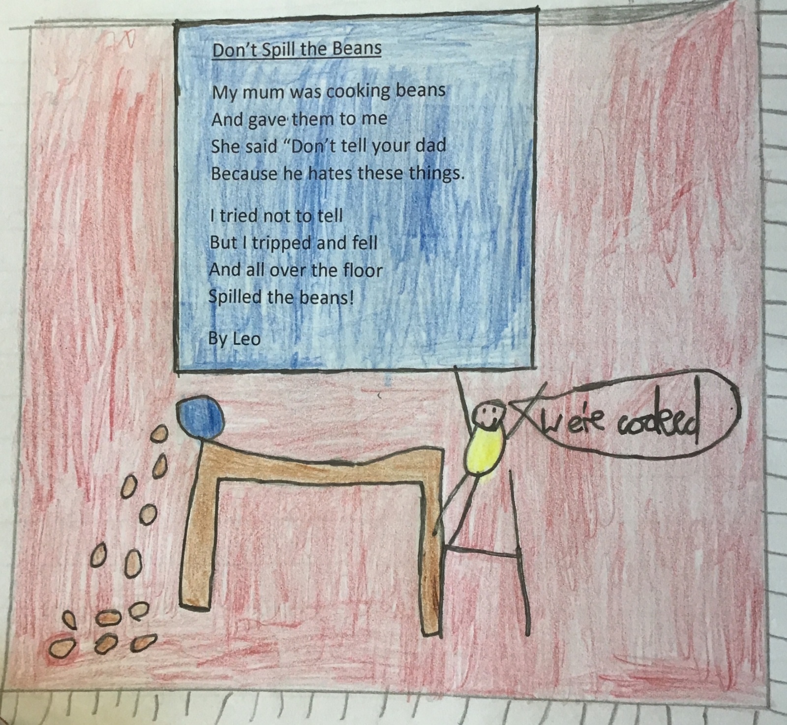 The theme of Poetry Day this year is ‘play’ and Y5 have just finished compiling their own book of poetry based on idioms and the quirky nature of our great language. It is a language that is rich with the influence of so many countries and cultures. (You should be able to get your hands on a physical copy to enjoy at home soon. There are is also an external link to a Poetry Day website here.)