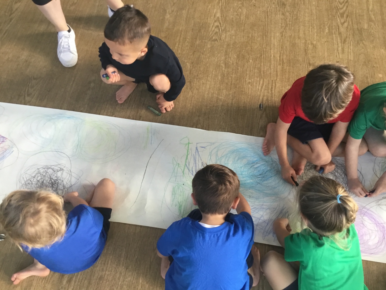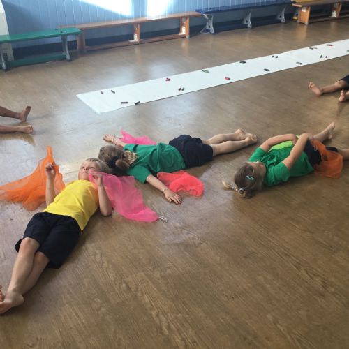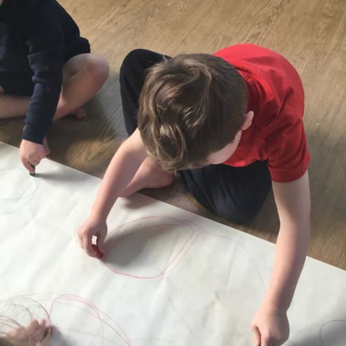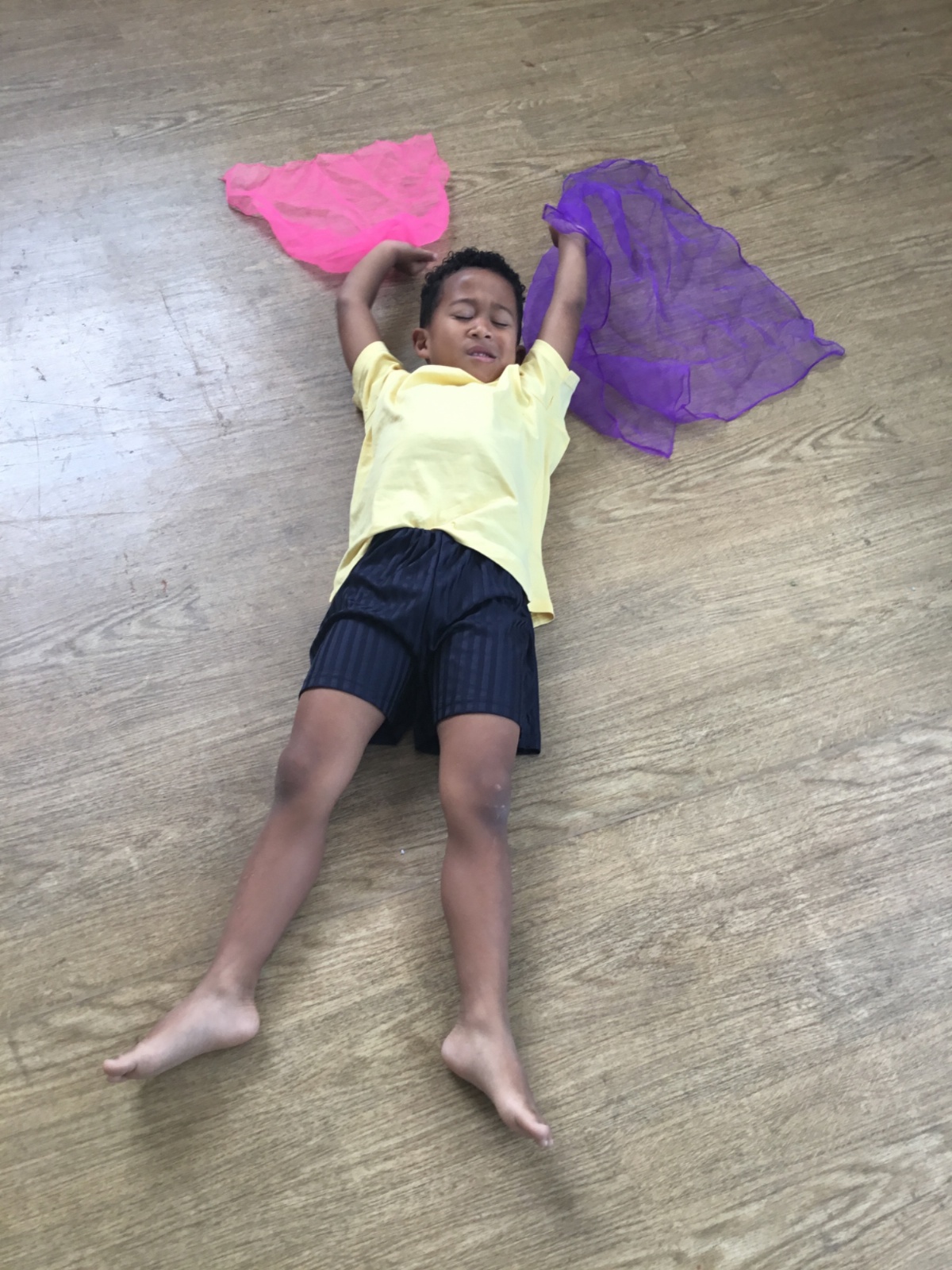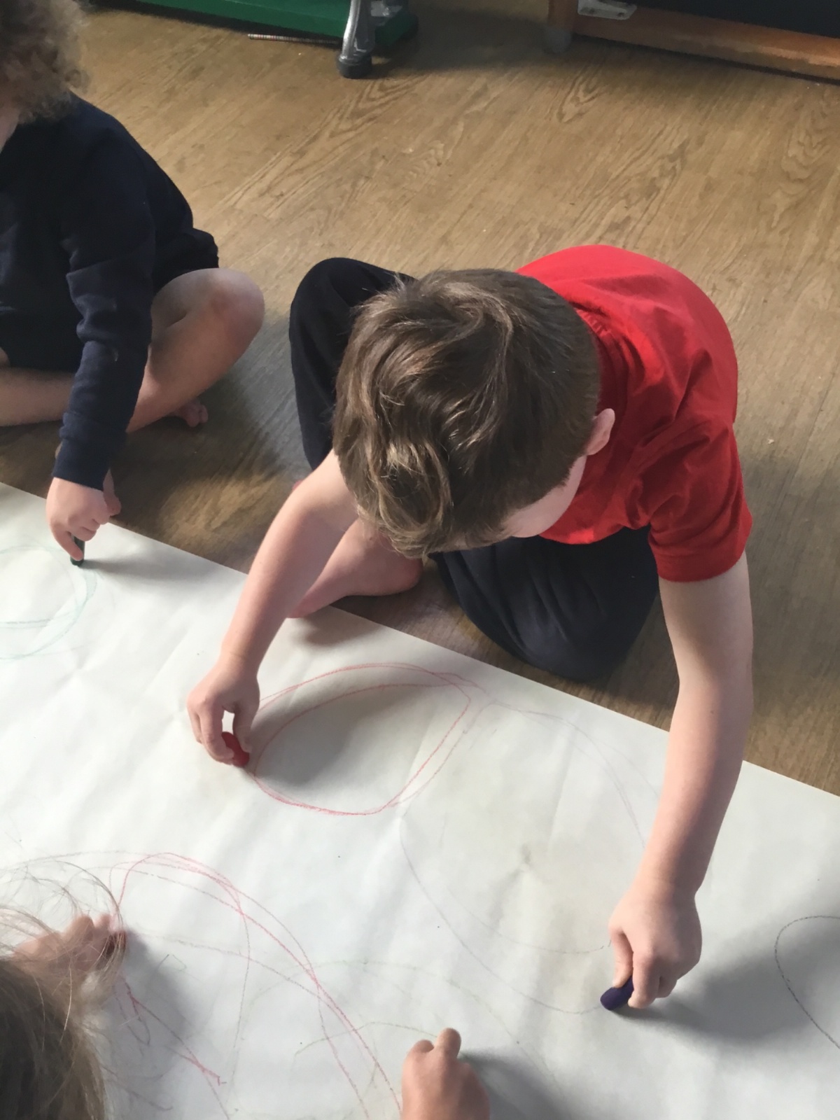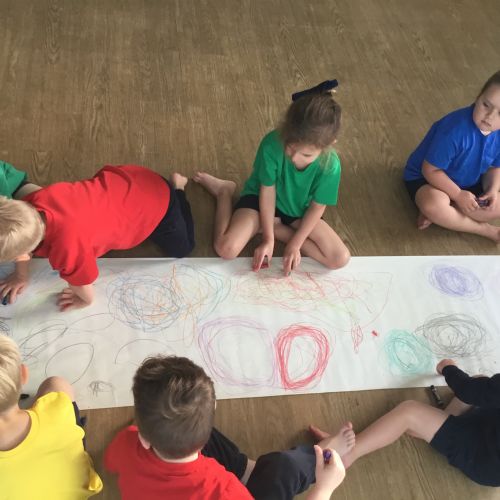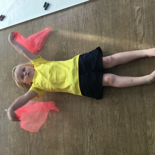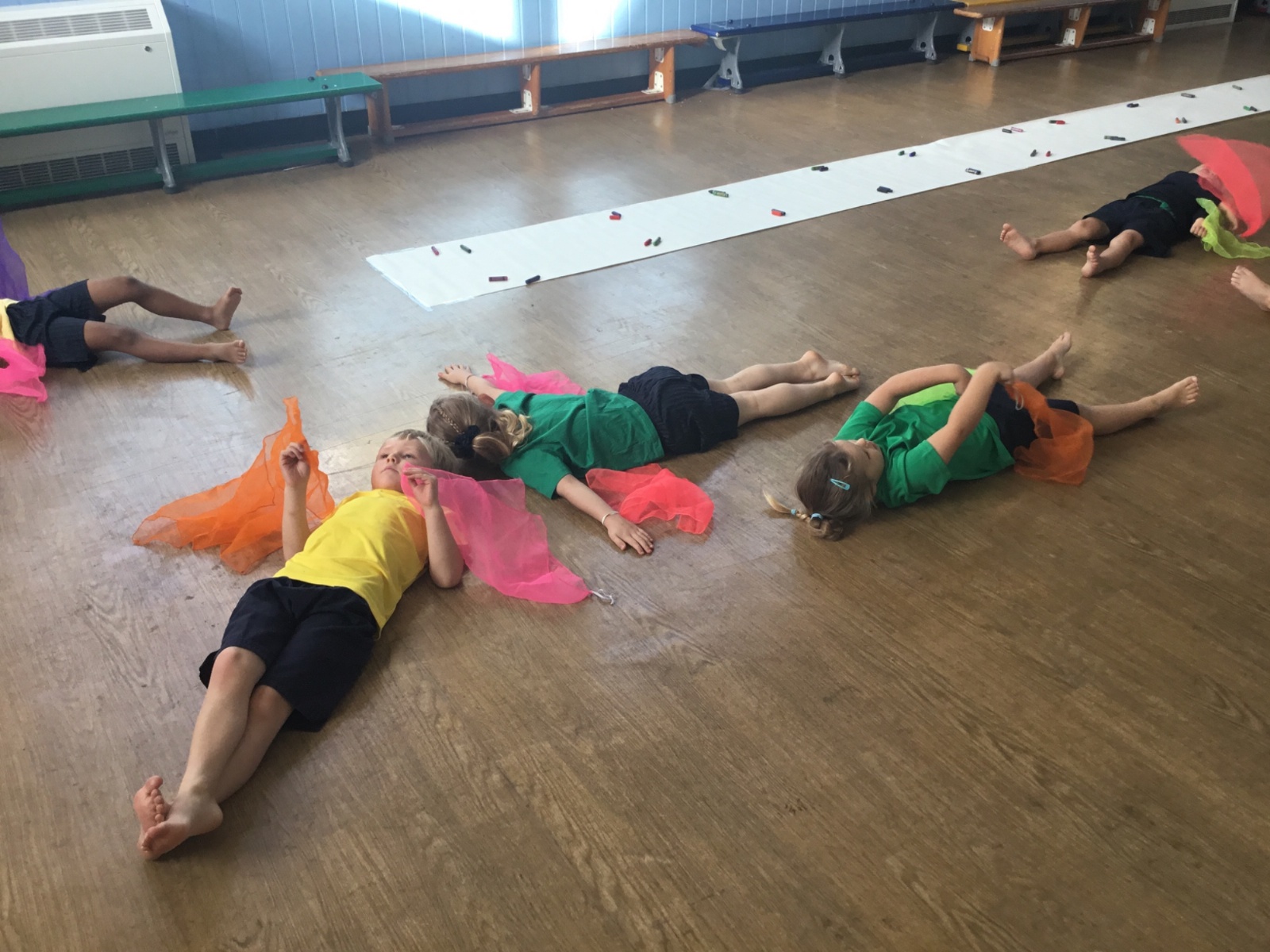 This week in Write Dance, we used our imaginations to take a peaceful walk through the countryside. Lying on our backs, we followed the winding country path with our scarves, spotting a variety of creatures along the way. Afterwards, we brought our journey to life by putting crayon to paper and illustrating the scenes we imagined.