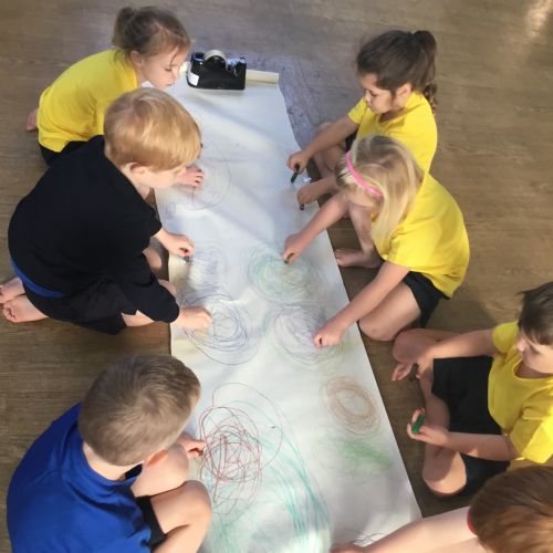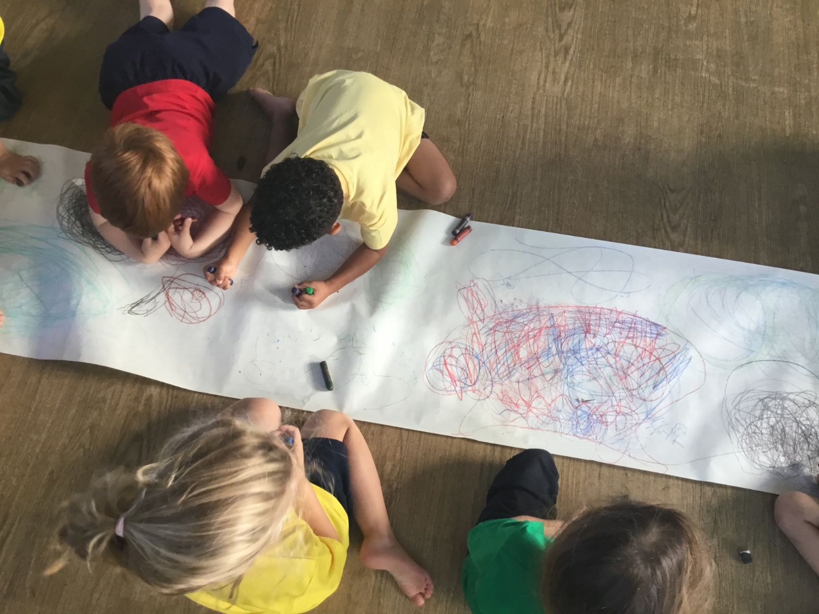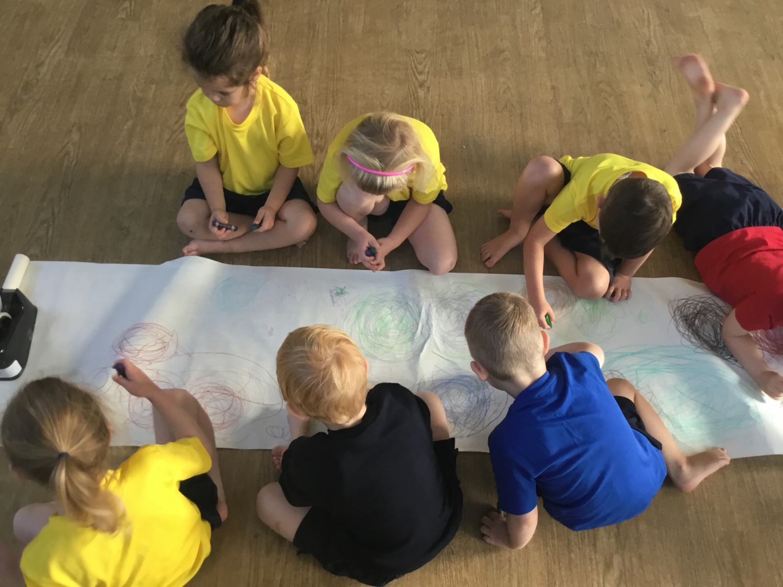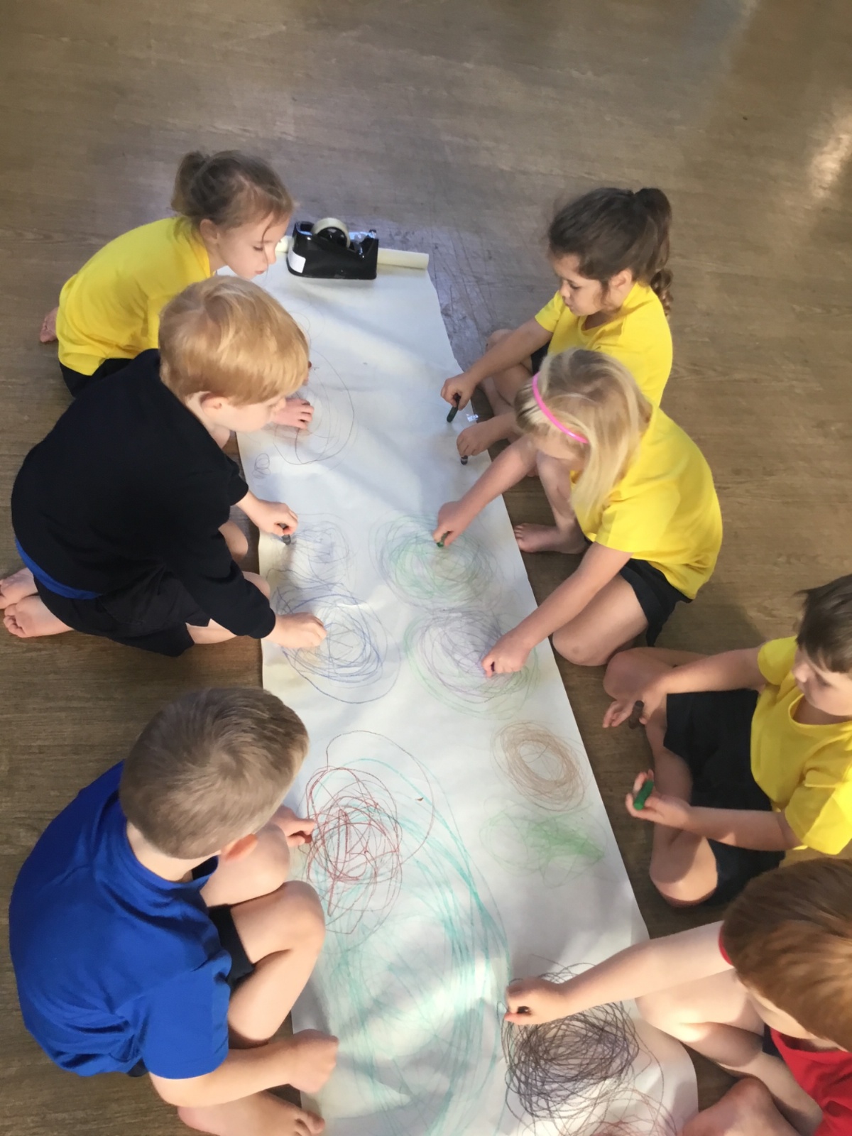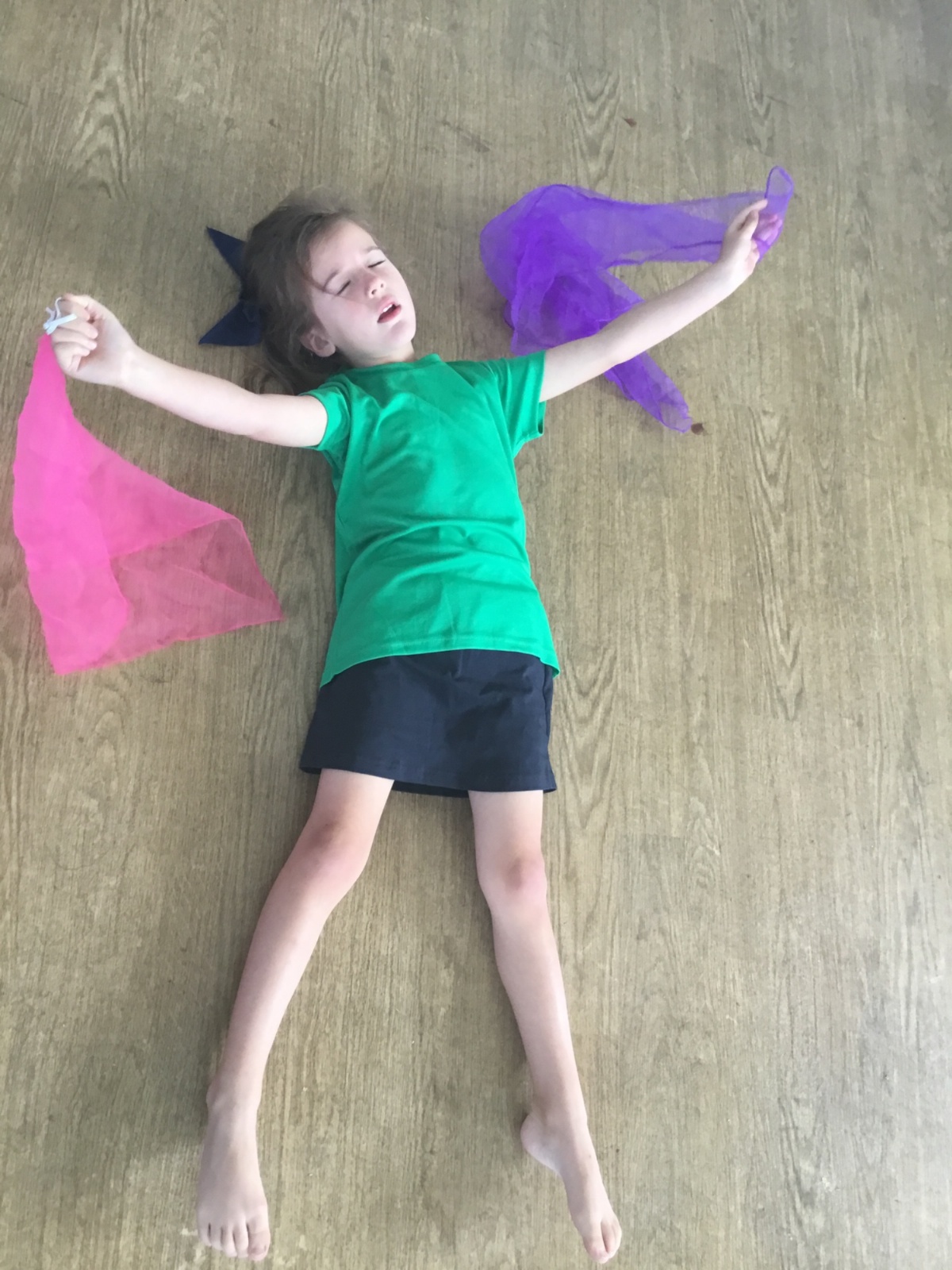 This week in Write Dance, we used our imaginations to take a peaceful walk through the countryside. Lying on our backs, we followed the winding country path with our scarves, spotting a variety of creatures along the way. Afterwards, we brought our journey to life by putting crayon to paper and illustrating the scenes we imagined.