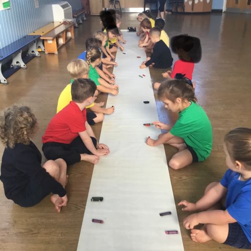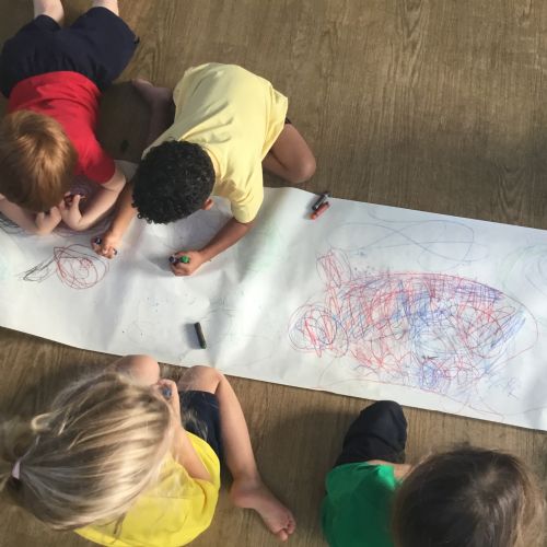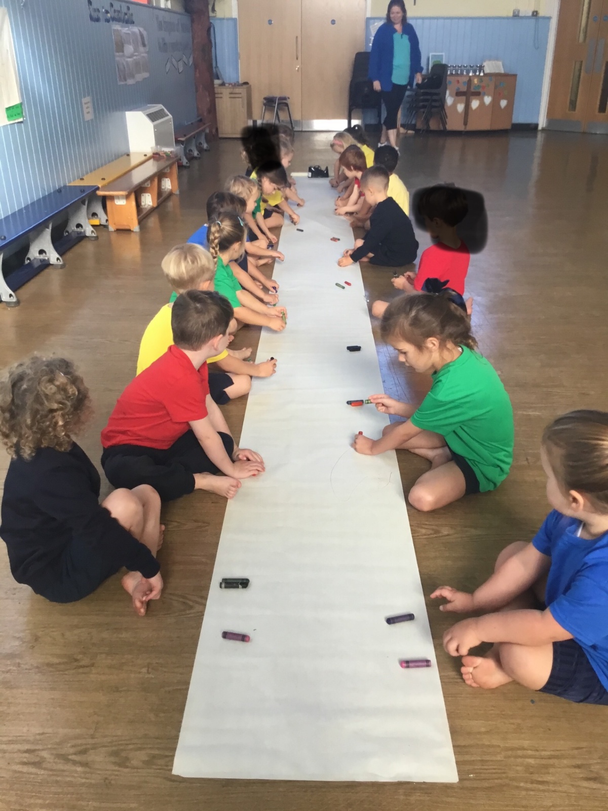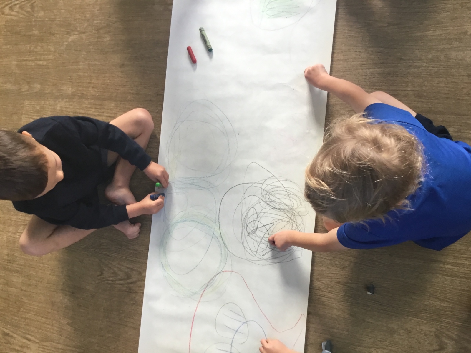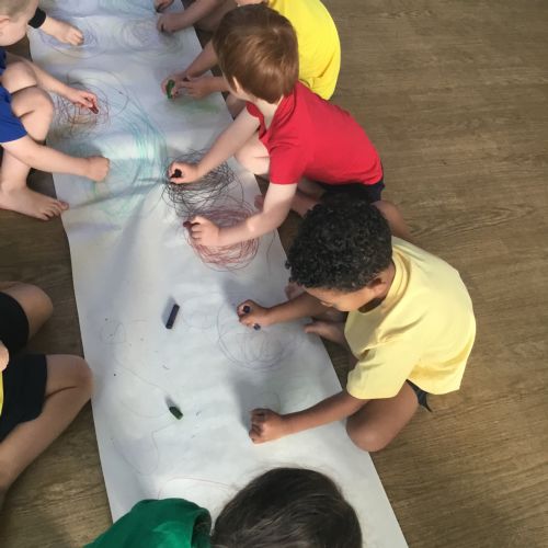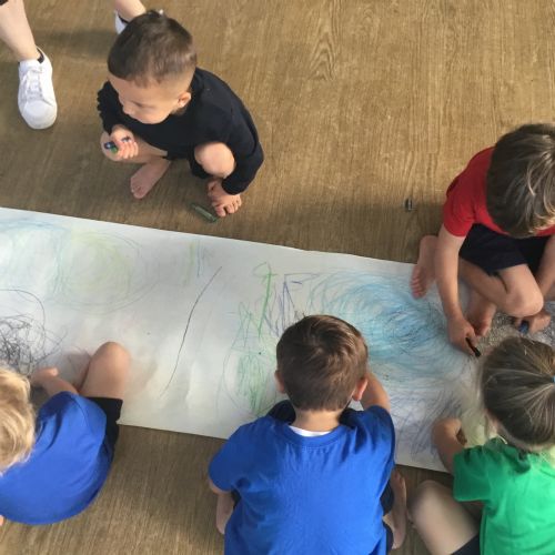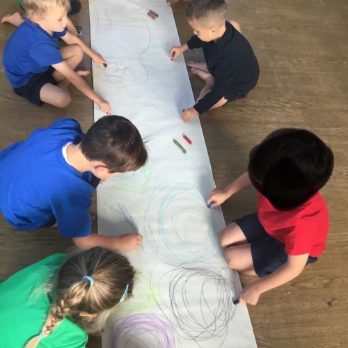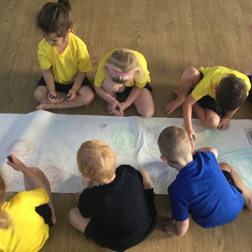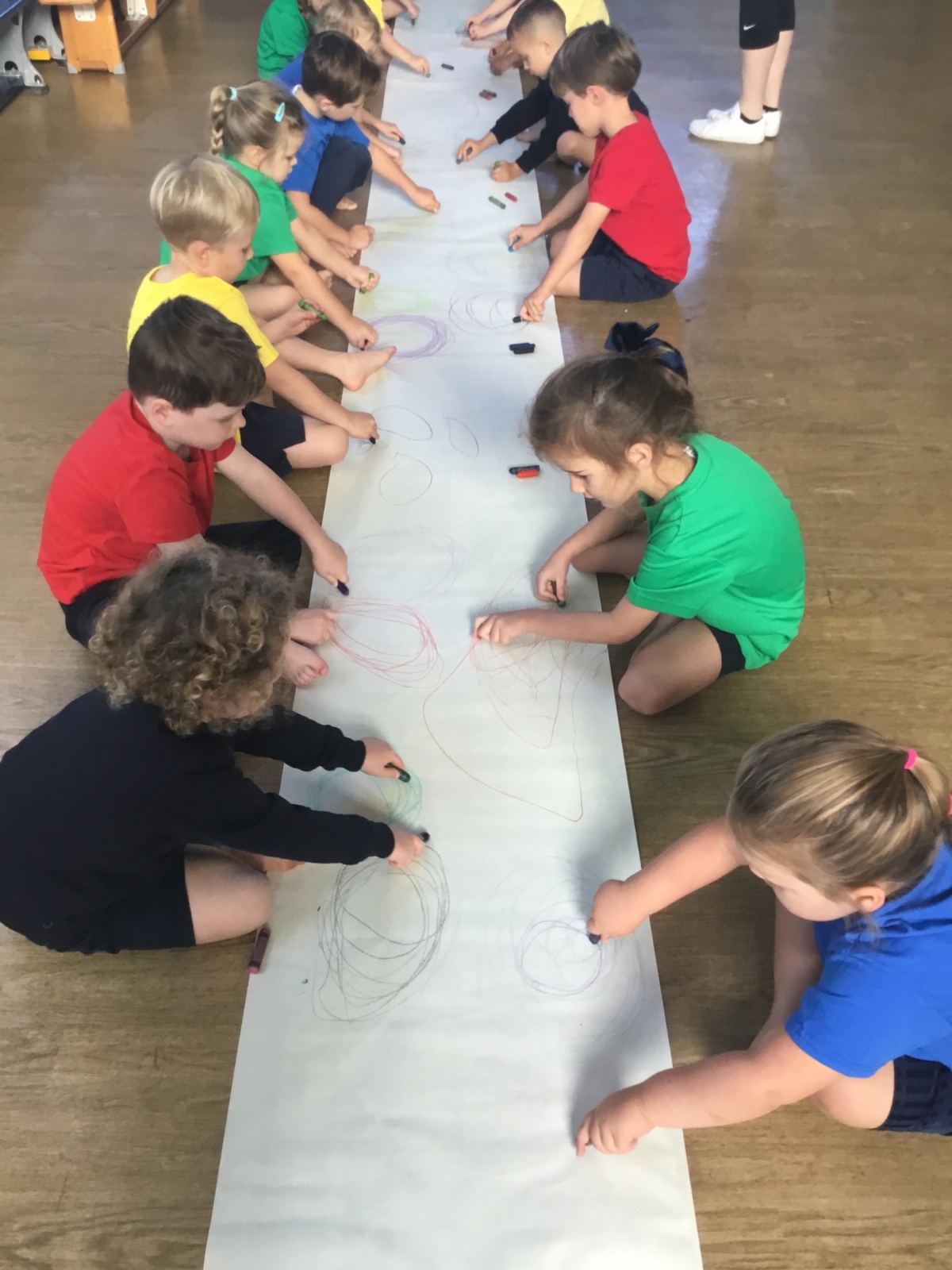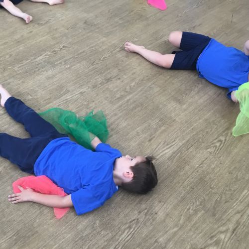 This week in Write Dance, we used our imaginations to take a peaceful walk through the countryside. Lying on our backs, we followed the winding country path with our scarves, spotting a variety of creatures along the way. Afterwards, we brought our journey to life by putting crayon to paper and illustrating the scenes we imagined.