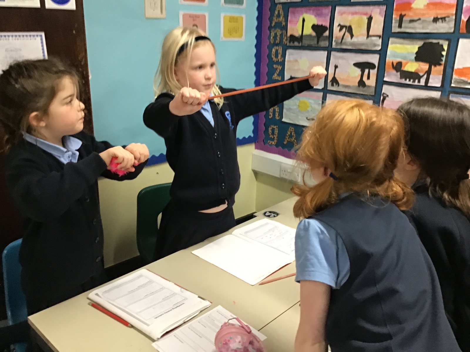 This term, Class 2 will continue to learn about different materials but focus on their different properties. In order to do so, they will need to carry out a lot of investigative work. So far, we have tried to work out what kind of balls are the bounciest and which fabrics are the stretchiest! Before carrying out the investigations, we have tried to come up with a possible hypothesis which can be quite tricky. Do balls with the most air in them bounce more? Are the thinnest materials the stretchiest?