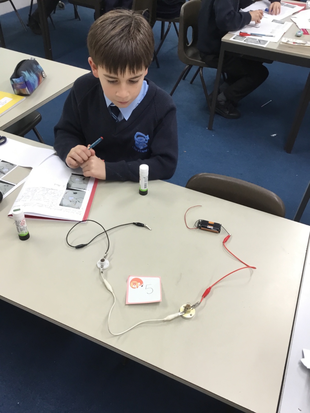 We have been working on our ability to make predictions. We were given a series of circuits to study. We then had to predict if the bulb or motor would work by connecting one wire. We used what we already know about circuits to inform our predictions.