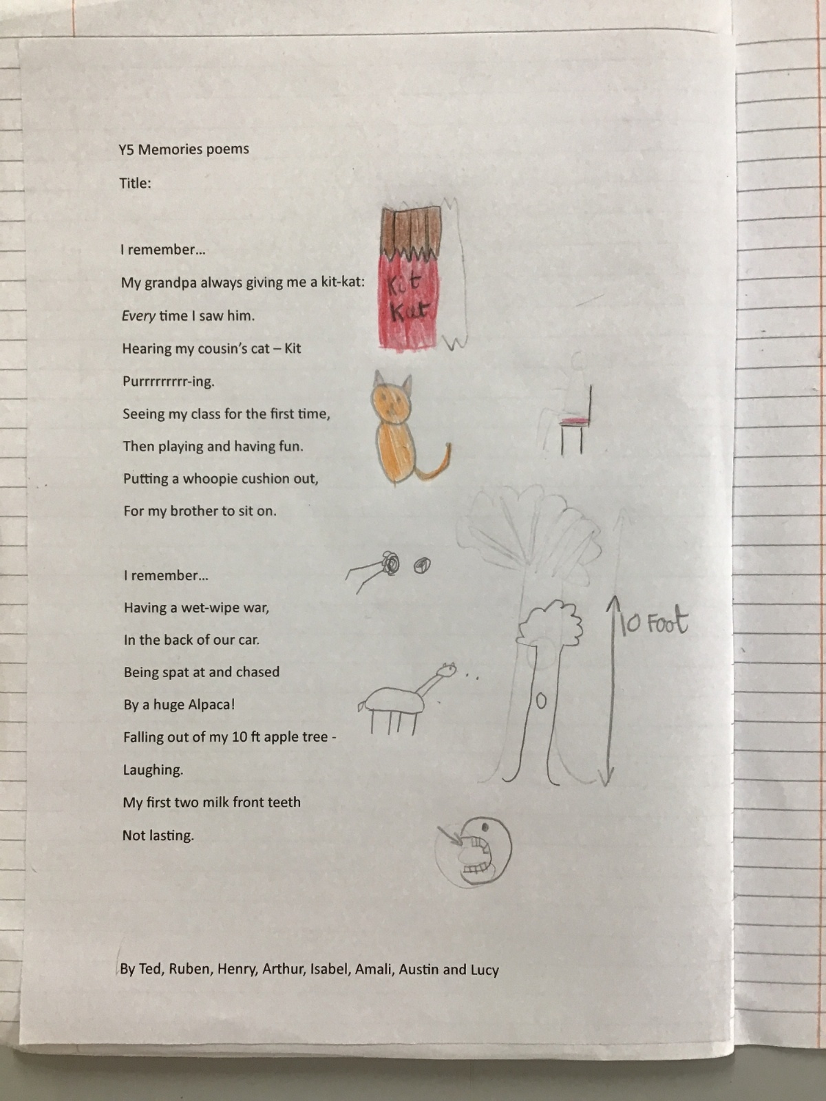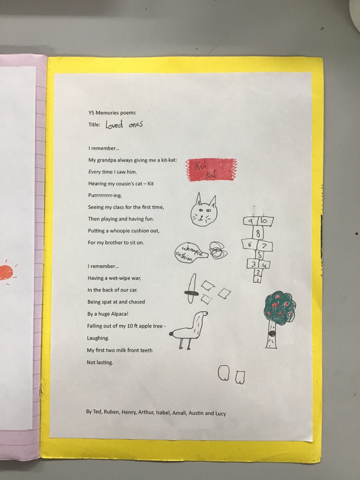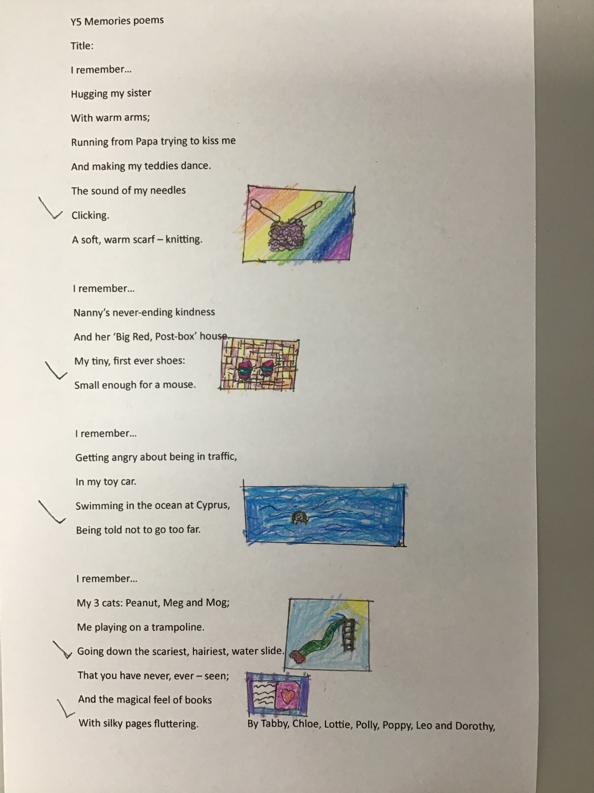 Update: Following on from last week’s article in the school newsletter, Class 5 are pleased to announce that the ‘Memory Box’ Poetry is now on display at the famous Riverhead Telephone Box; and also online via author Jennifer Godfrey’s dedicated website. (You can find the website here… https://www.theperspective.biz) You can also enjoy the work of the Poetry Pathway Group on her site.