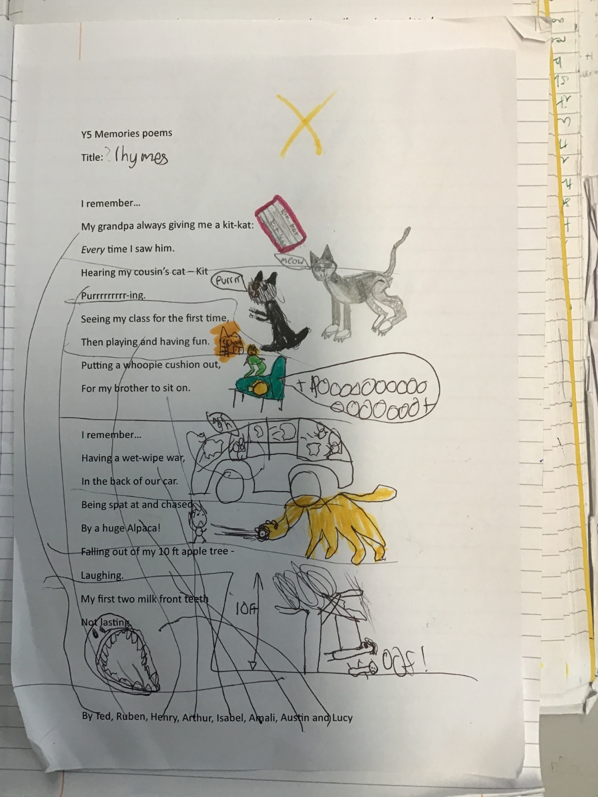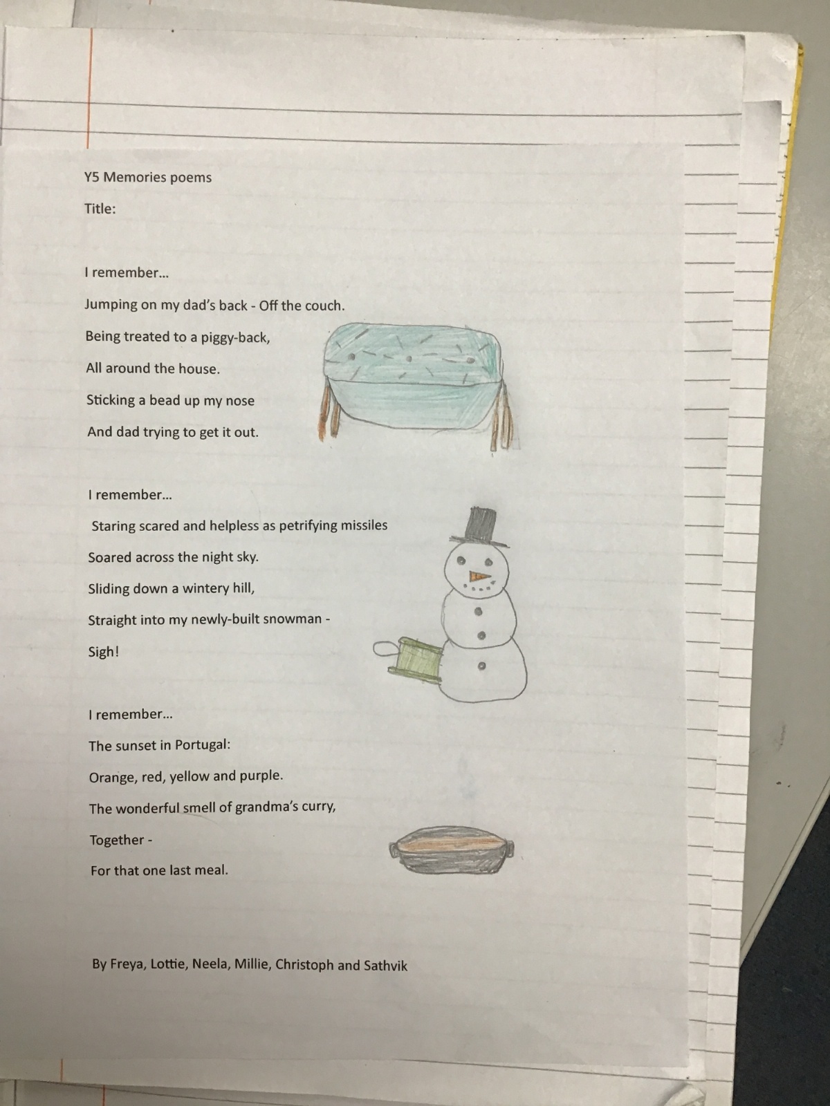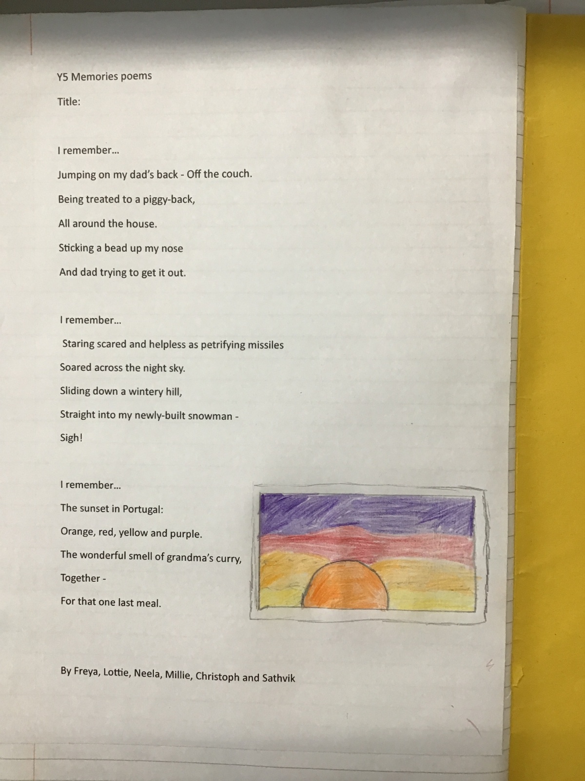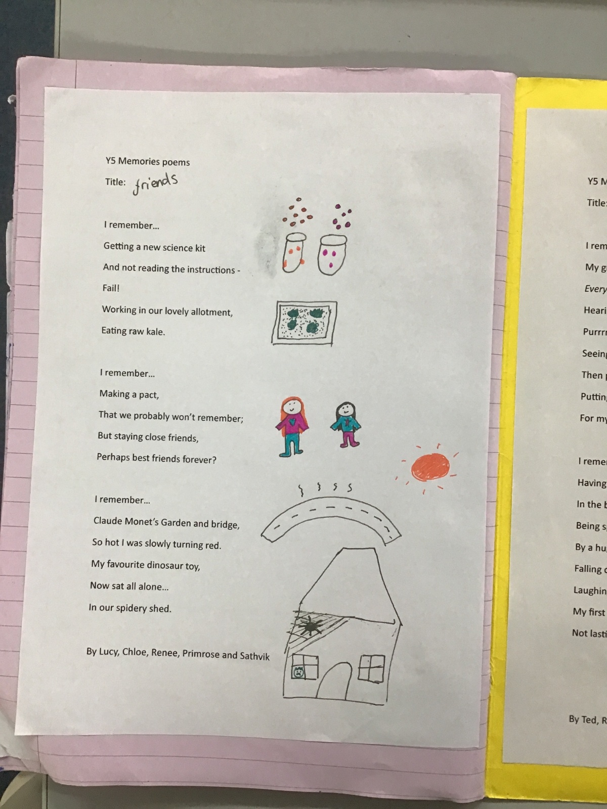 Update: Following on from last week’s article in the school newsletter, Class 5 are pleased to announce that the ‘Memory Box’ Poetry is now on display at the famous Riverhead Telephone Box; and also online via author Jennifer Godfrey’s dedicated website. (You can find the website here… https://www.theperspective.biz) You can also enjoy the work of the Poetry Pathway Group on her site.