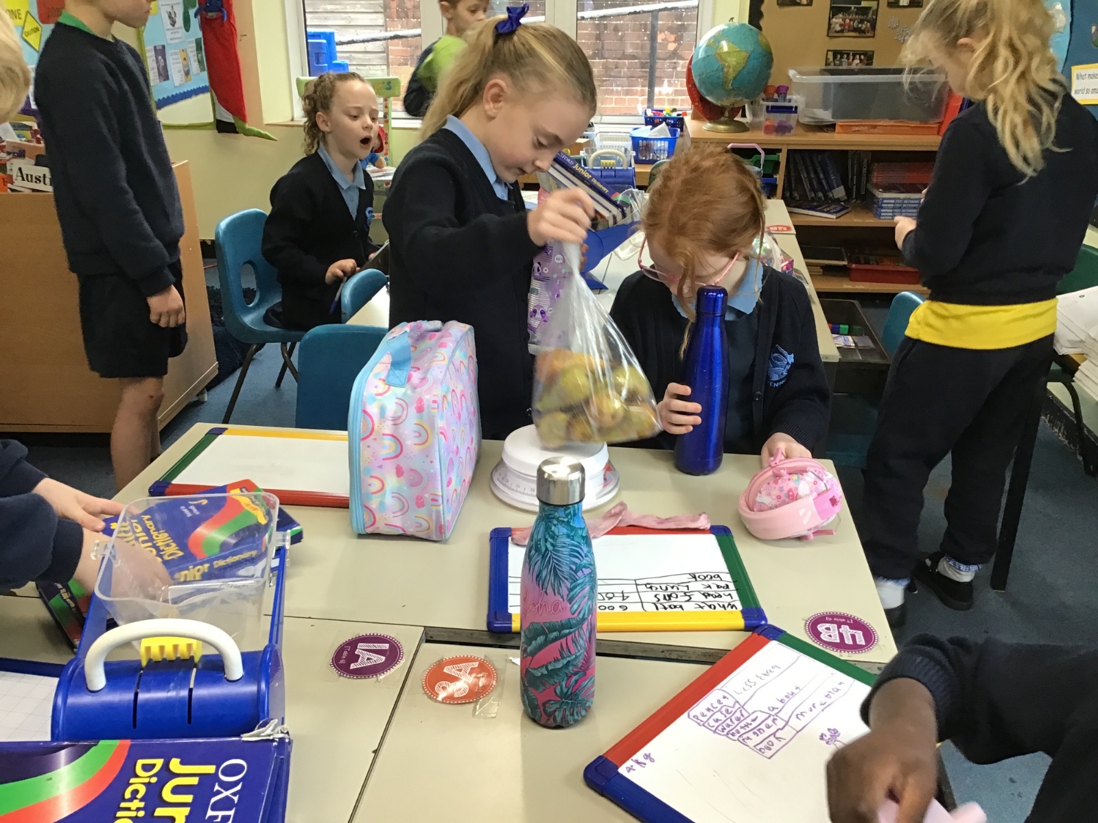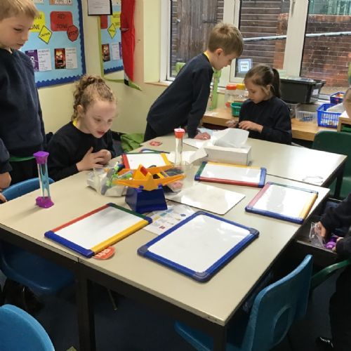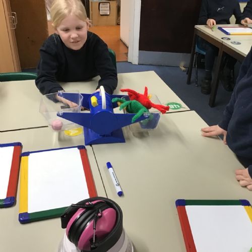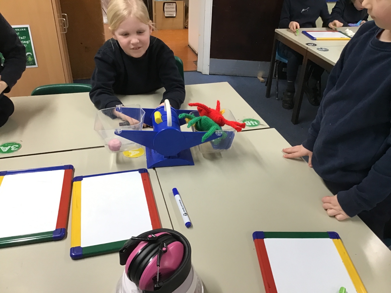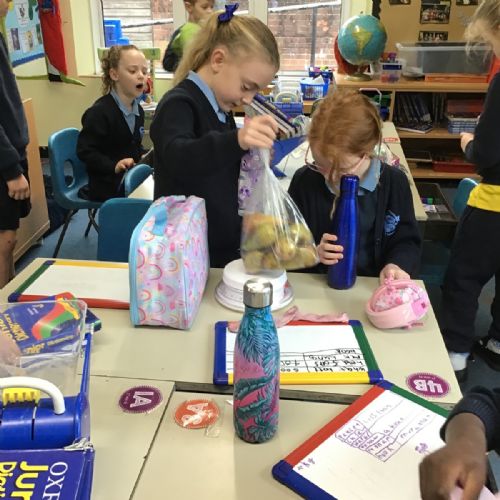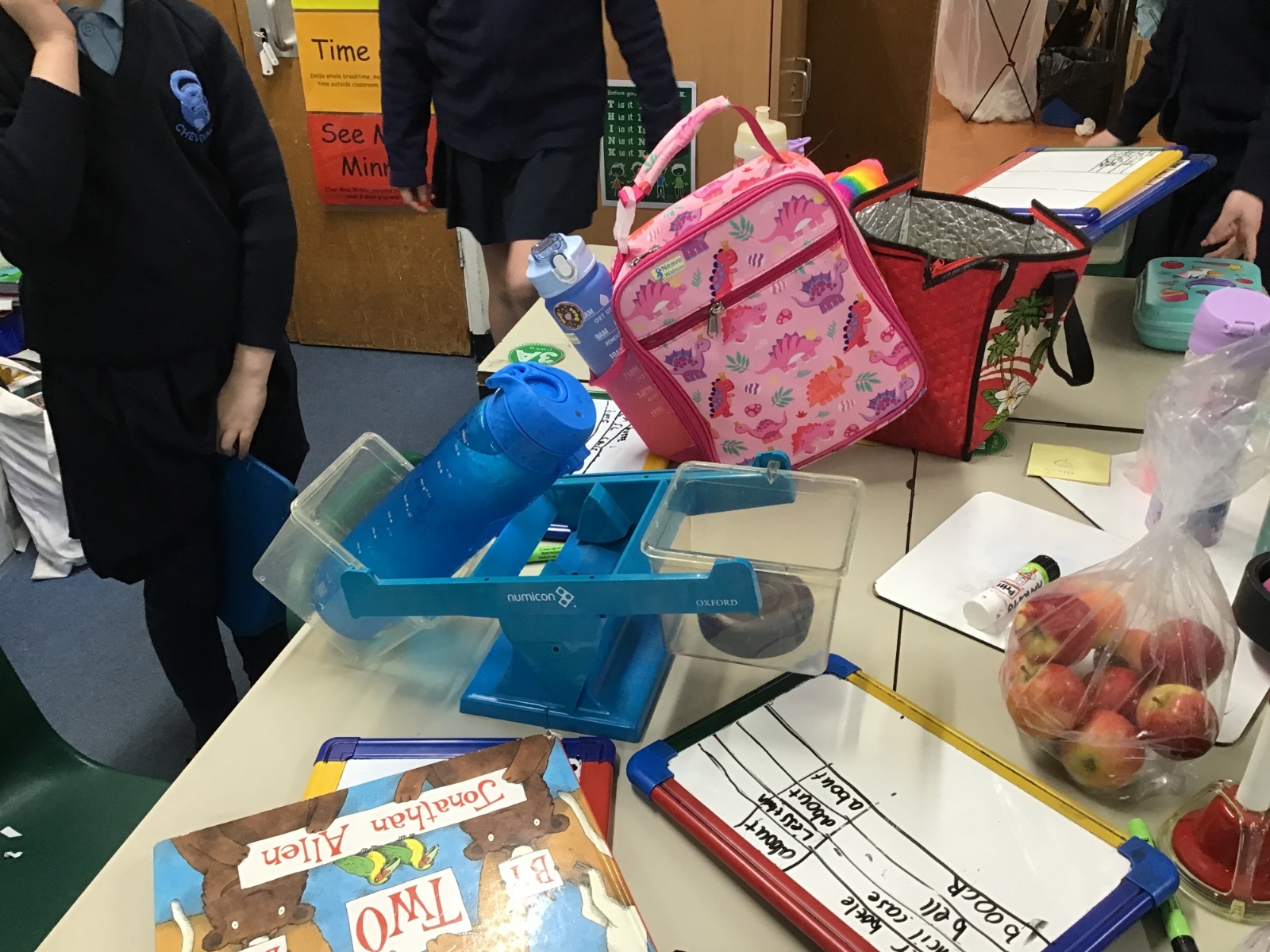 A little bit difficult to say and distinguish mass and maths, but Class 2 have had no problem. Their Maths lessons have been rather physical of late as they have had to measure in a variety of different ways; length, mass and temperature. I wonder how easy you would find it to estimate and then accurately weigh a piece of Playdough weighing 20g, 50g and then 70g? Then finding the correct amount of weight to balance this, with only classroom items at hand?
