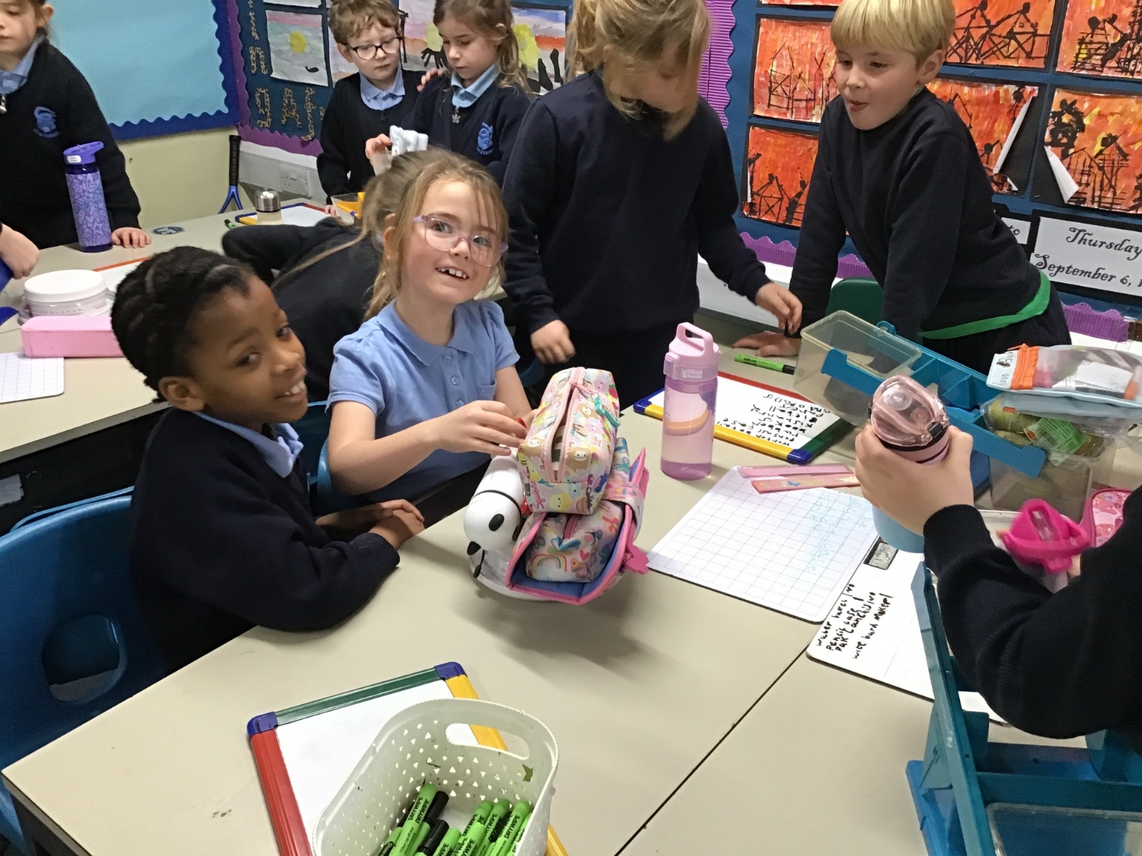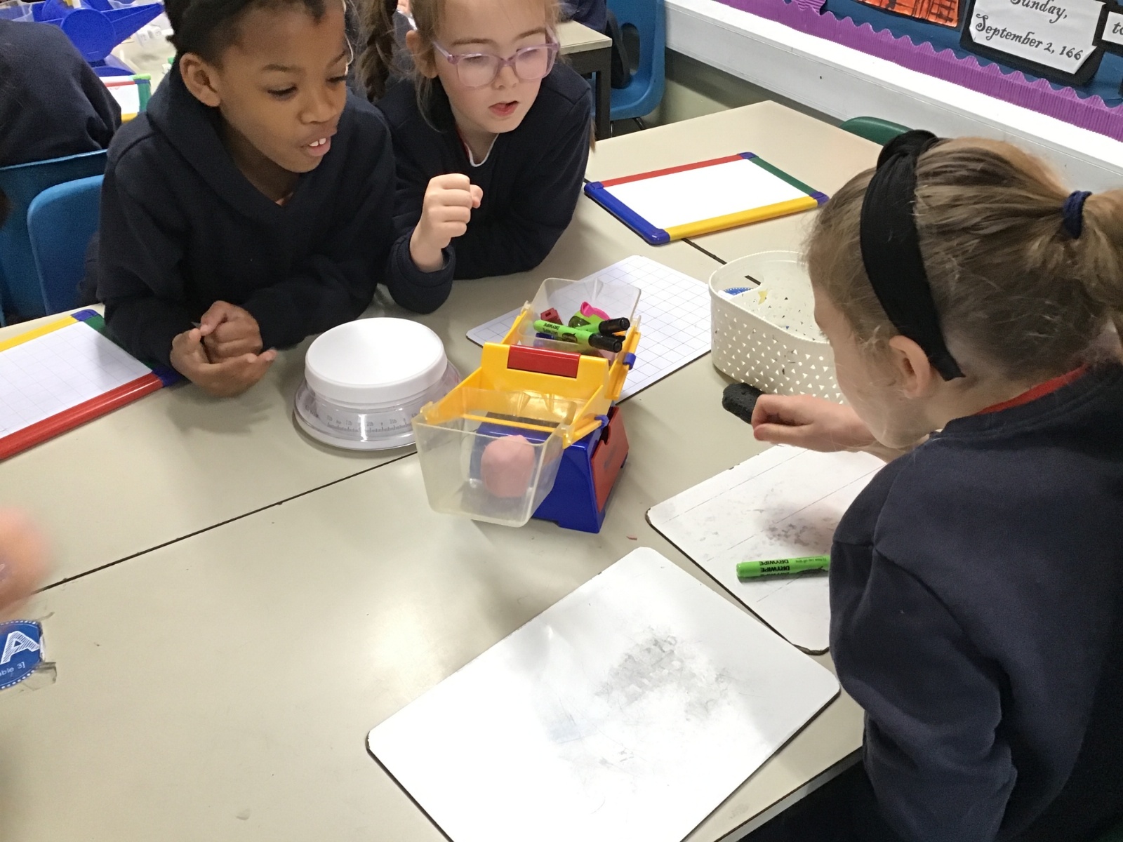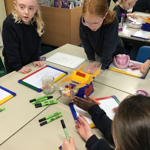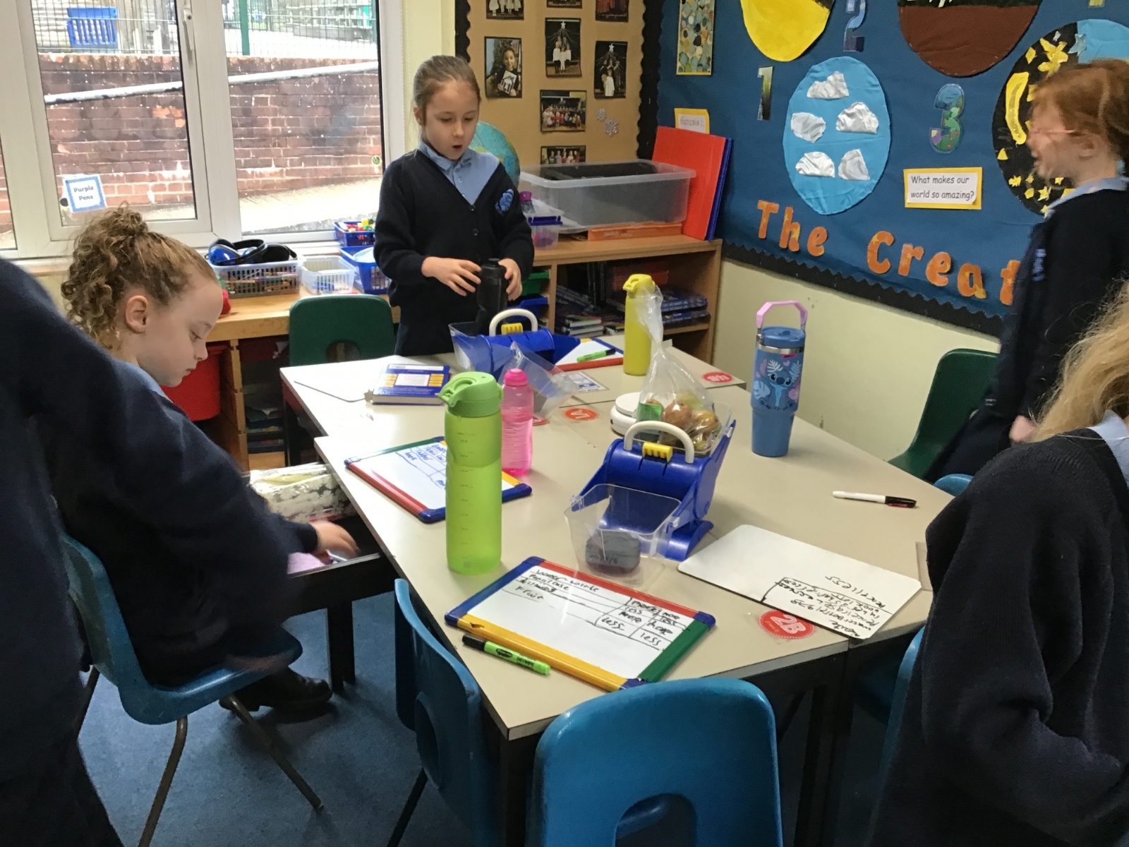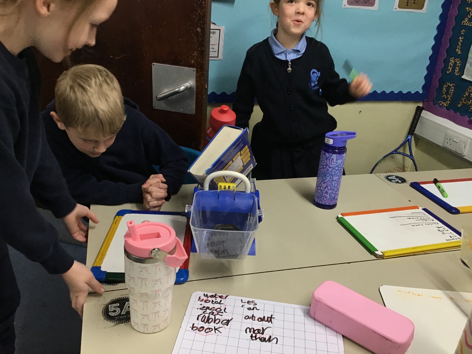 A little bit difficult to say and distinguish mass and maths, but Class 2 have had no problem. Their Maths lessons have been rather physical of late as they have had to measure in a variety of different ways; length, mass and temperature. I wonder how easy you would find it to estimate and then accurately weigh a piece of Playdough weighing 20g, 50g and then 70g? Then finding the correct amount of weight to balance this, with only classroom items at hand?