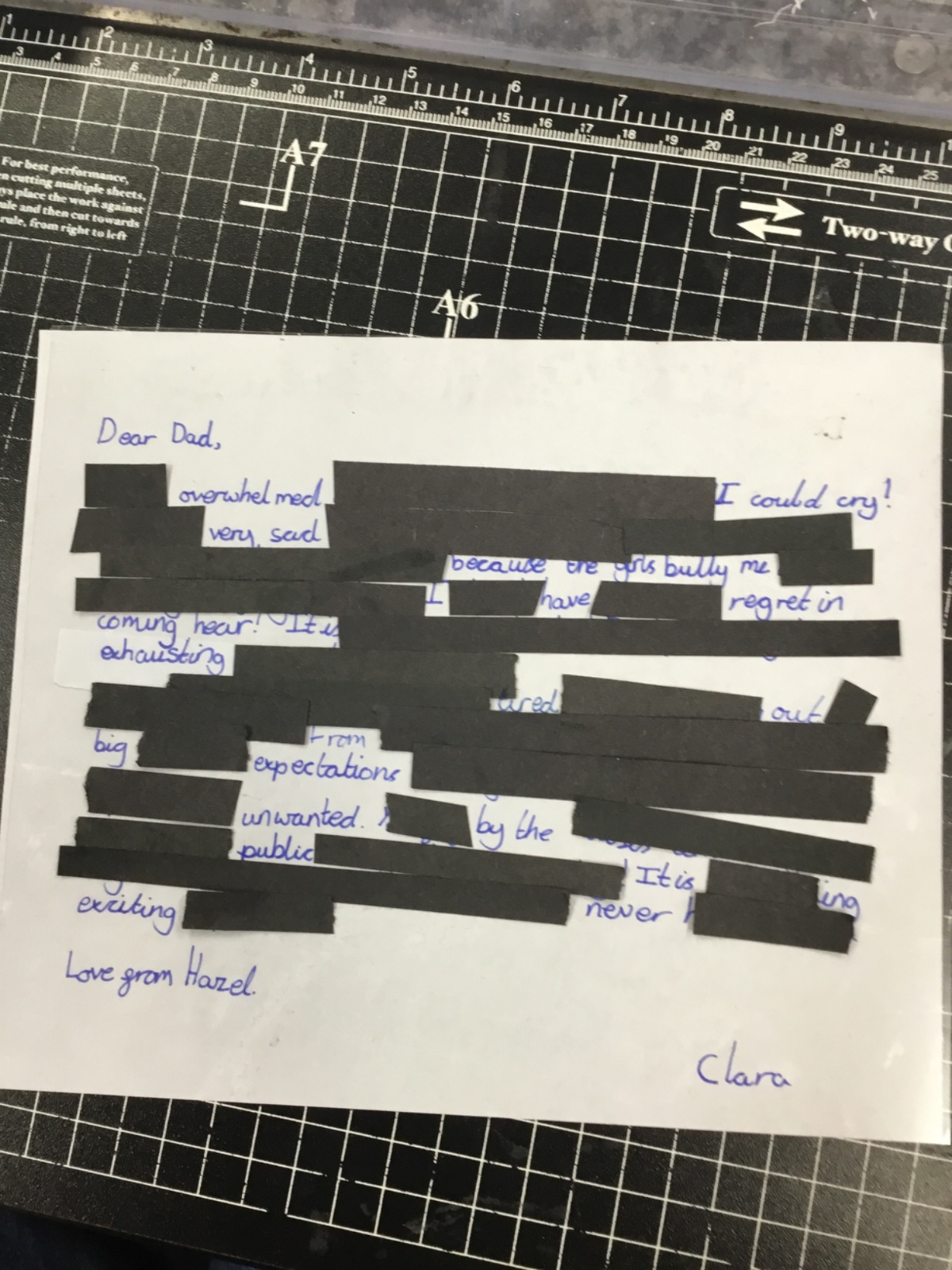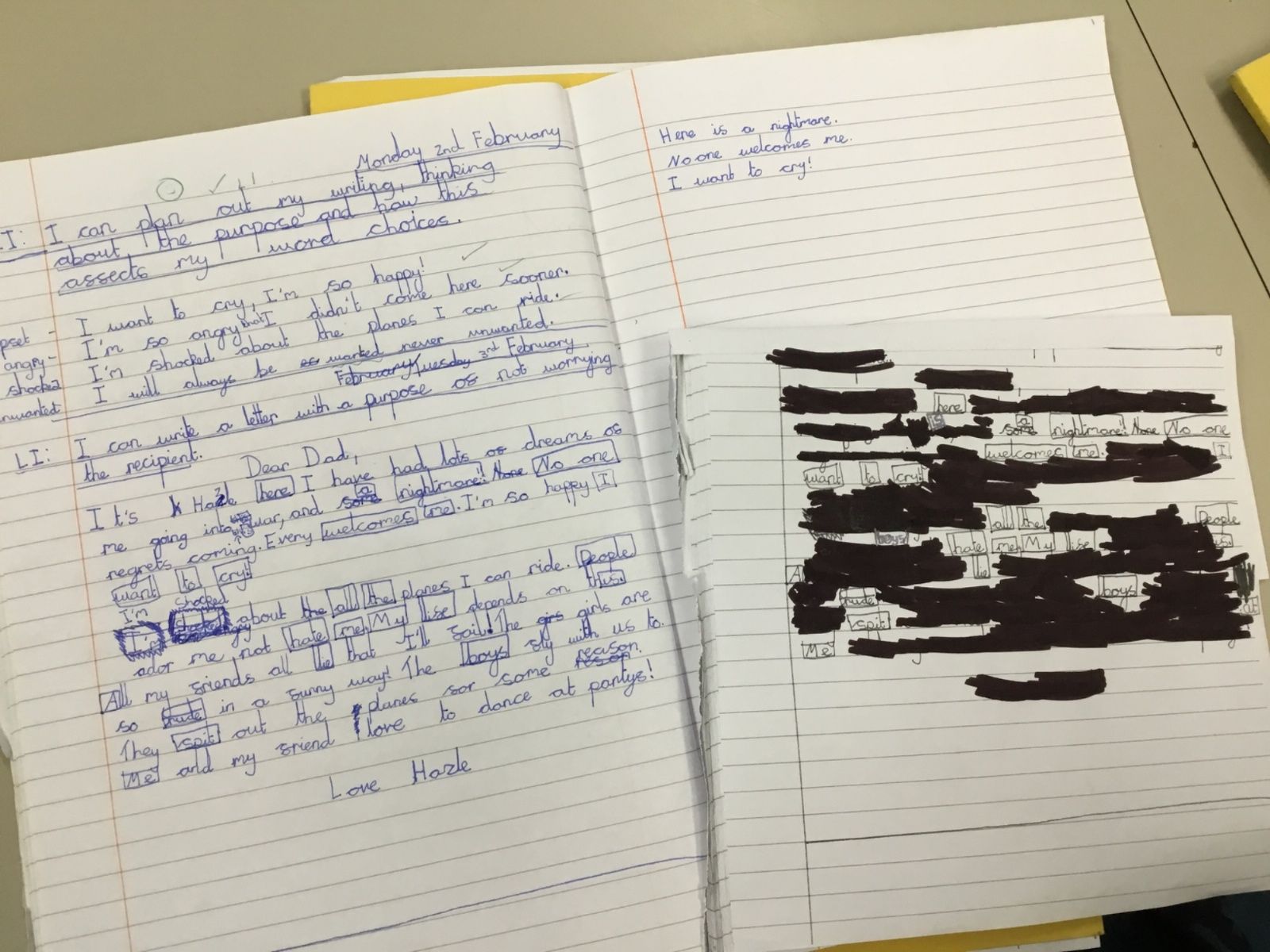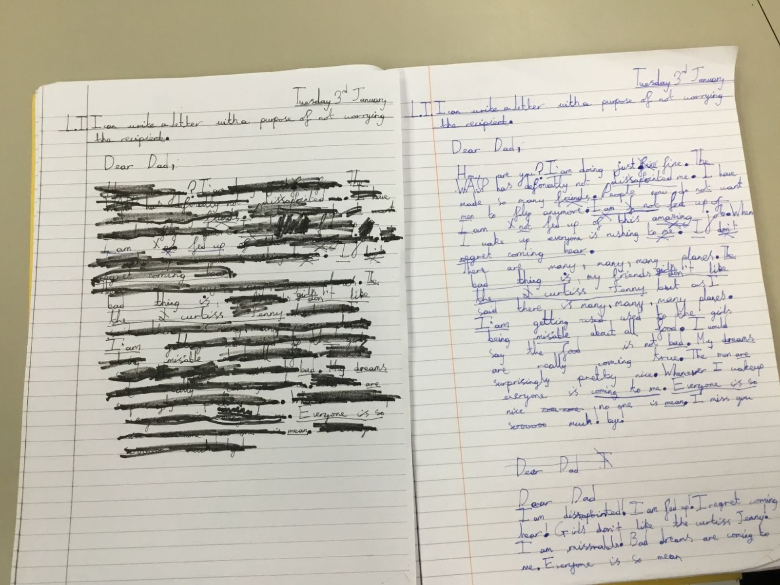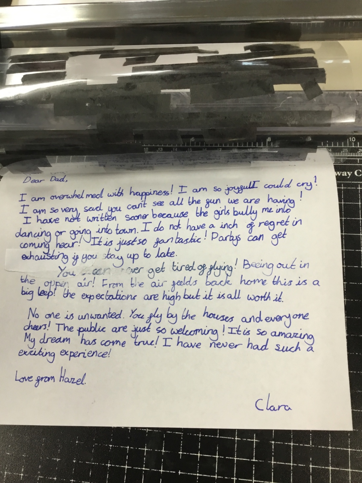 This week we have been learning about censorship. We wrote our own letters, from Hazel (a female pilot) to her father. Our letters had to get through the censors but they had a hidden message within! After drafting in our books, we wrote out our letters and blacked out to reveal our hidden message.