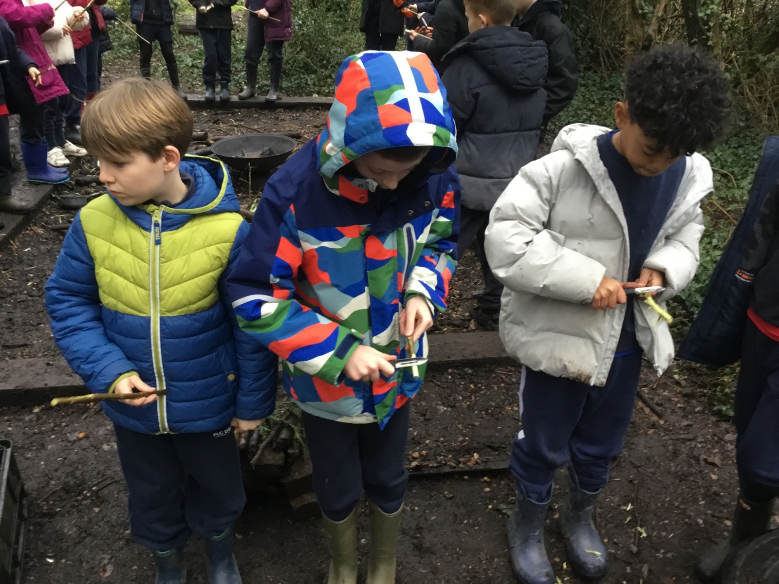 Today we made our own tent pegs. We used vegetable peelers to whittle our own sticks. We learnt that it is important to keep the stick and peeler pointing down and to whittle away from our bodies.