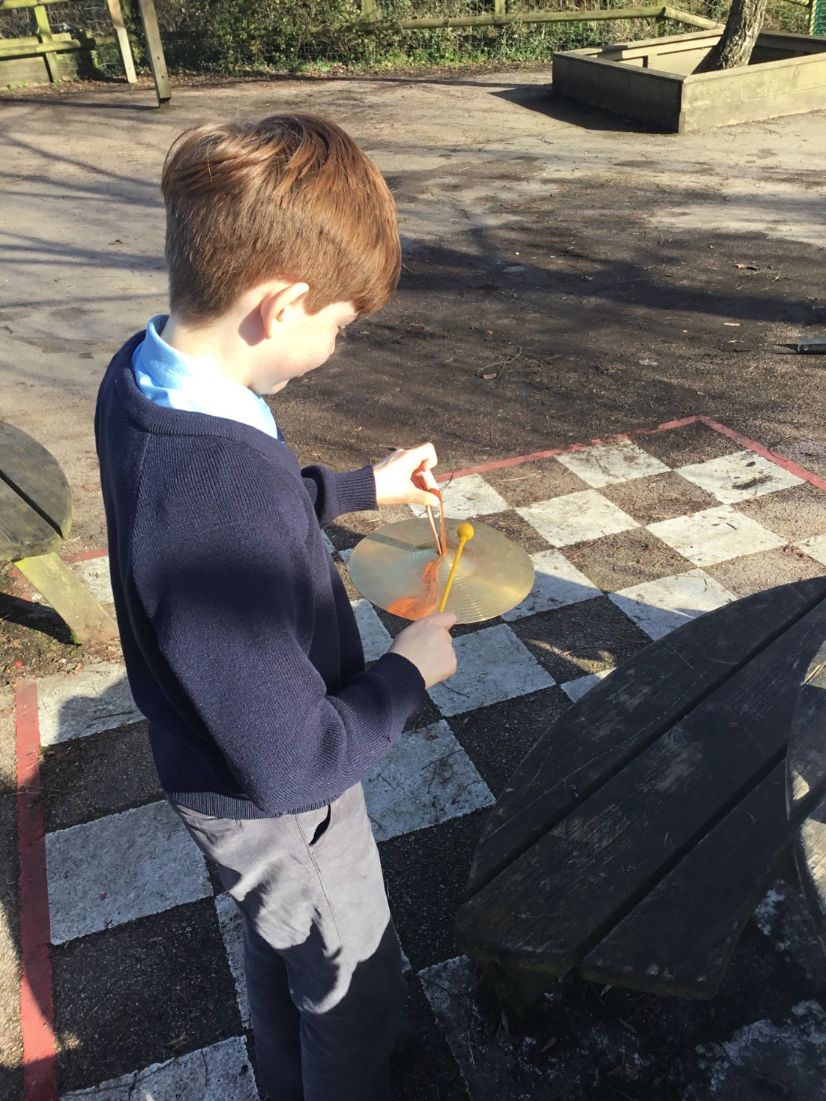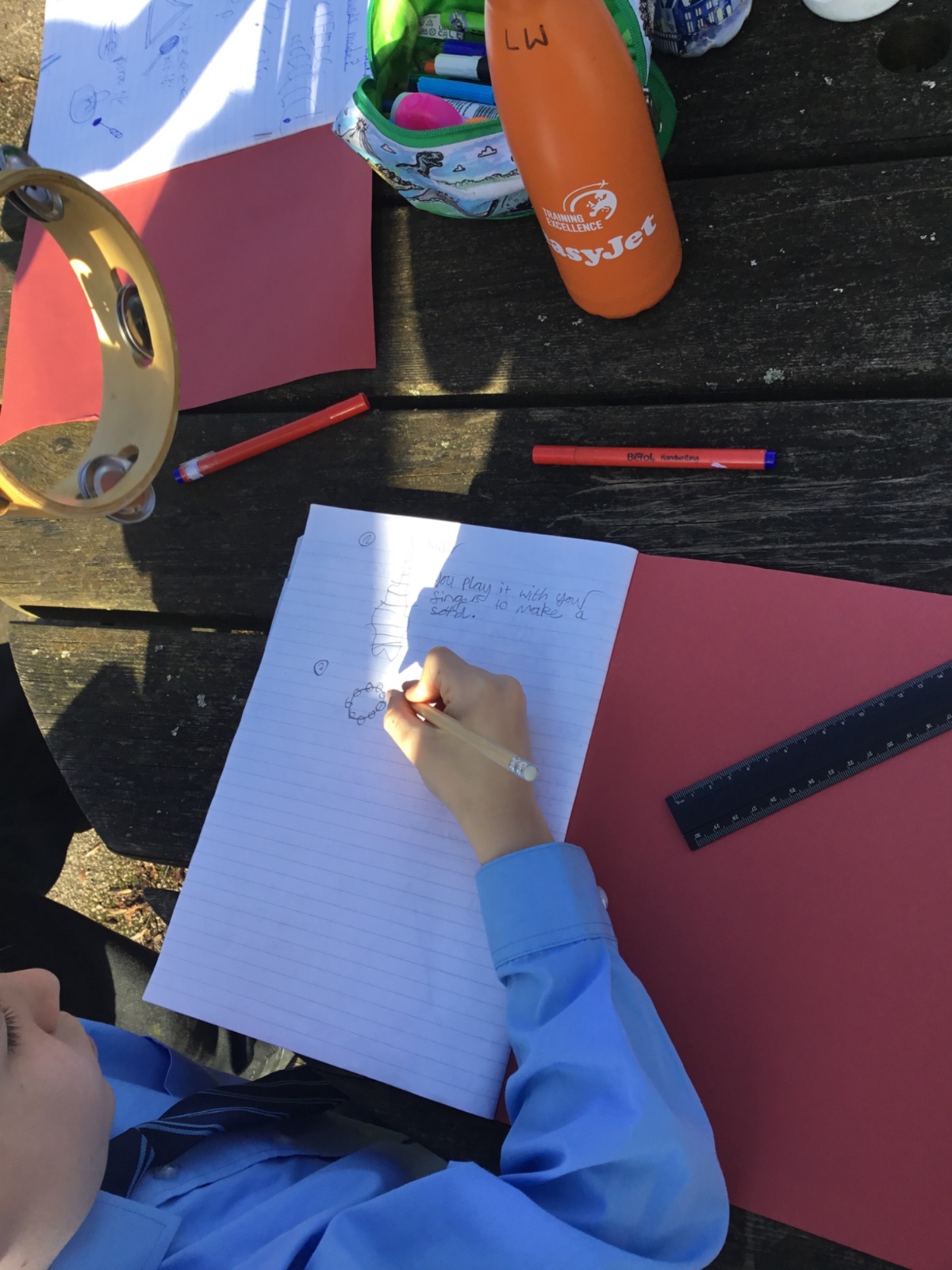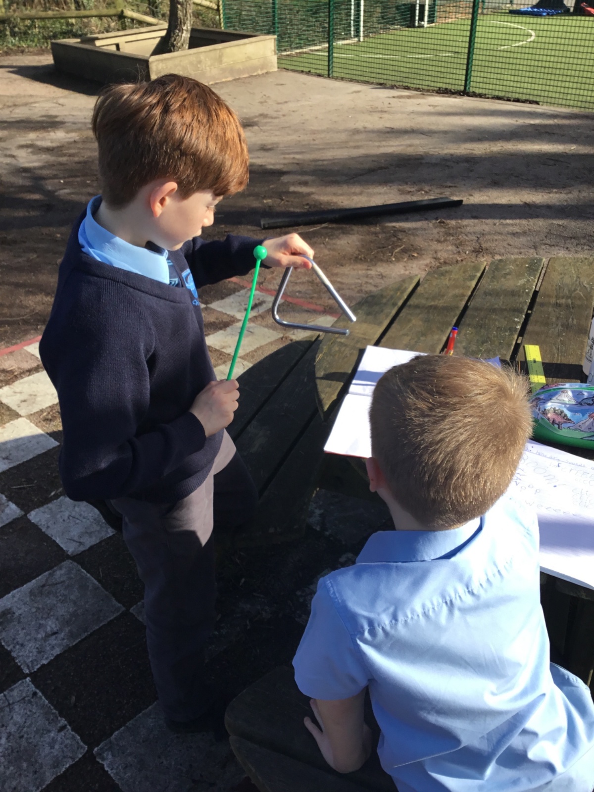 This term we are learning about sound. Today, we were given a range of instruments and asked to work out how they each make a sound. We realised they call need movement to create a vibration. We had the added benefit of a beautifully warm and sunny day so we could work outside.