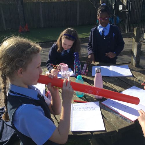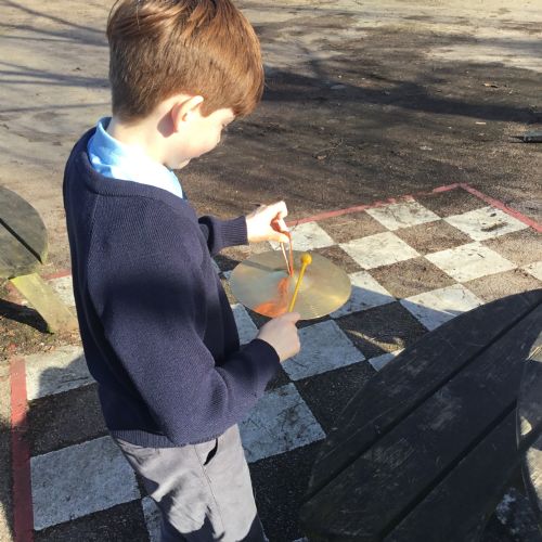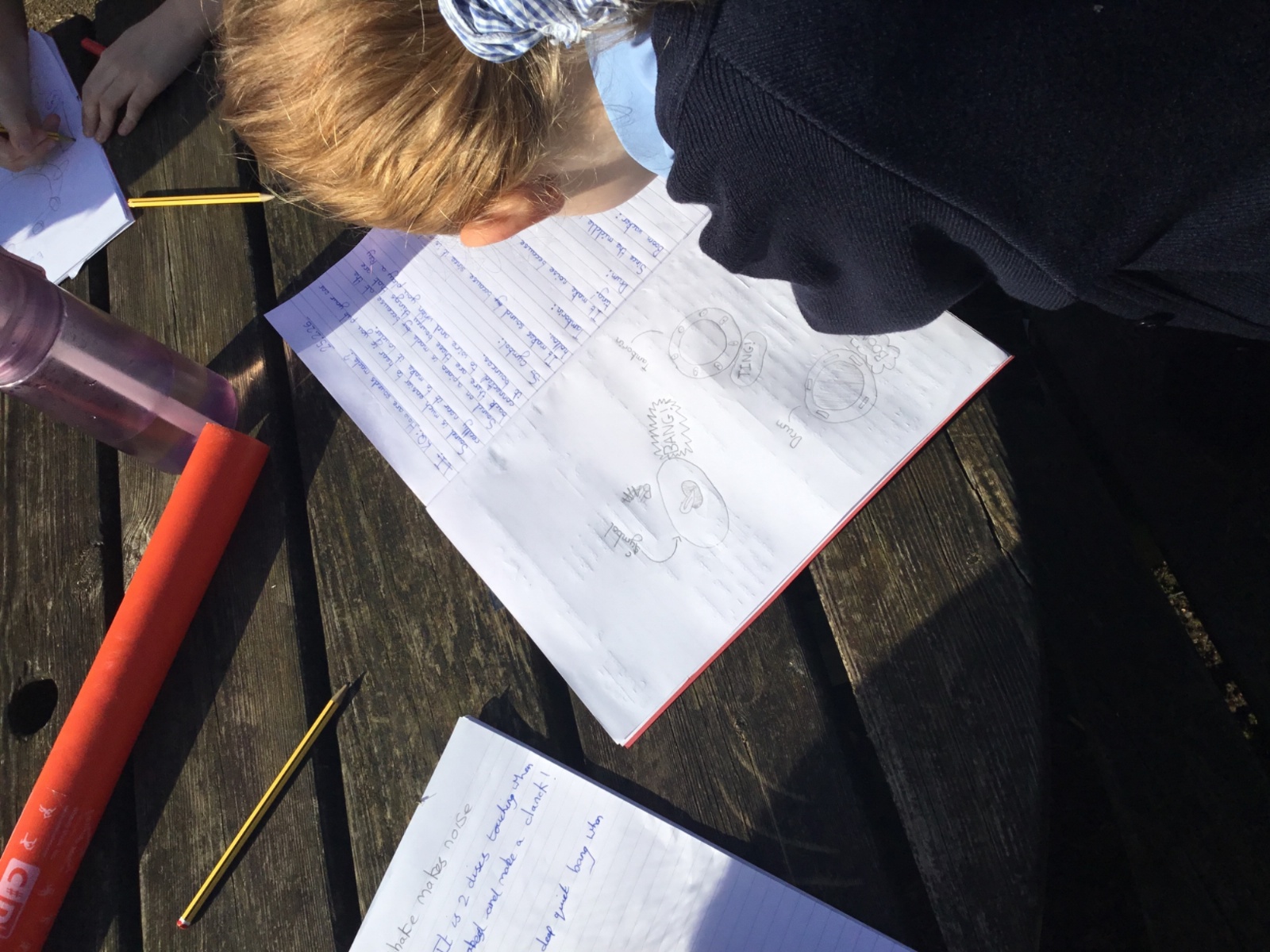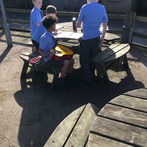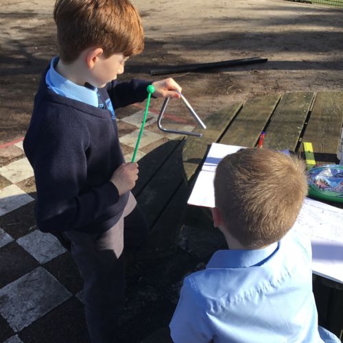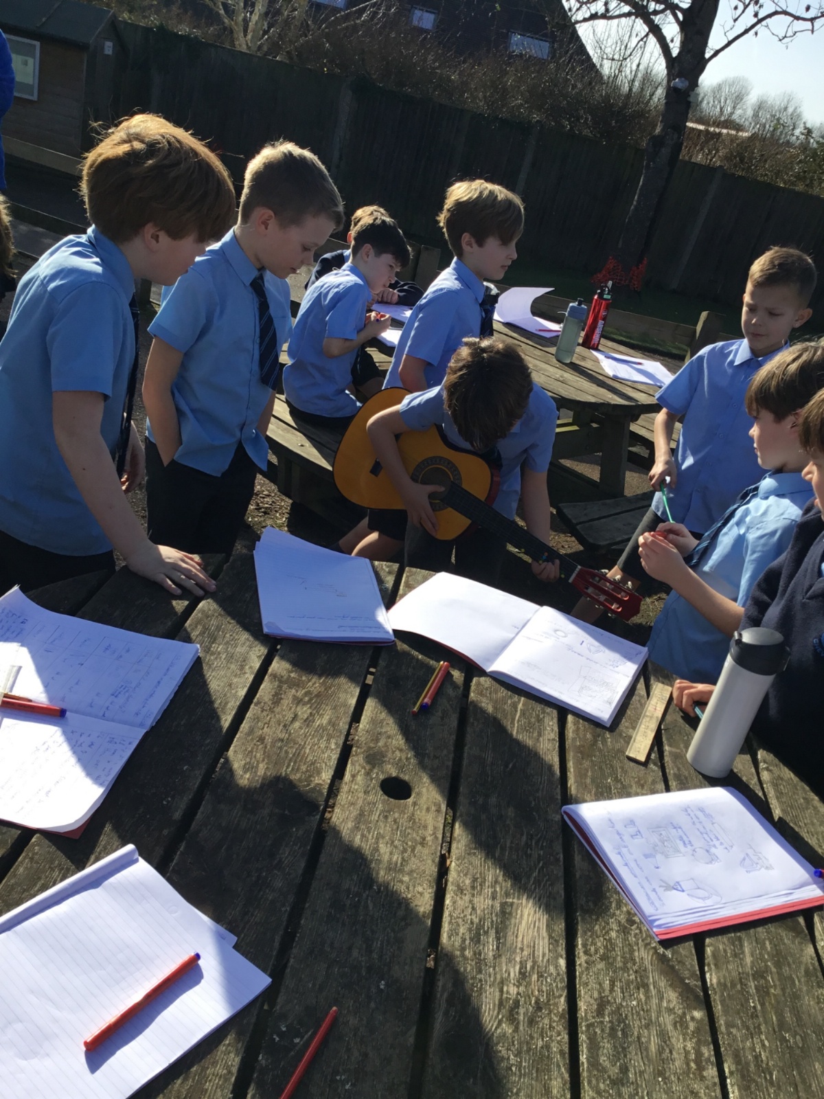 This term we are learning about sound. Today, we were given a range of instruments and asked to work out how they each make a sound. We realised they call need movement to create a vibration. We had the added benefit of a beautifully warm and sunny day so we could work outside.