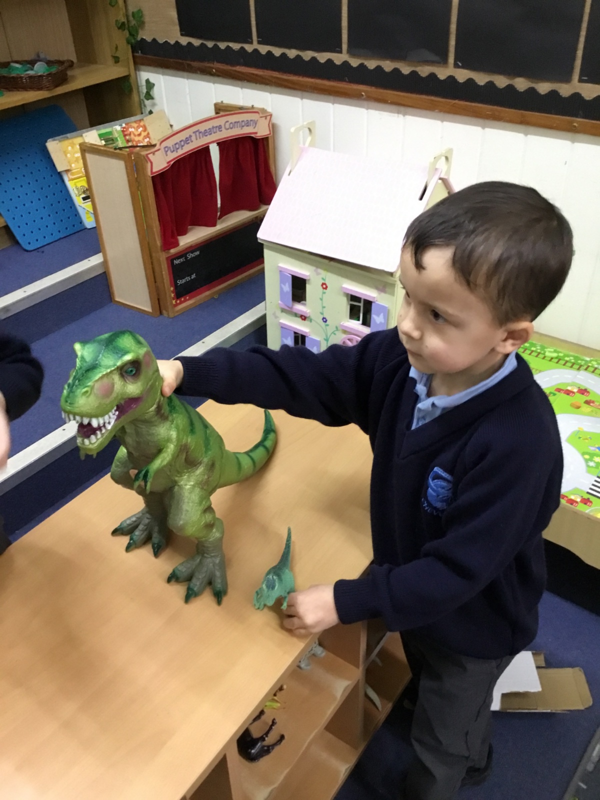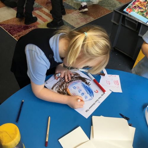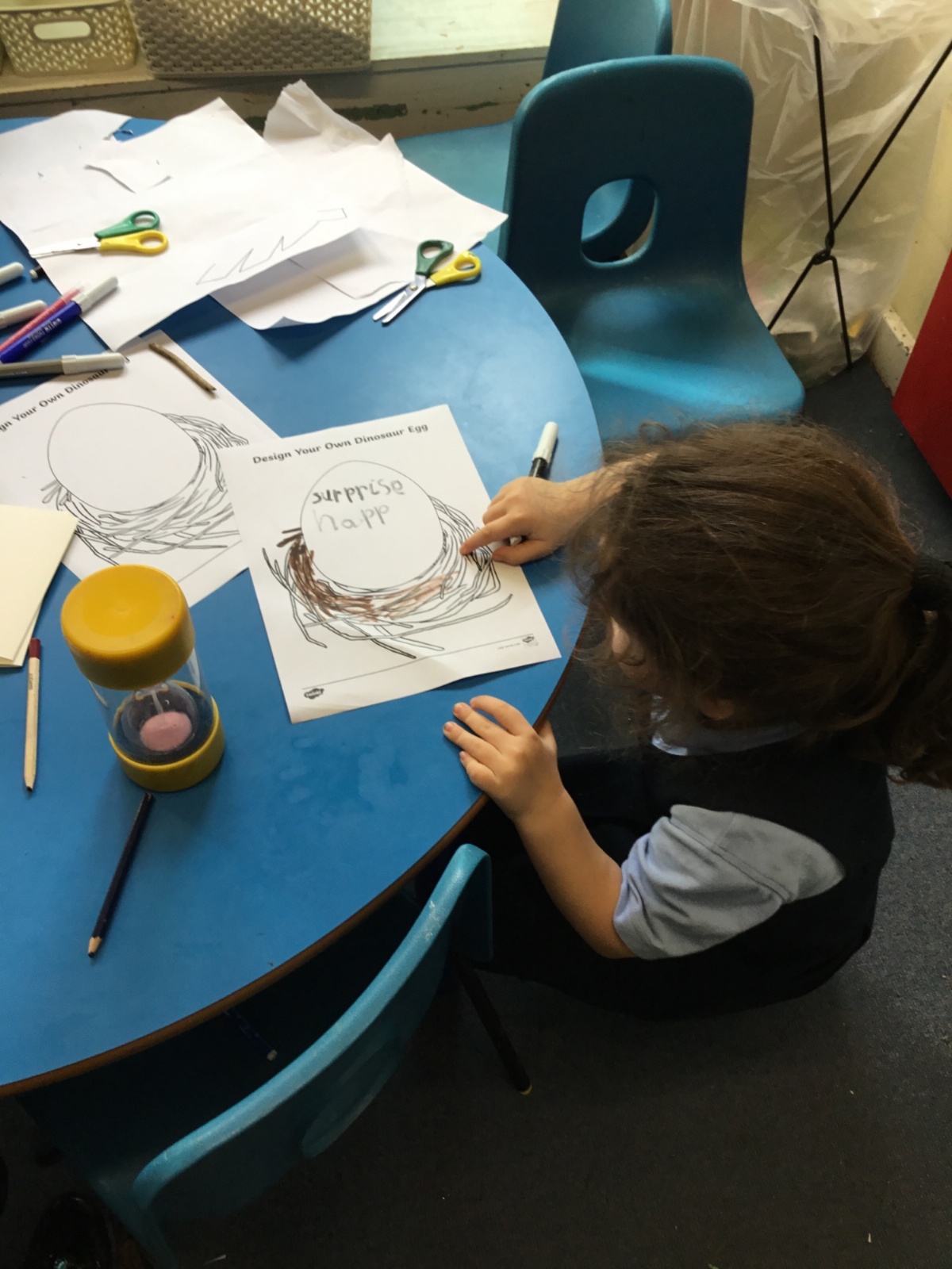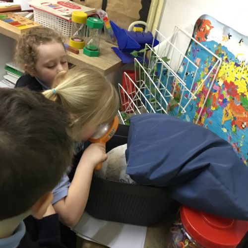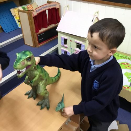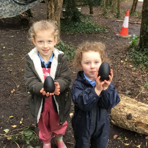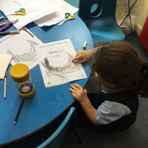 We launched our new topic with wonder, mystery and a great deal of eggcitement. On her way to school, Mrs Archer stumbled upon a giant, mysterious egg, far bigger than any egg we had ever seen. Of course, we had to investigate. First, we became detectives, using our senses and imagination to describe the egg. Then we researched what kinds of animals lay eggs. We discovered that creatures such as cats, dogs, seals and walruses do not lay eggs, penguin and hen eggs are much too small, and dragon eggs are usually bright and colourful. But then we found pictures of dinosaur eggs, and they looked exactly like the one in our classroom. We could hardly believe it, a real dinosaur egg in Class R.