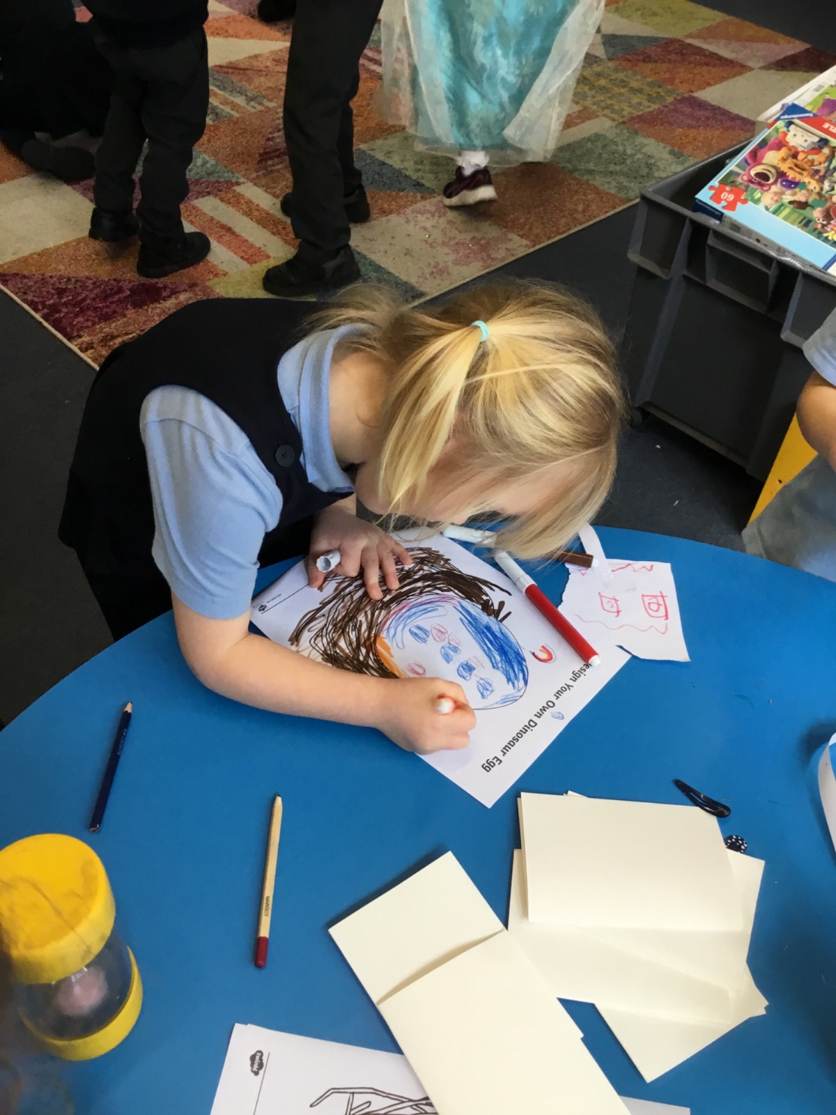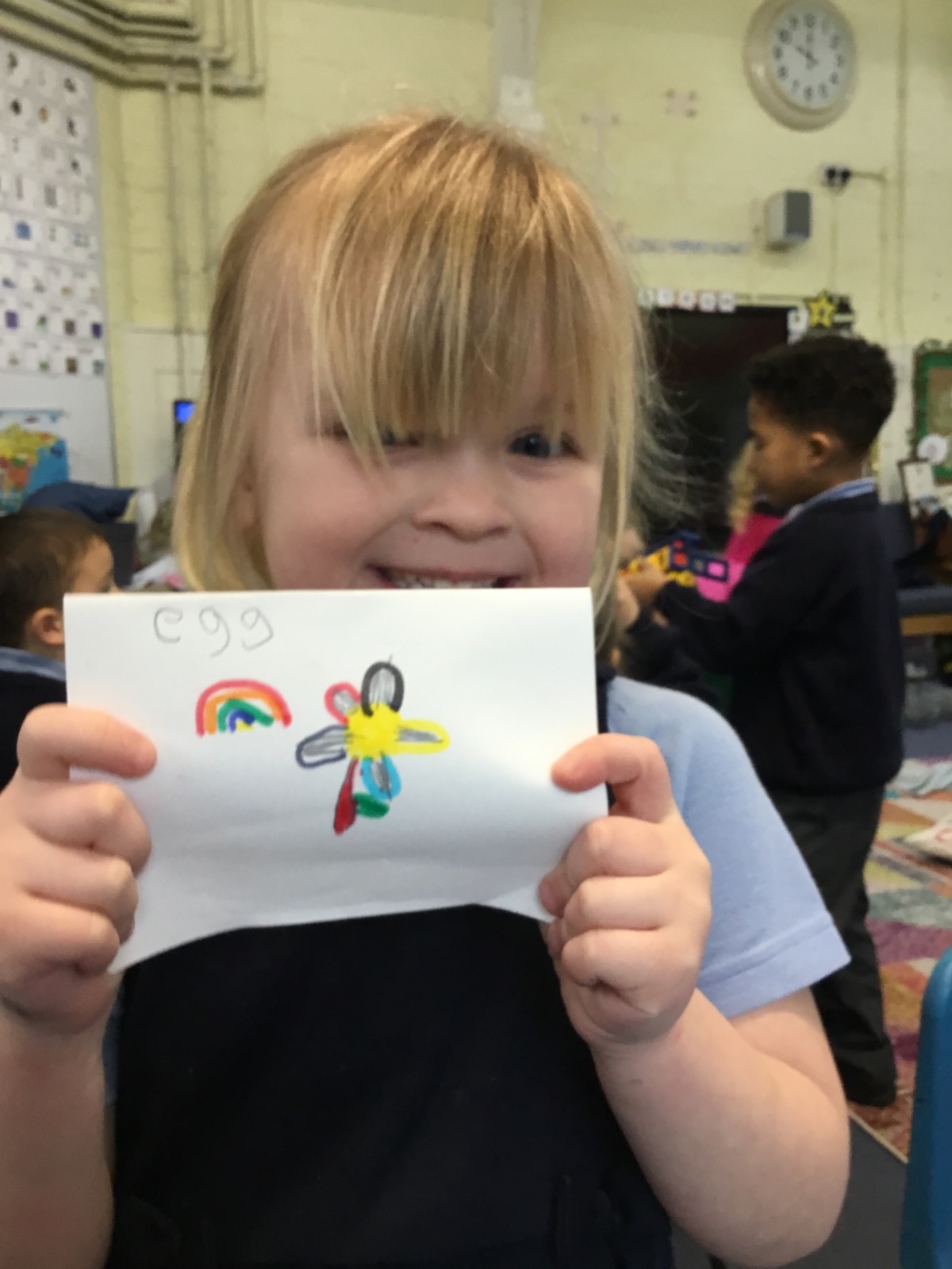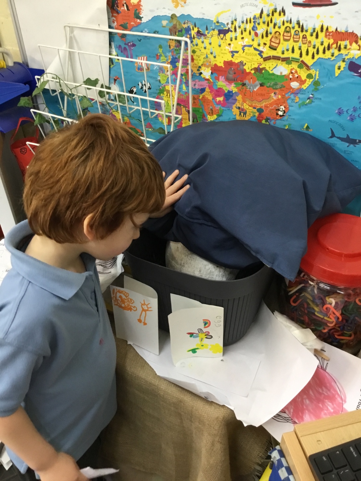 We launched our new topic with wonder, mystery and a great deal of eggcitement. On her way to school, Mrs Archer stumbled upon a giant, mysterious egg, far bigger than any egg we had ever seen. Of course, we had to investigate. First, we became detectives, using our senses and imagination to describe the egg. Then we researched what kinds of animals lay eggs. We discovered that creatures such as cats, dogs, seals and walruses do not lay eggs, penguin and hen eggs are much too small, and dragon eggs are usually bright and colourful. But then we found pictures of dinosaur eggs, and they looked exactly like the one in our classroom. We could hardly believe it, a real dinosaur egg in Class R.