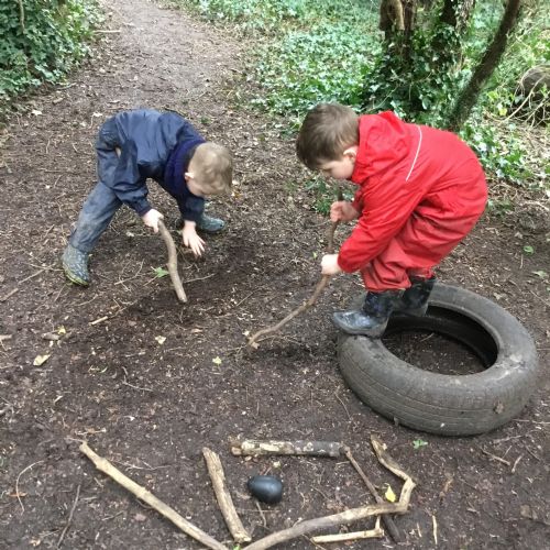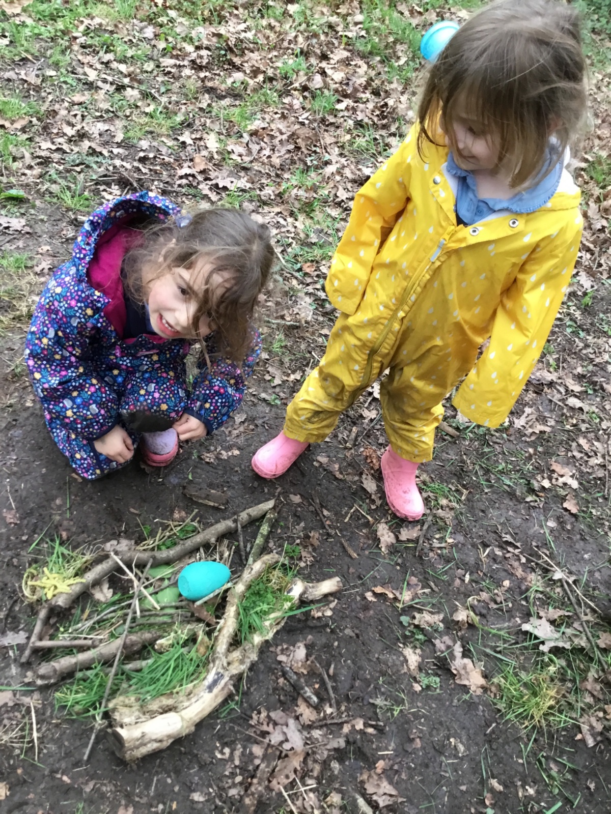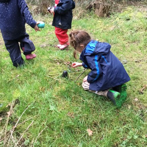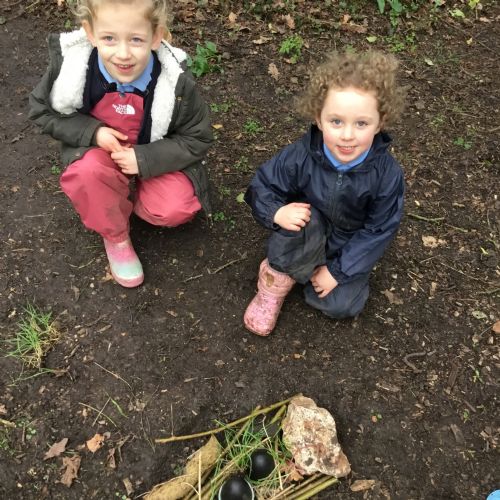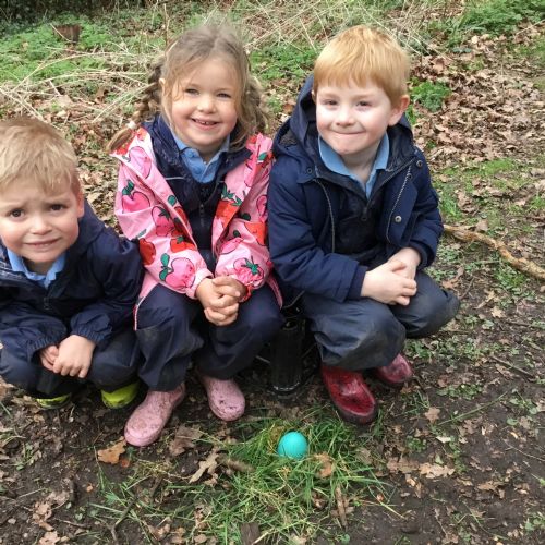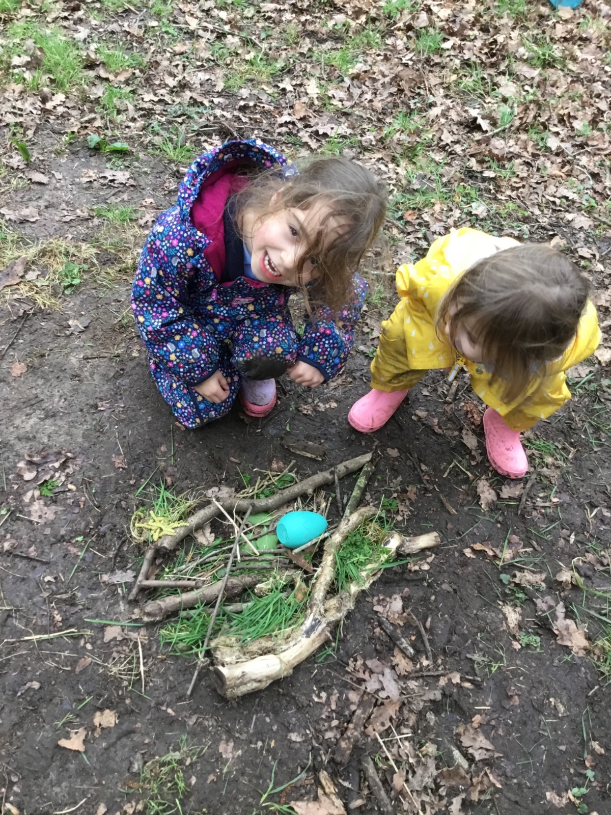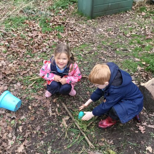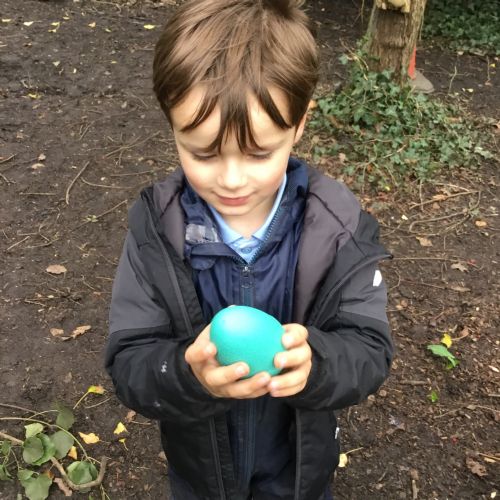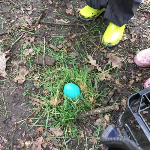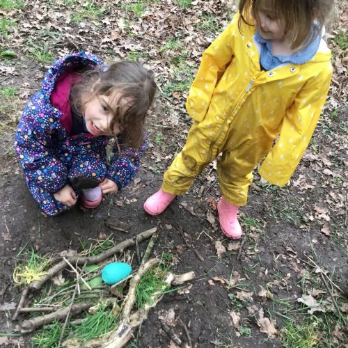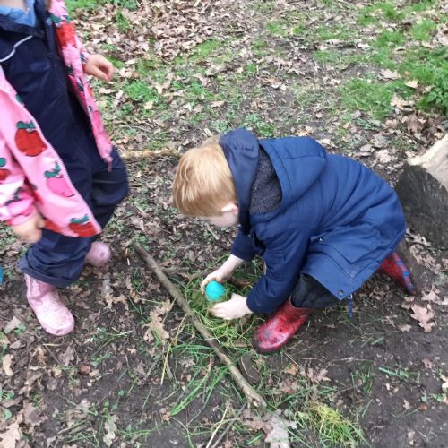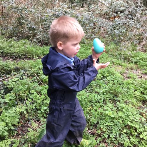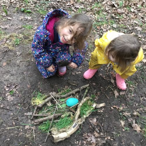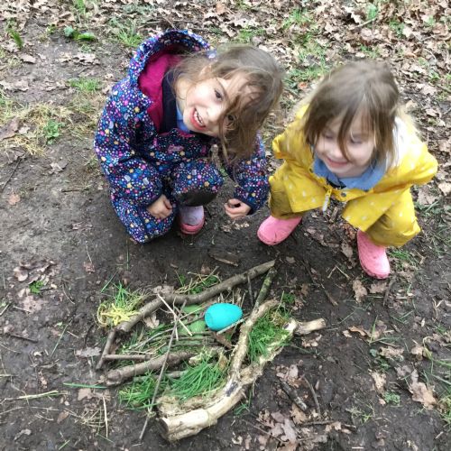 Our eggcellent adventures continued in Forest School, where we set off on an egg hunt beneath the trees. After finding our hidden treasures, we worked together in teams to build wonderful woodland nests, using sticks, moss, leaves and feathers to create cosy homes for our eggs.