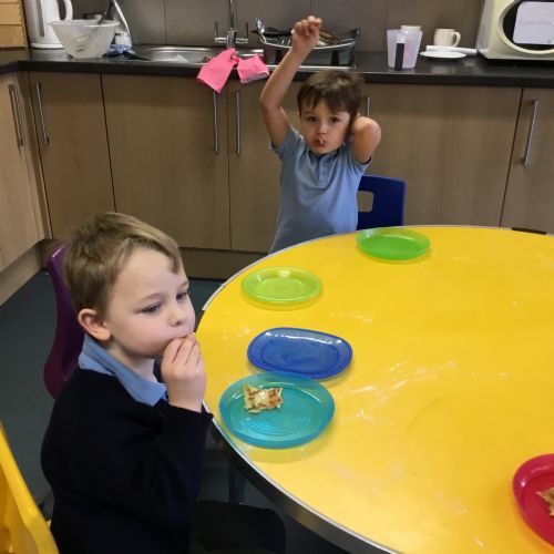 As we won’t be in school next week, we decided to bring the fun forward and celebrate Pancake Day a little early. We discovered that Pancake Day is also called Shrove Tuesday and learnt all about why it is celebrated. The children were fascinated to hear how people around the world mark the day, from pancake races to delicious family traditions. After all our learning, it was finally time for the best part, trying our own pancakes!