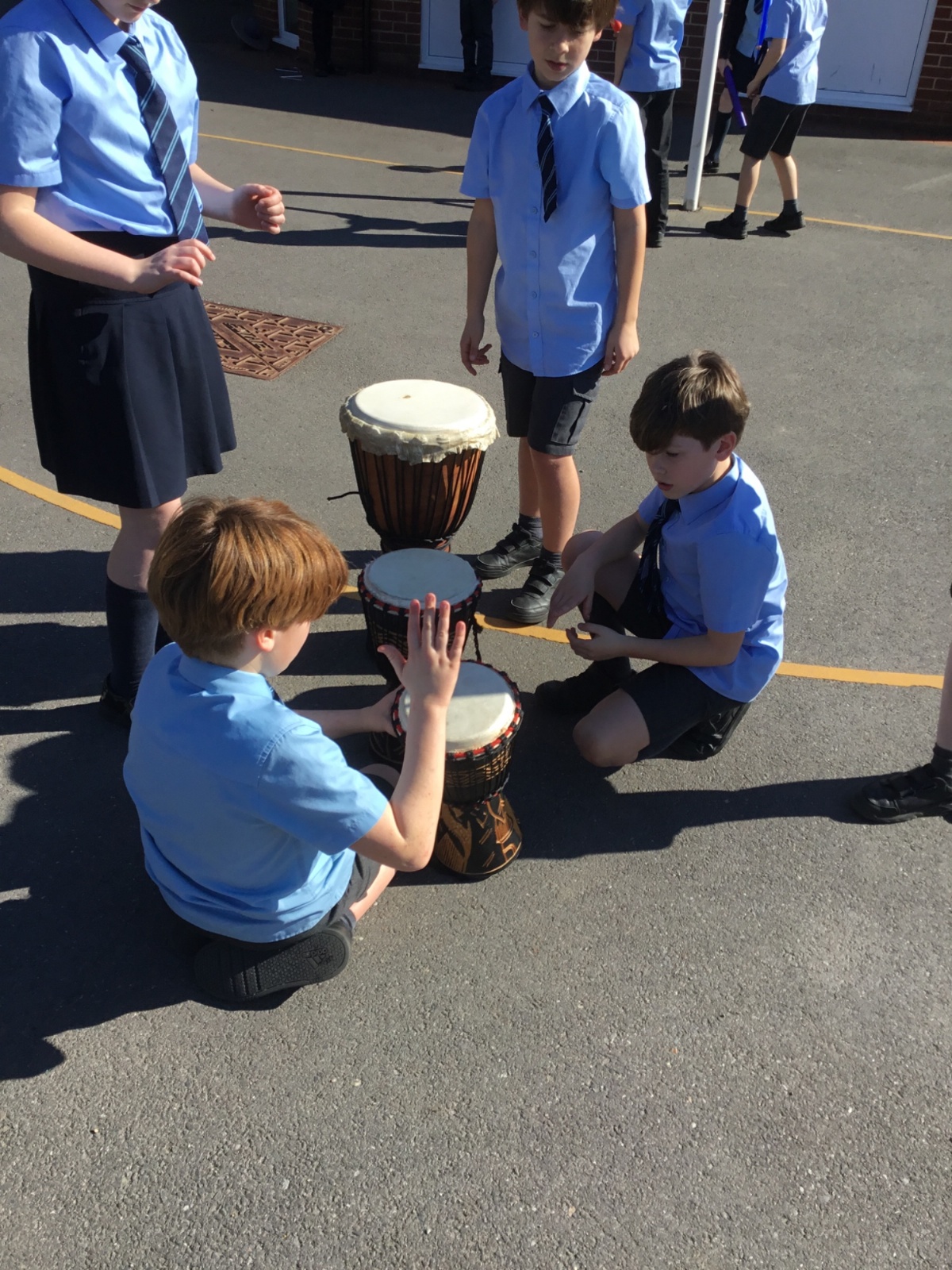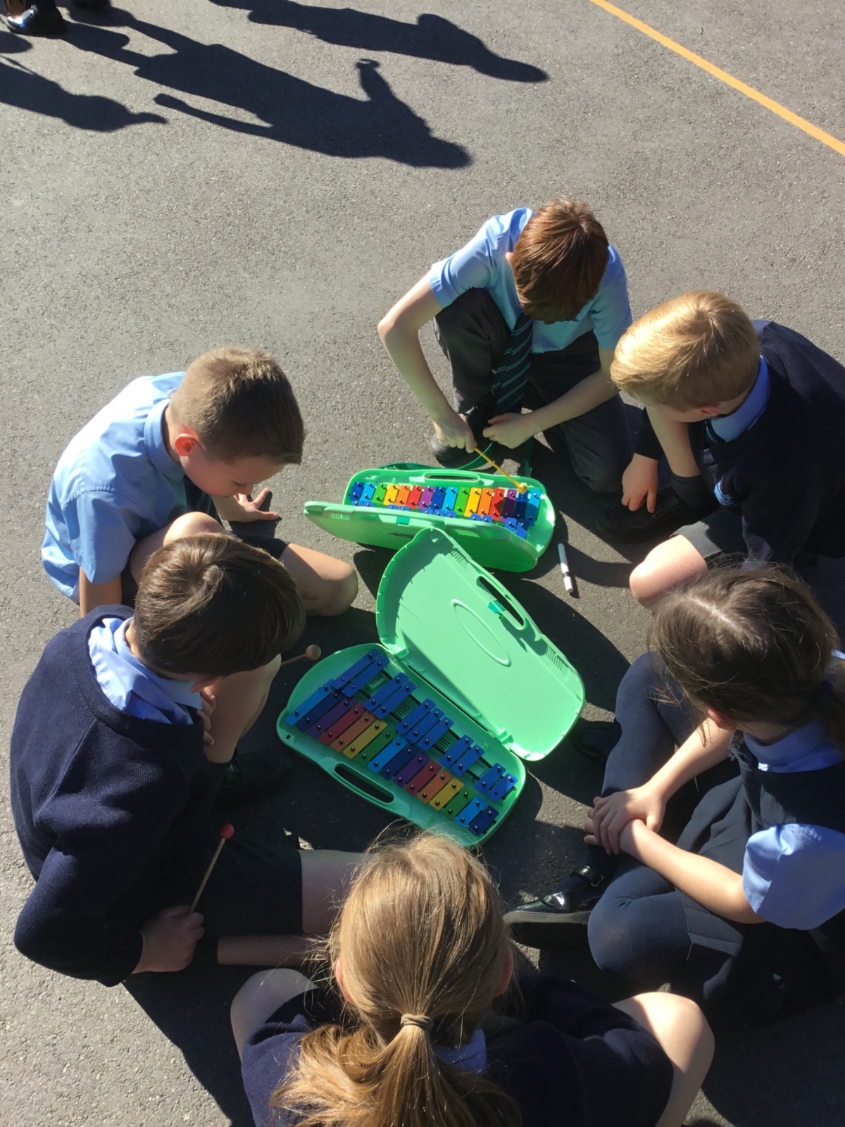 Today we were learning about pitch. We tested the same instrument in different sizes to discover that smaller instruments make a higher sound.