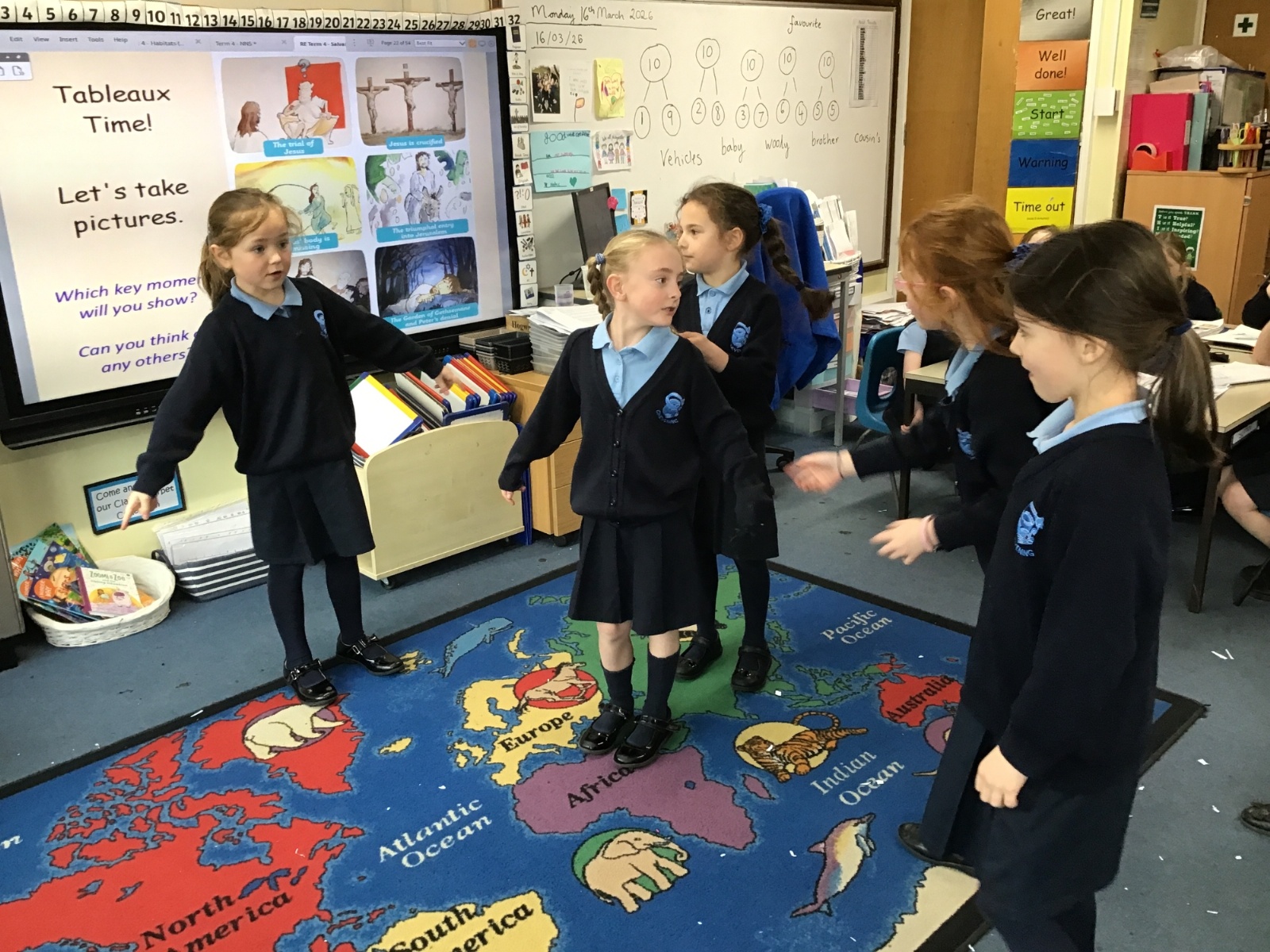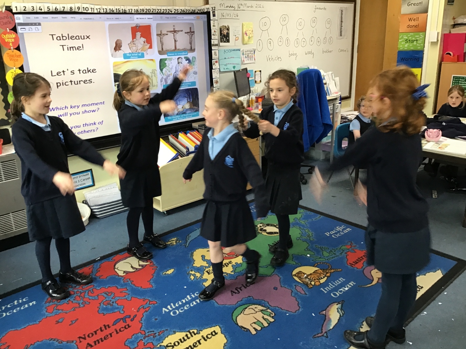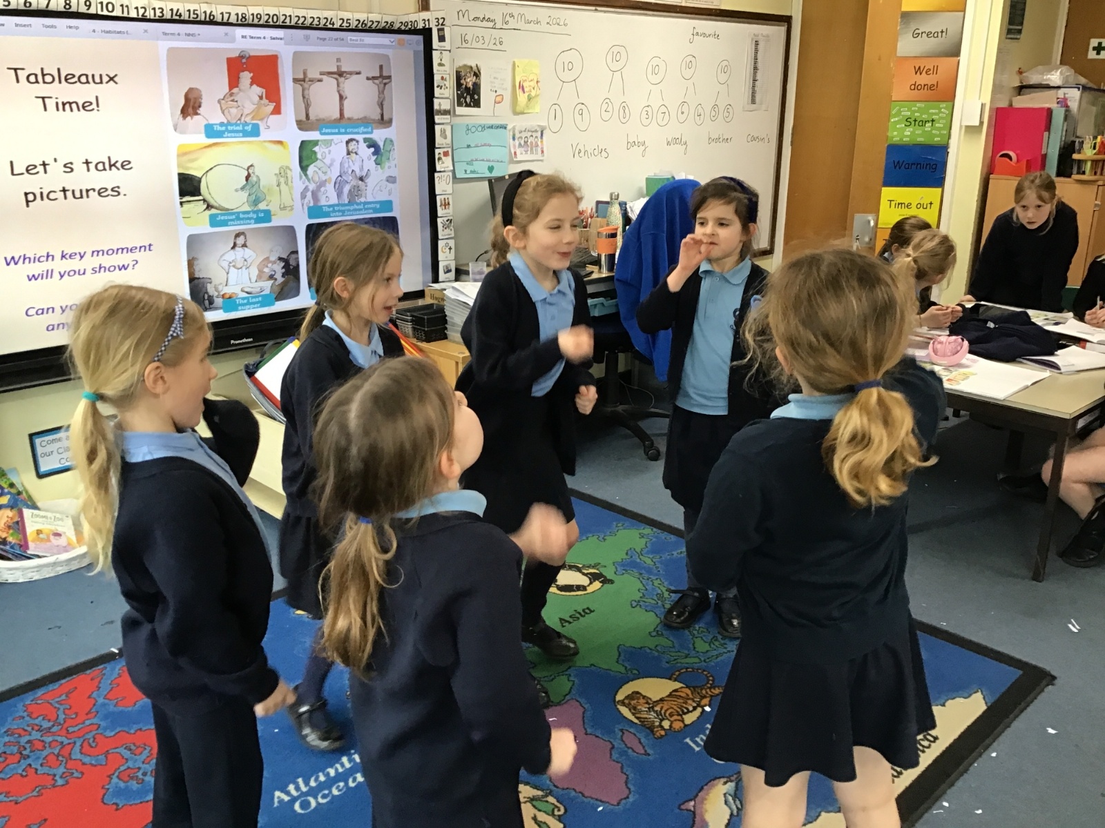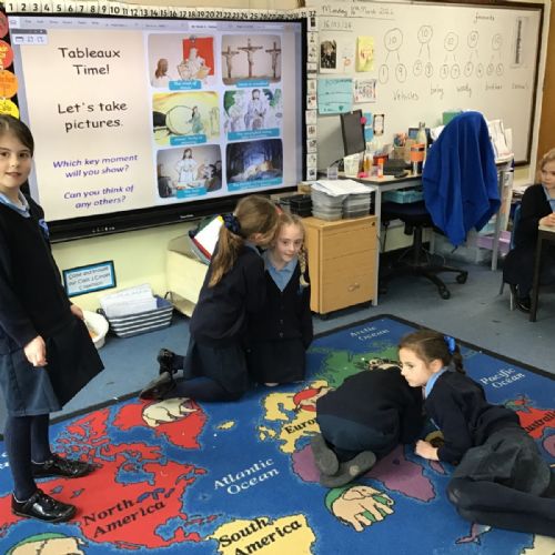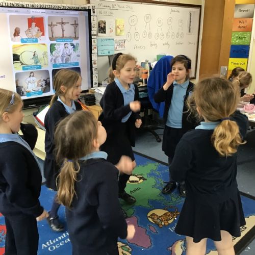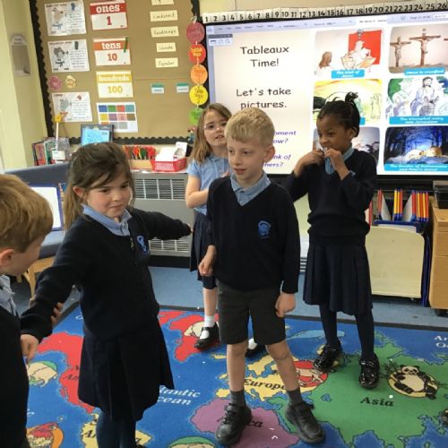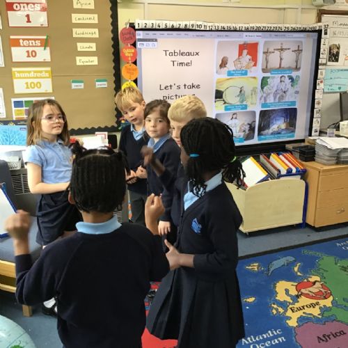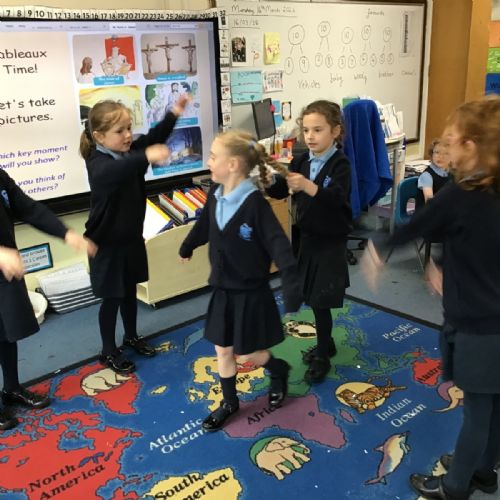 As we swiftly approach Easter, we have been reminding ourselves of the most important events in our RE lessons. First we listened to the story and then moved on to recreating our own tableaux. Can you link the images to the main key events: the triumphal entry into Jerusalem, the Last Supper, The Garden of Gethsemane and Peter’s denial, the trial of Jesus, Jesus being crucified and Jesus' body being missing? And can you see any of our school's Christian Values being reflected?