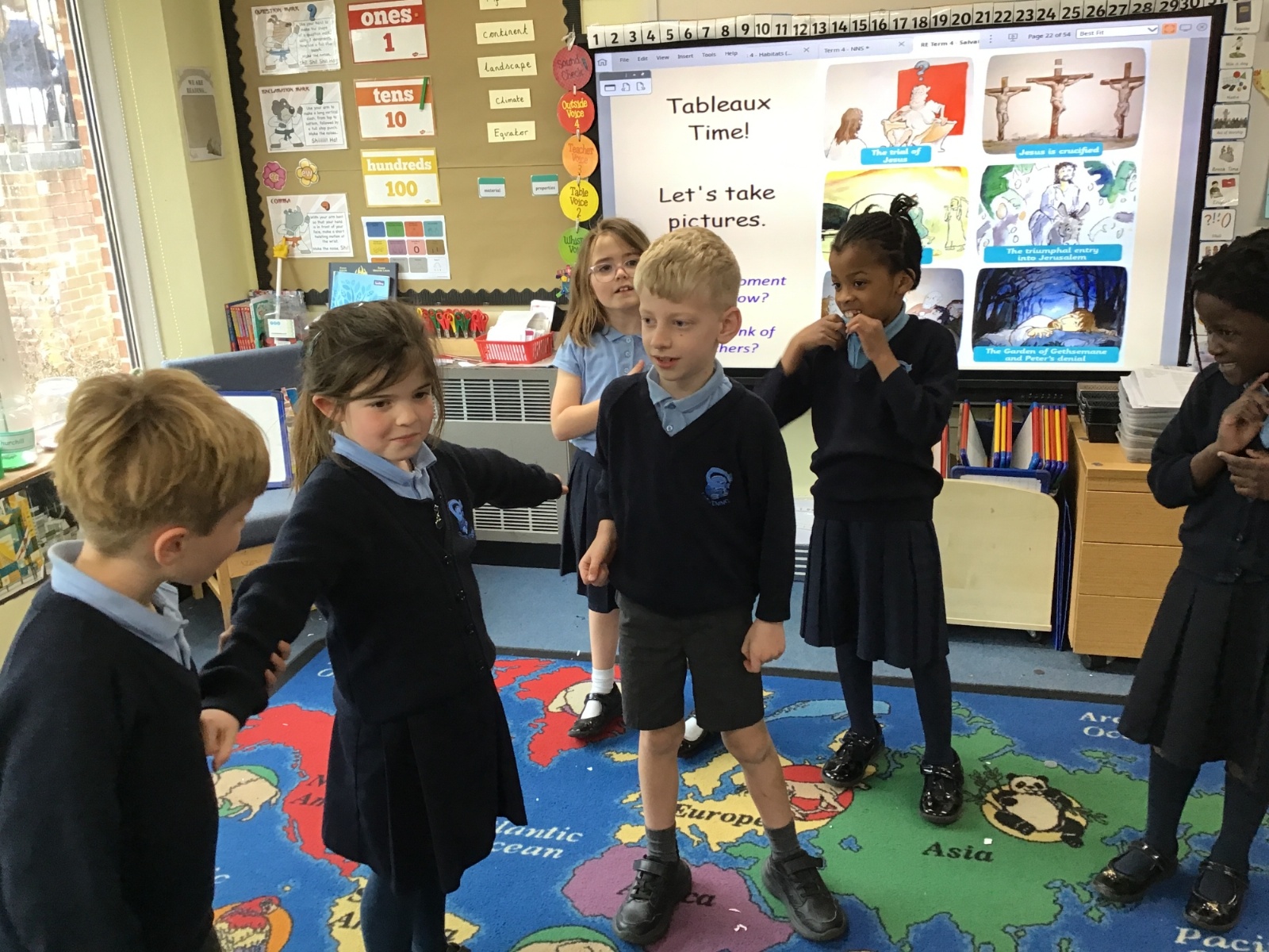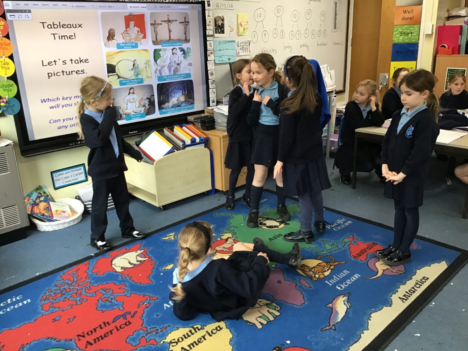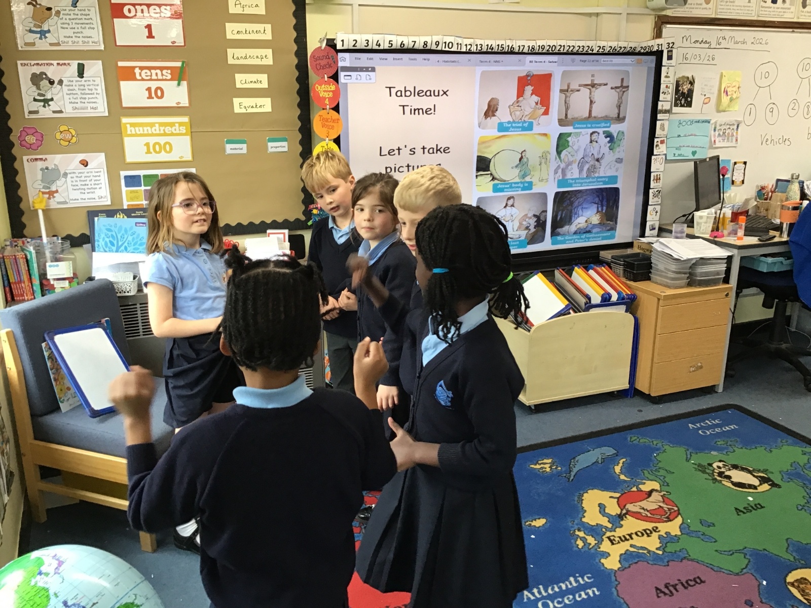 As we swiftly approach Easter, we have been reminding ourselves of the most important events in our RE lessons. First we listened to the story and then moved on to recreating our own tableaux. Can you link the images to the main key events: the triumphal entry into Jerusalem, the Last Supper, The Garden of Gethsemane and Peter’s denial, the trial of Jesus, Jesus being crucified and Jesus' body being missing? And can you see any of our school's Christian Values being reflected?