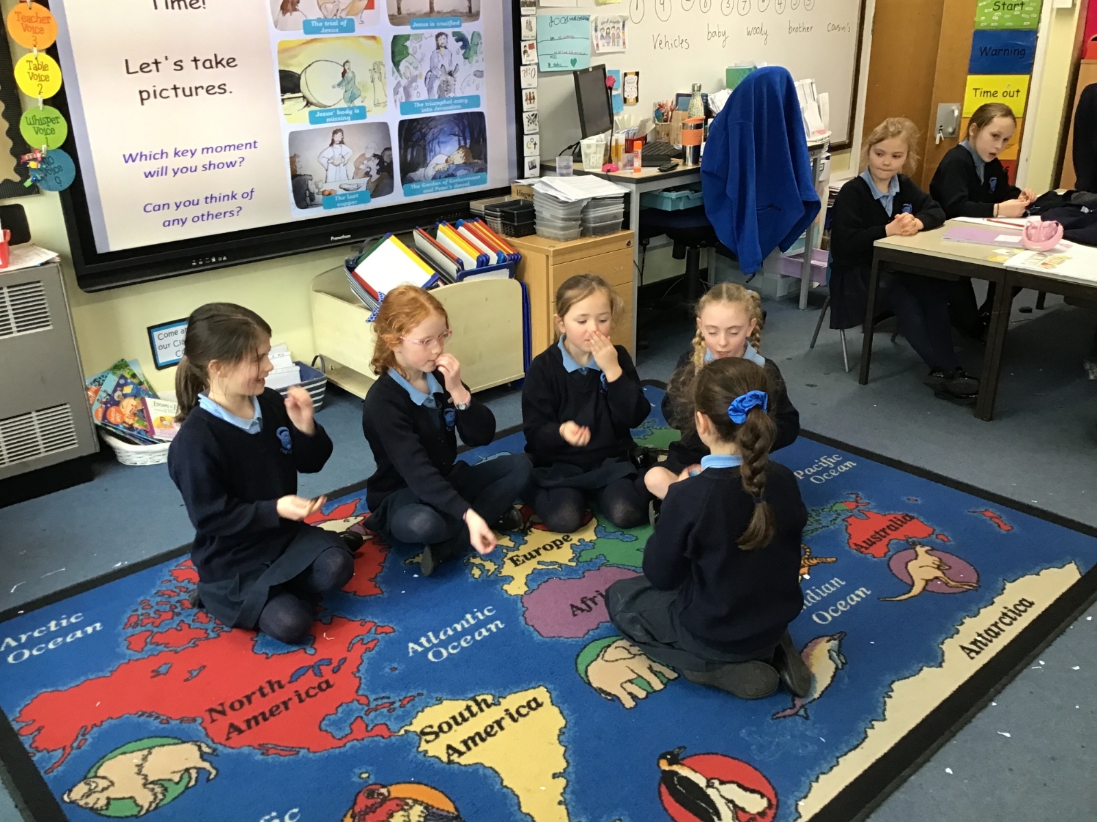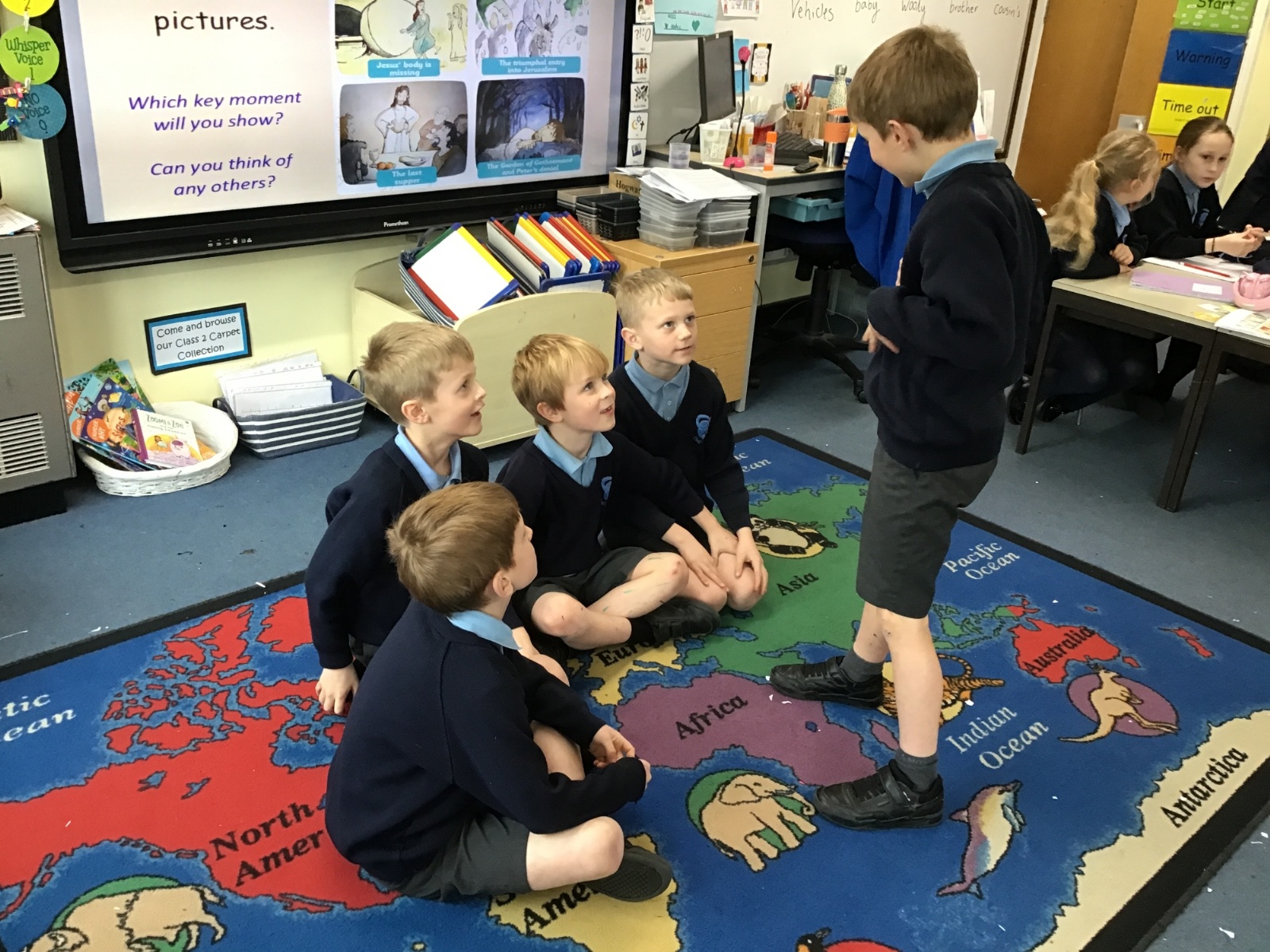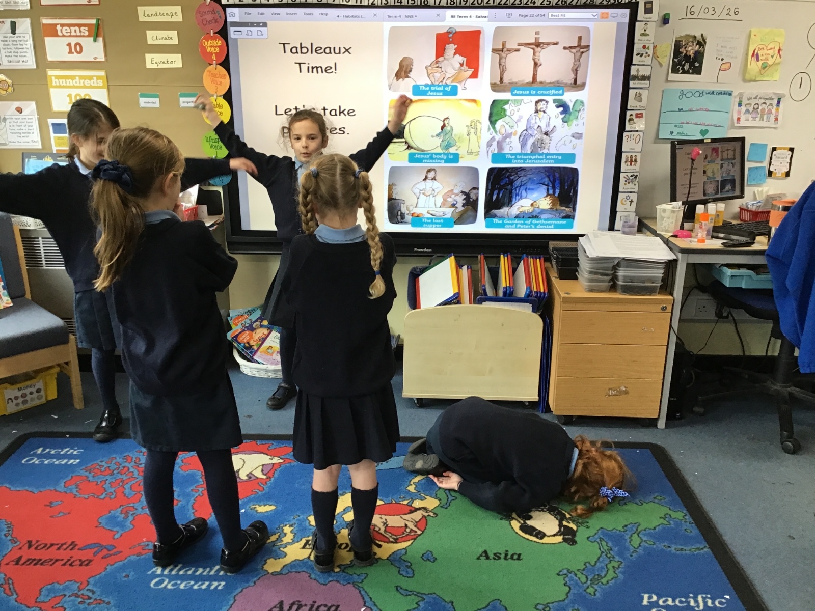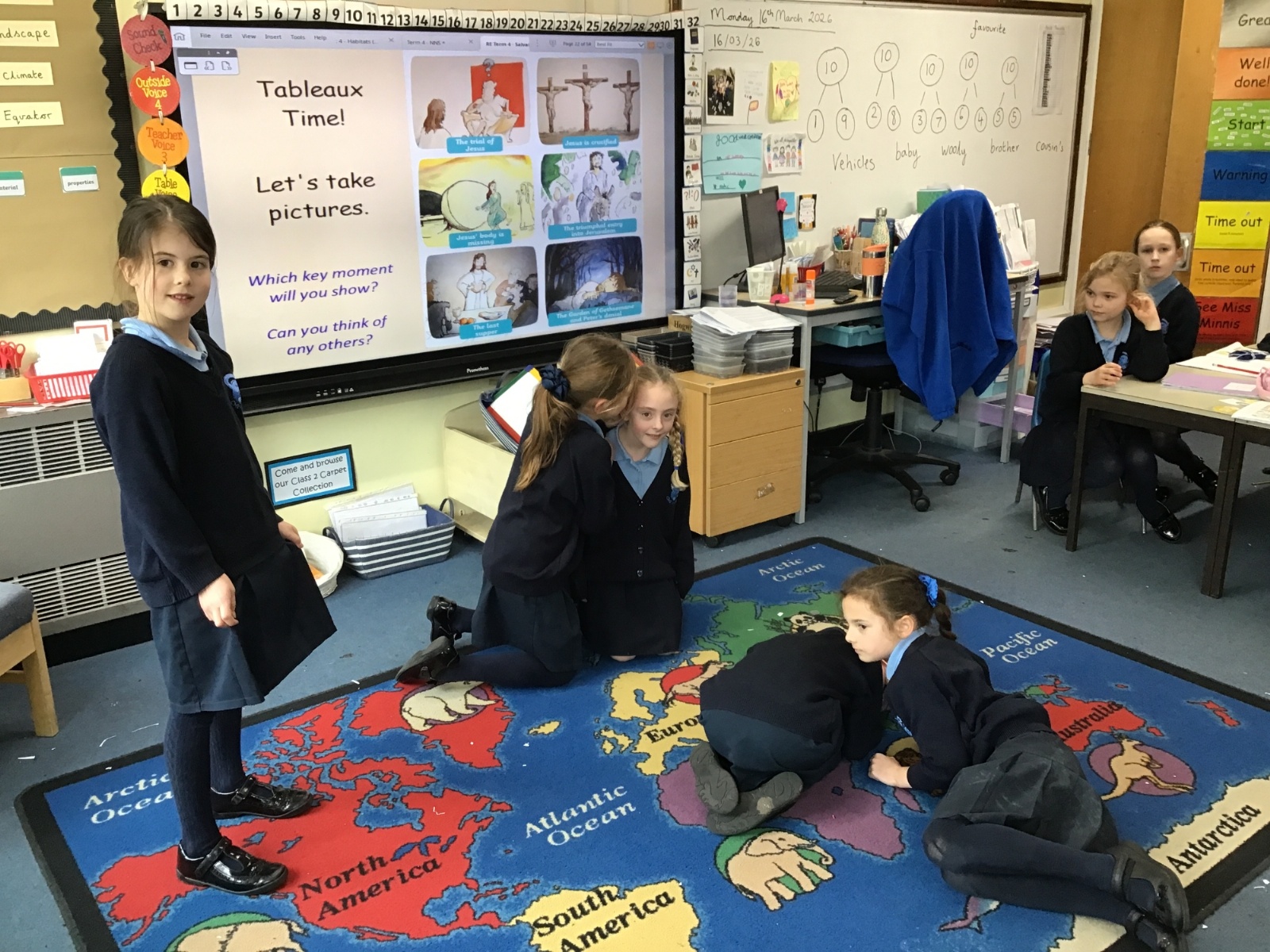As we swiftly approach Easter, we have been reminding ourselves of the most important events in our RE lessons. First we listened to the story and then moved on to recreating our own tableaux. Can you link the images to the main key events: the triumphal entry into Jerusalem, the Last Supper, The Garden of Gethsemane and Peter’s denial, the trial of Jesus, Jesus being crucified and Jesus' body being missing? And can you see any of our school's Christian Values being reflected?